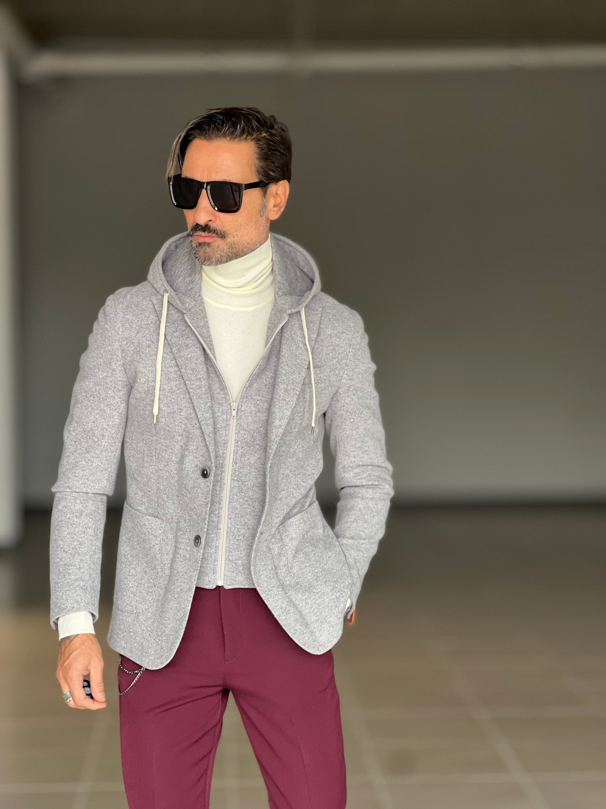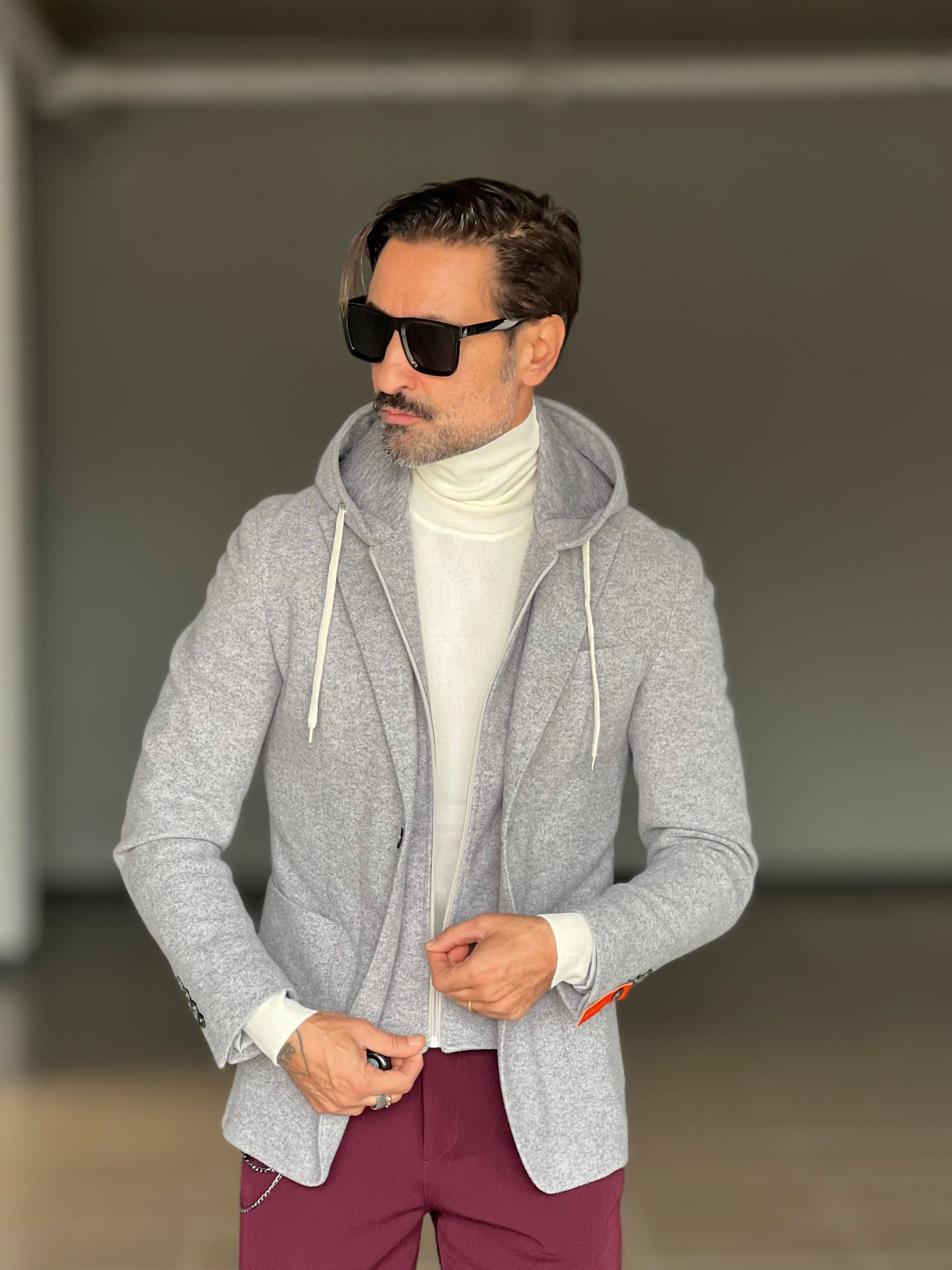 This wool jacket combines classic style with practical comfort. Featuring a removable sweatshirt lining, it provides adaptable warmth suitable for varying temperatures. Expertly tailored for durability, this jacket offers both refined aesthetics and functional versatility for everyday wear.