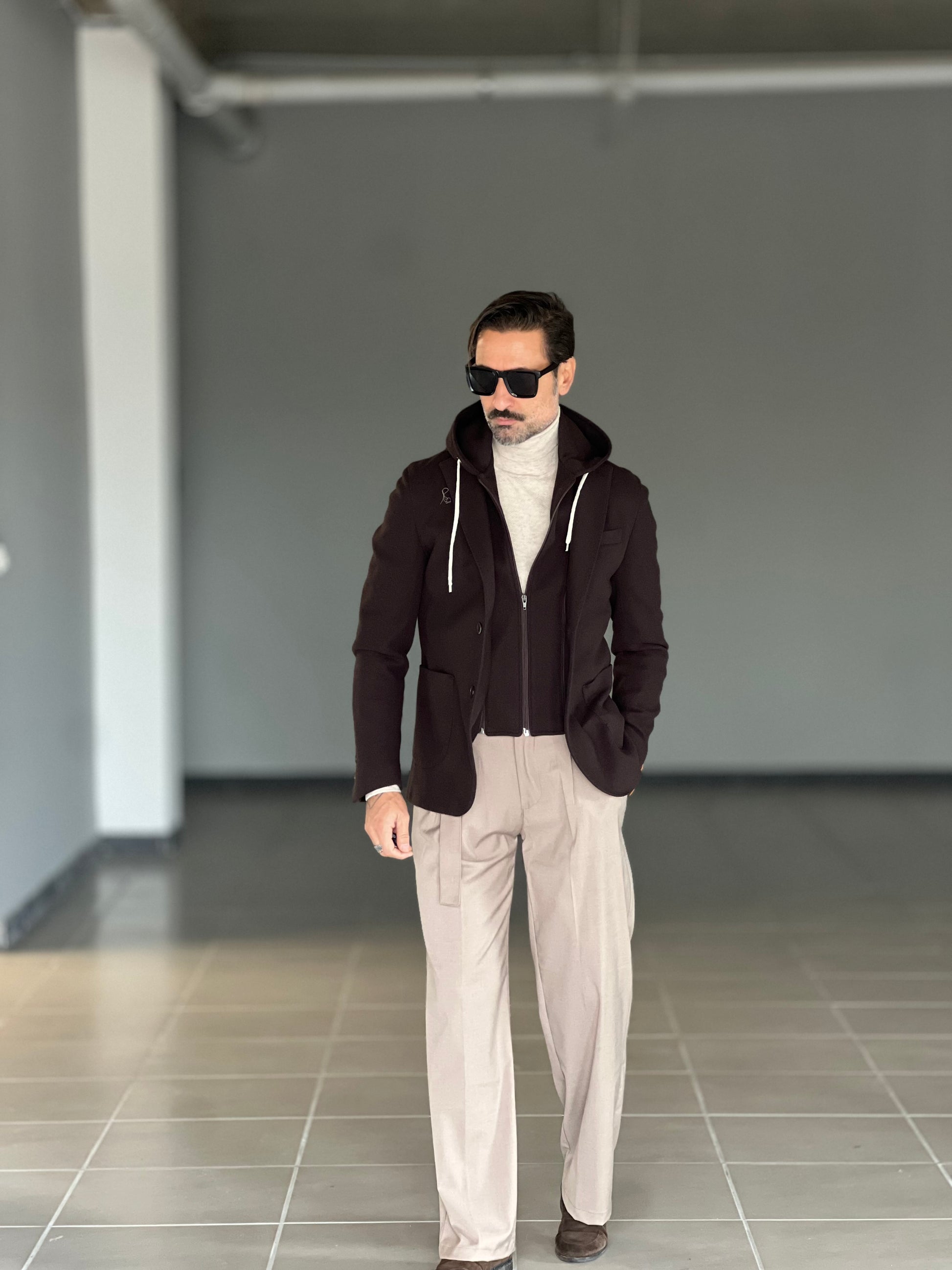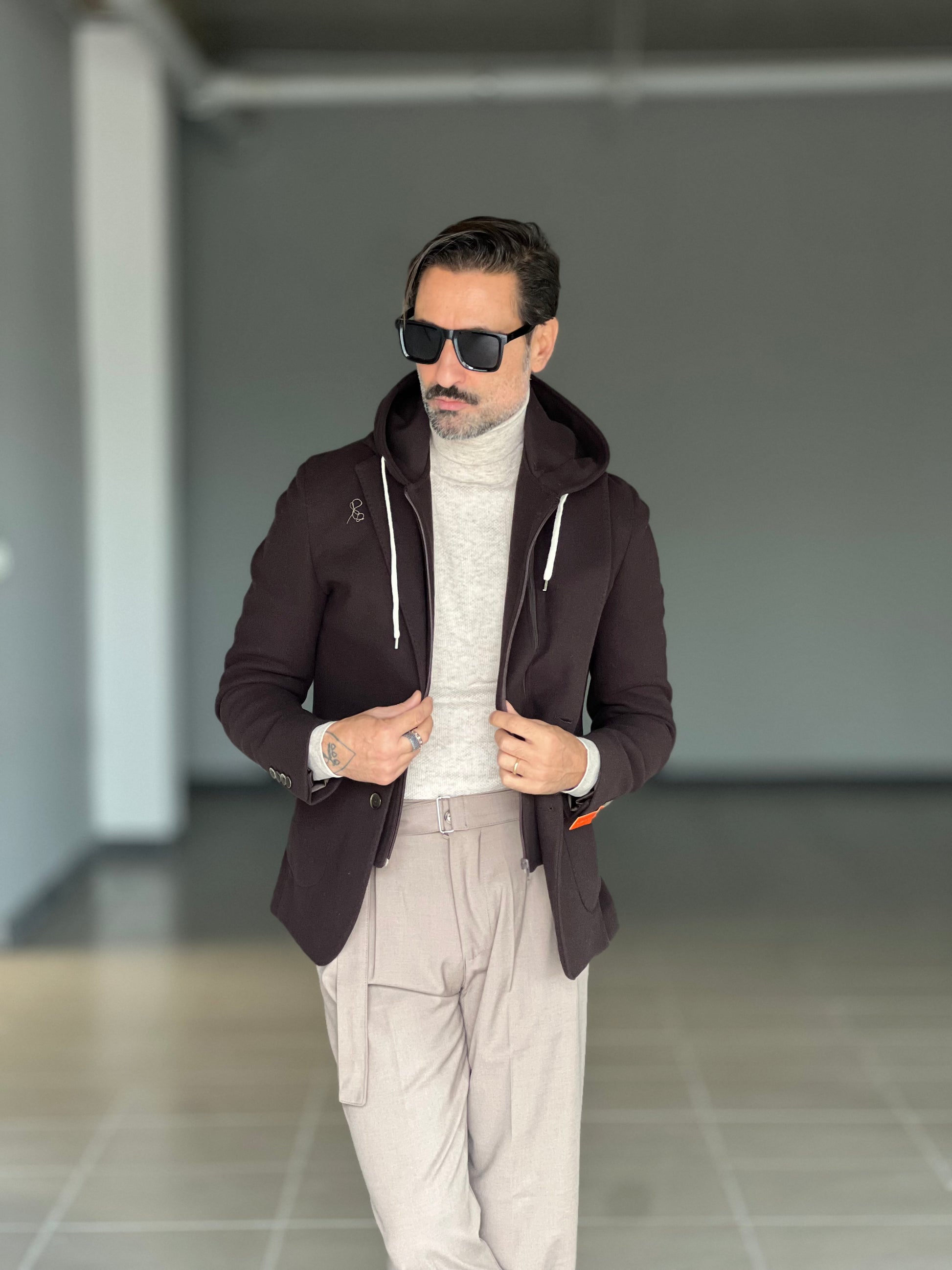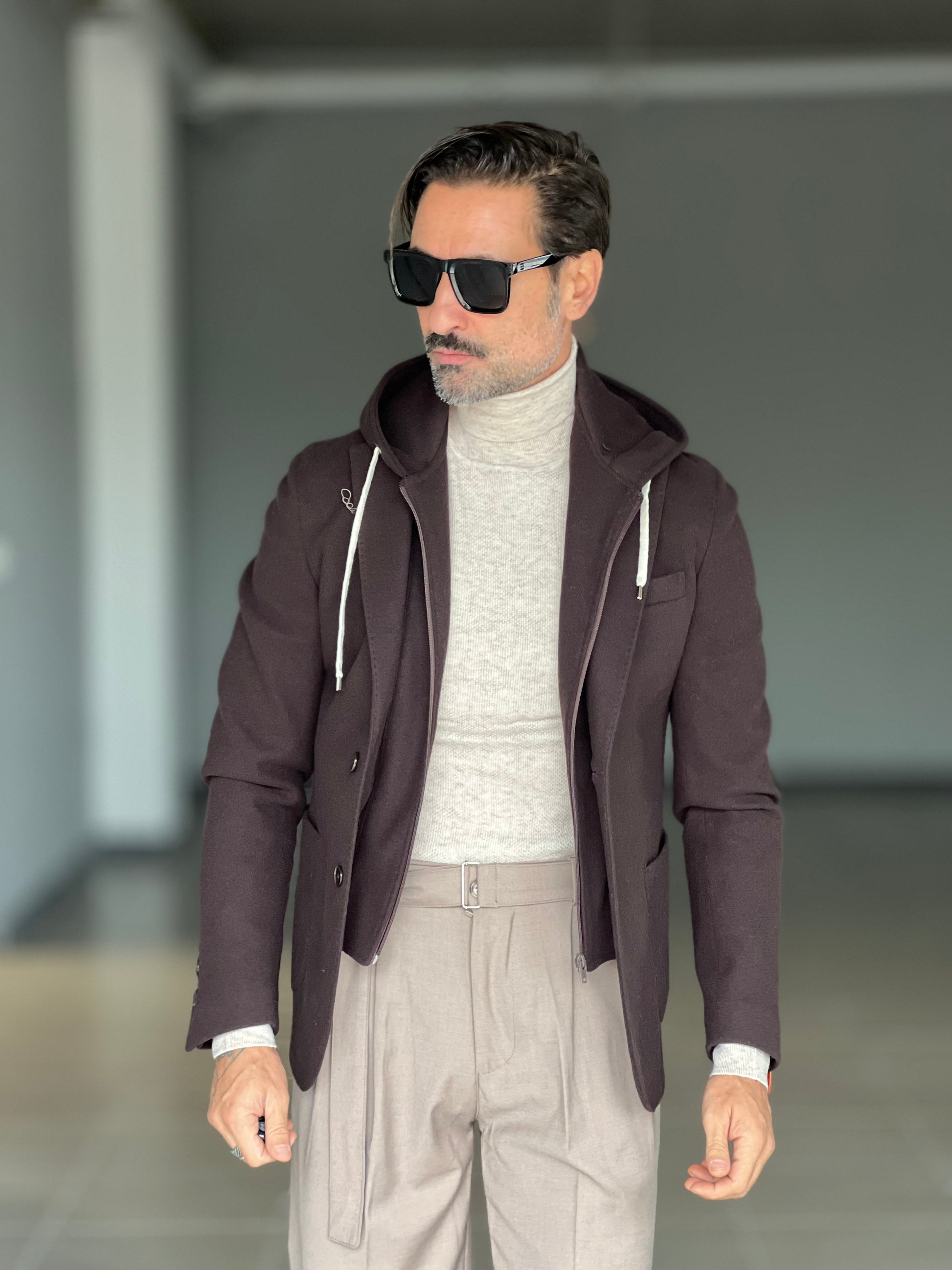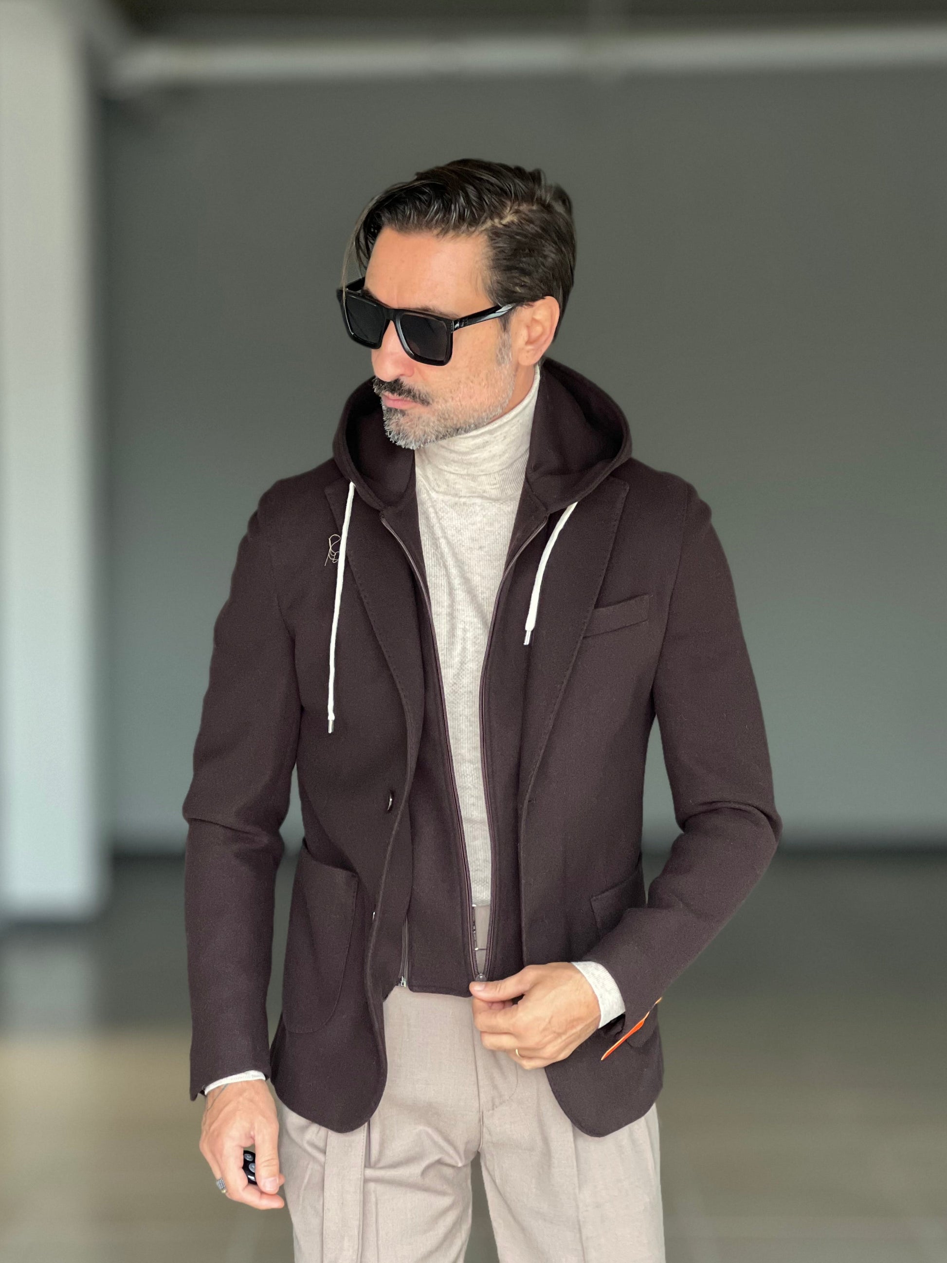 This wool jacket combines classic style with practical comfort. Featuring a removable sweatshirt lining, it provides adaptable warmth suitable for varying temperatures. Expertly tailored for durability, this jacket offers both refined aesthetics and functional versatility for everyday wear.