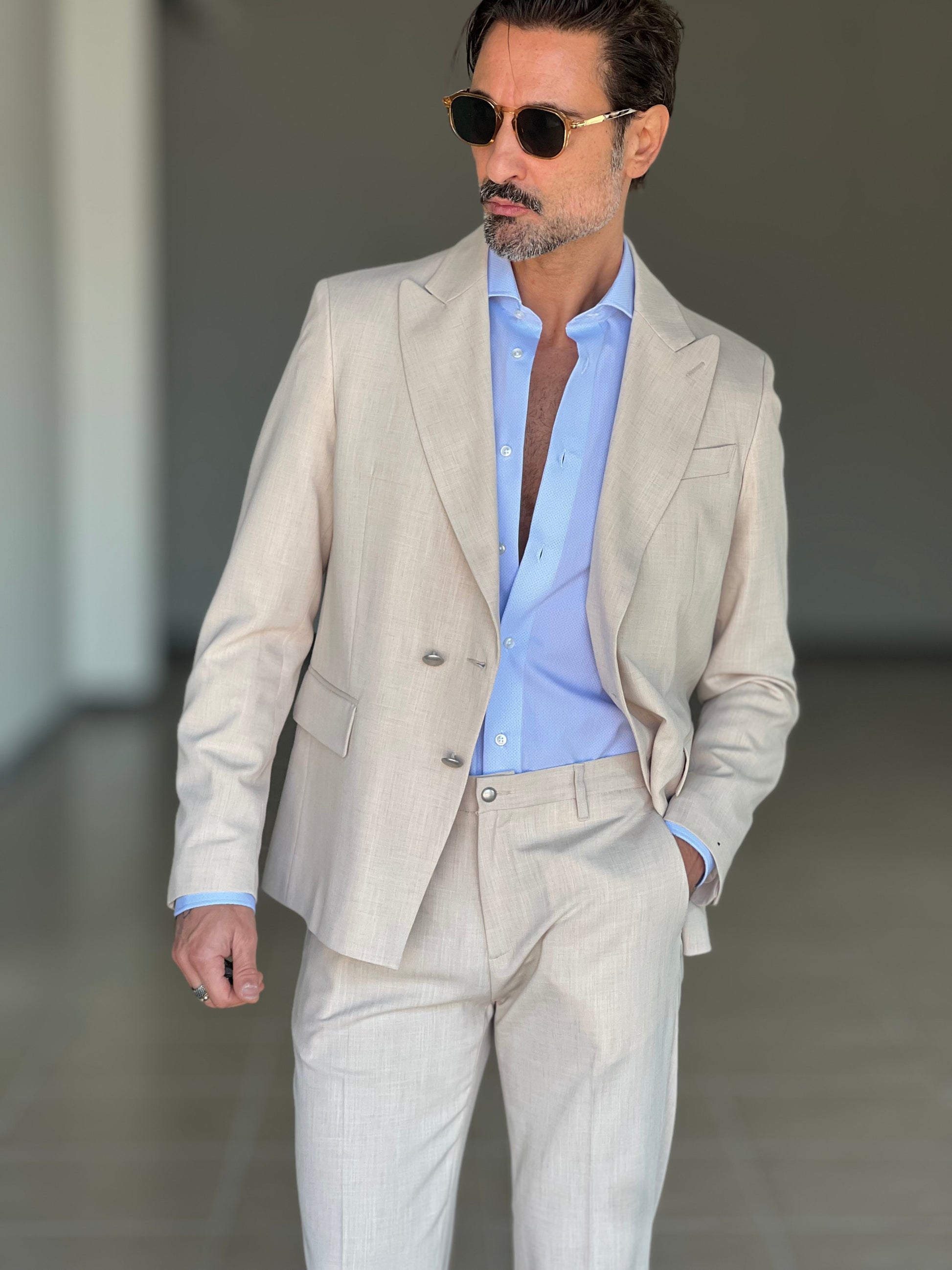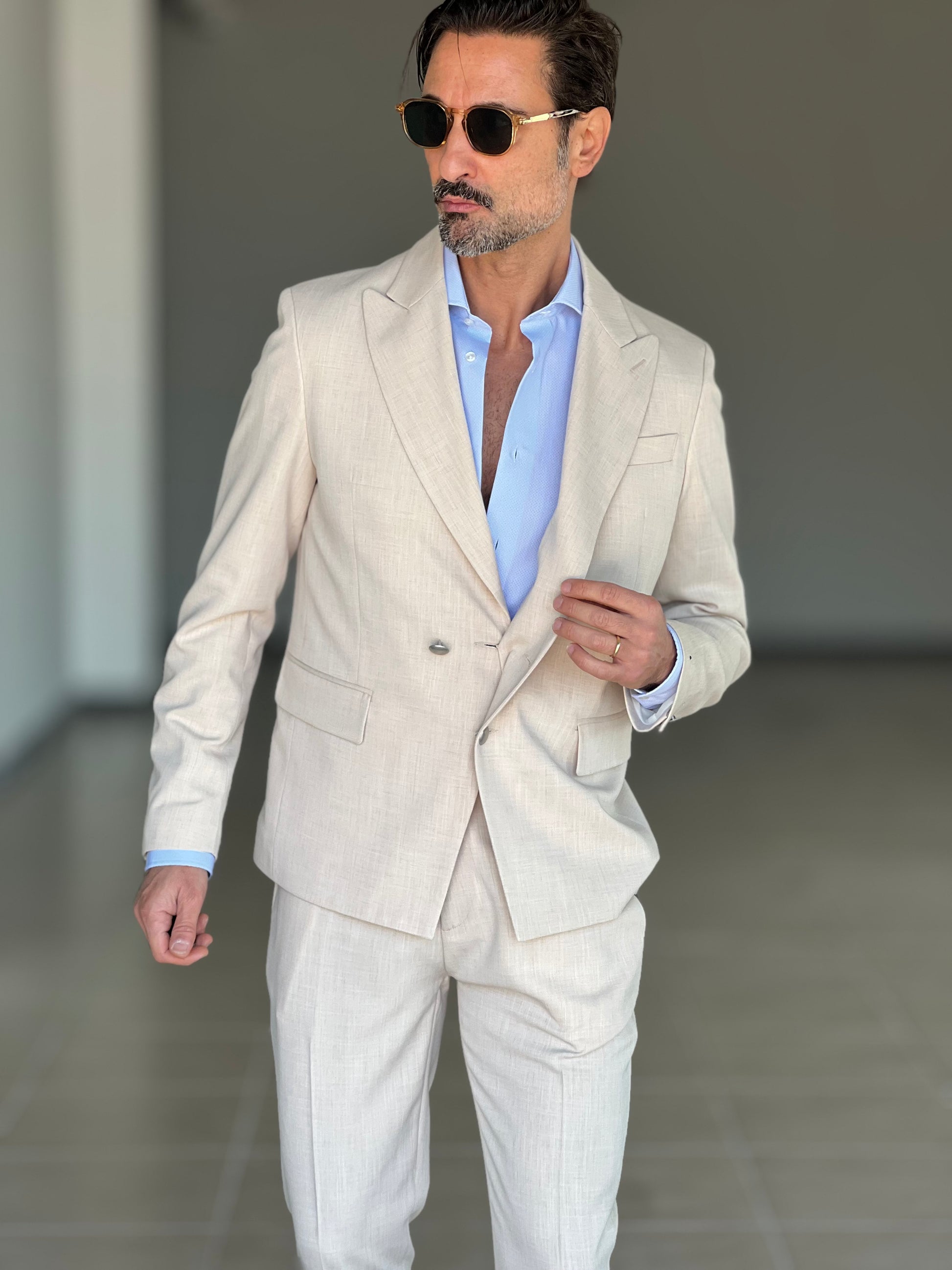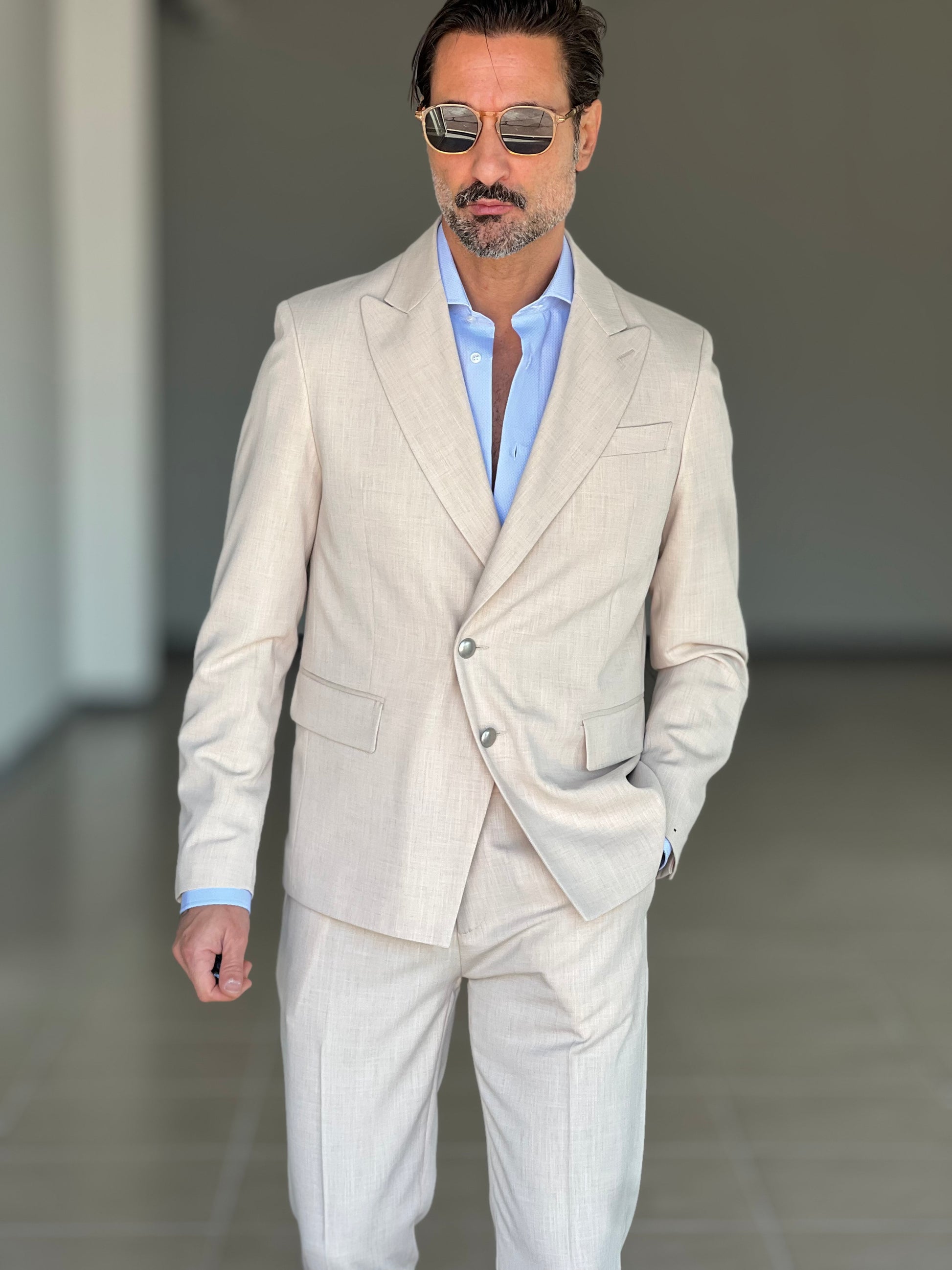 GIACCA SABBIA ALTATENSIONE PETTO A LANCIA MEZZO DOPPIOPETTO ( PUOI ABBINARE IL PANTALONE CON IL CODICE 34 )