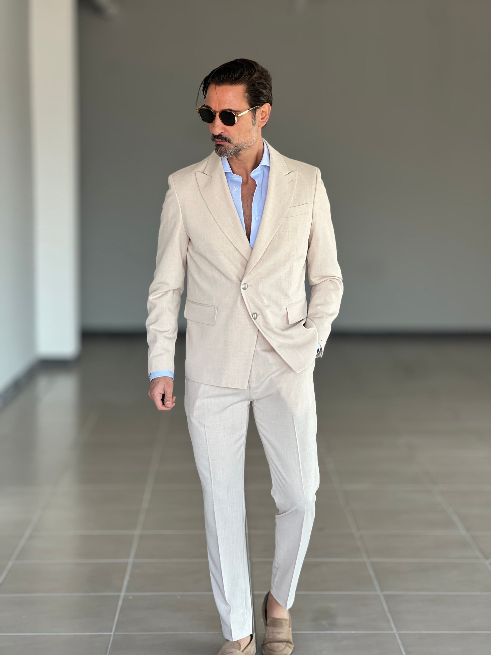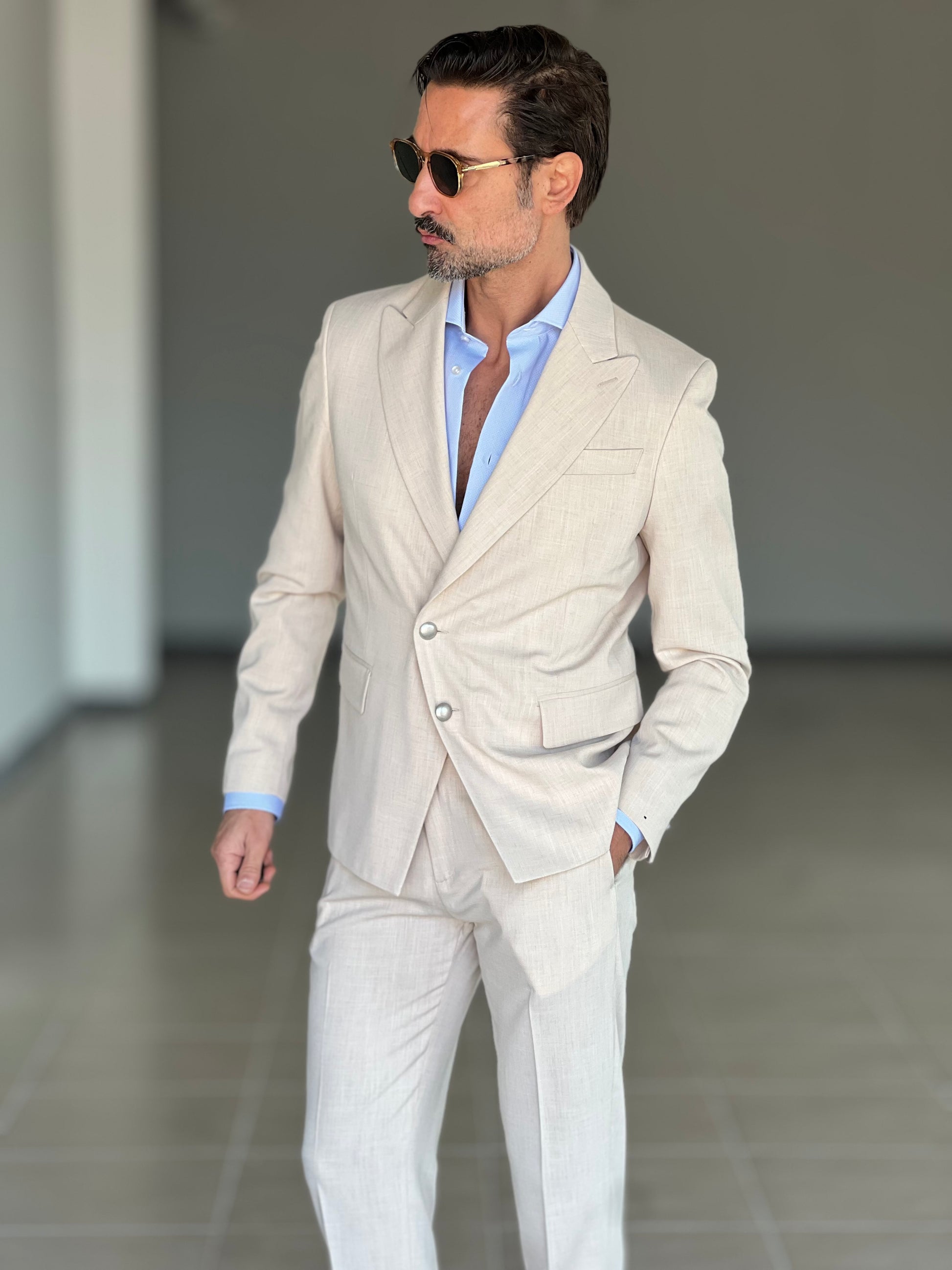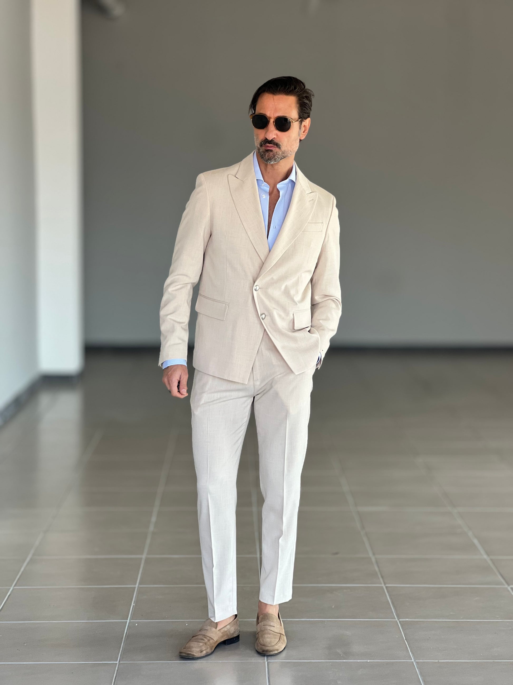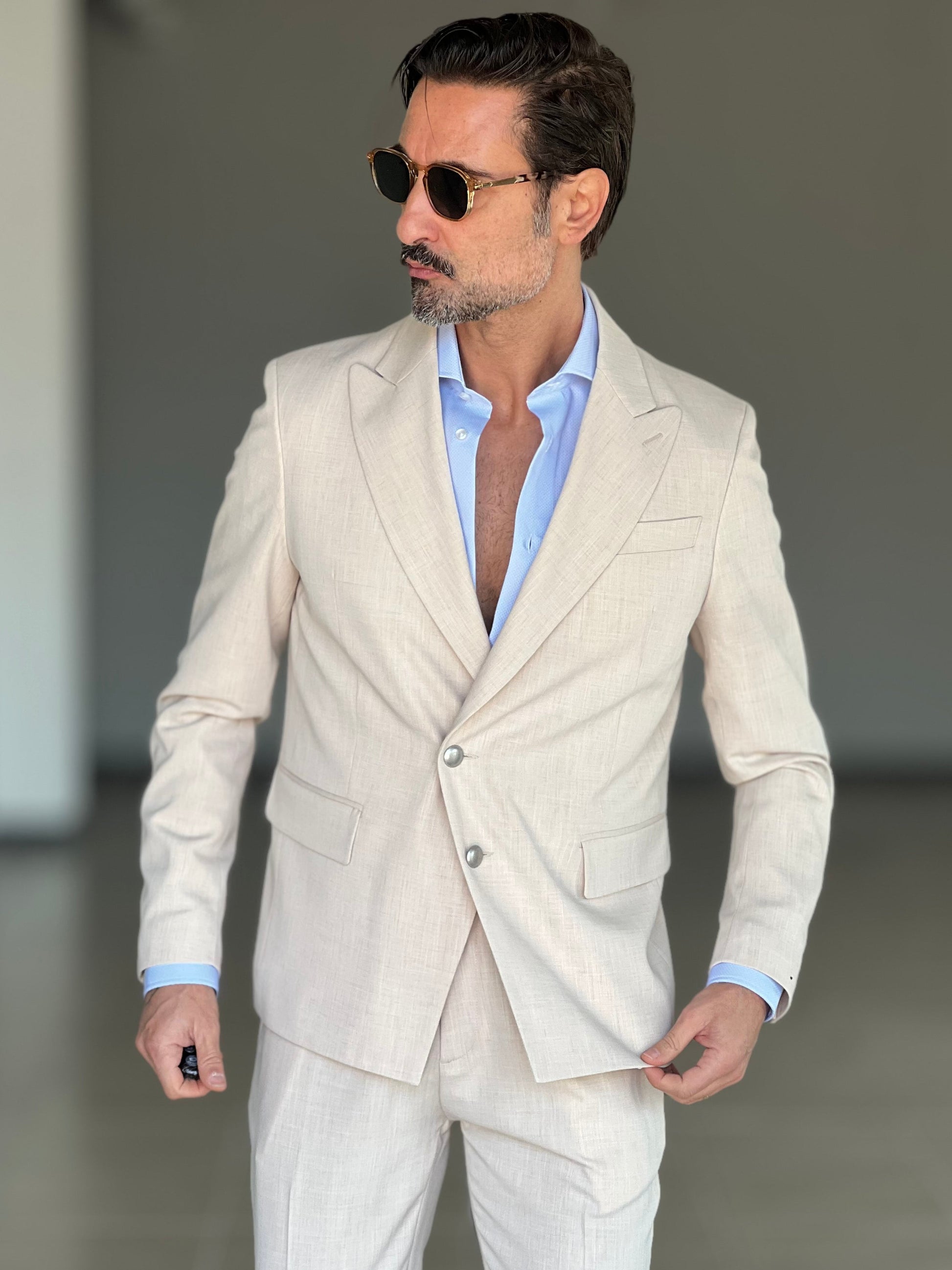 GIACCA SABBIA ALTATENSIONE PETTO A LANCIA MEZZO DOPPIOPETTO ( PUOI ABBINARE IL PANTALONE CON IL CODICE 34 )