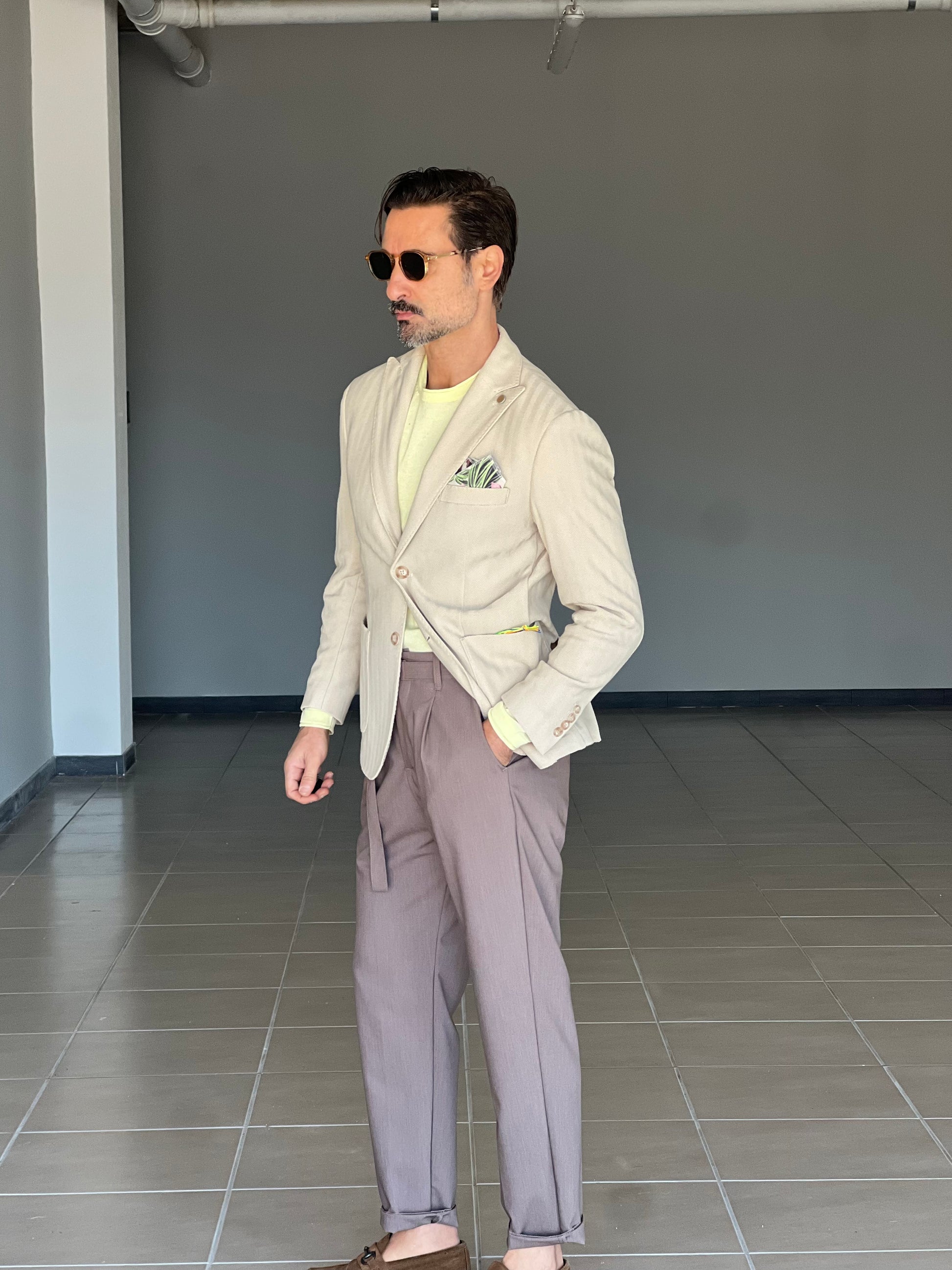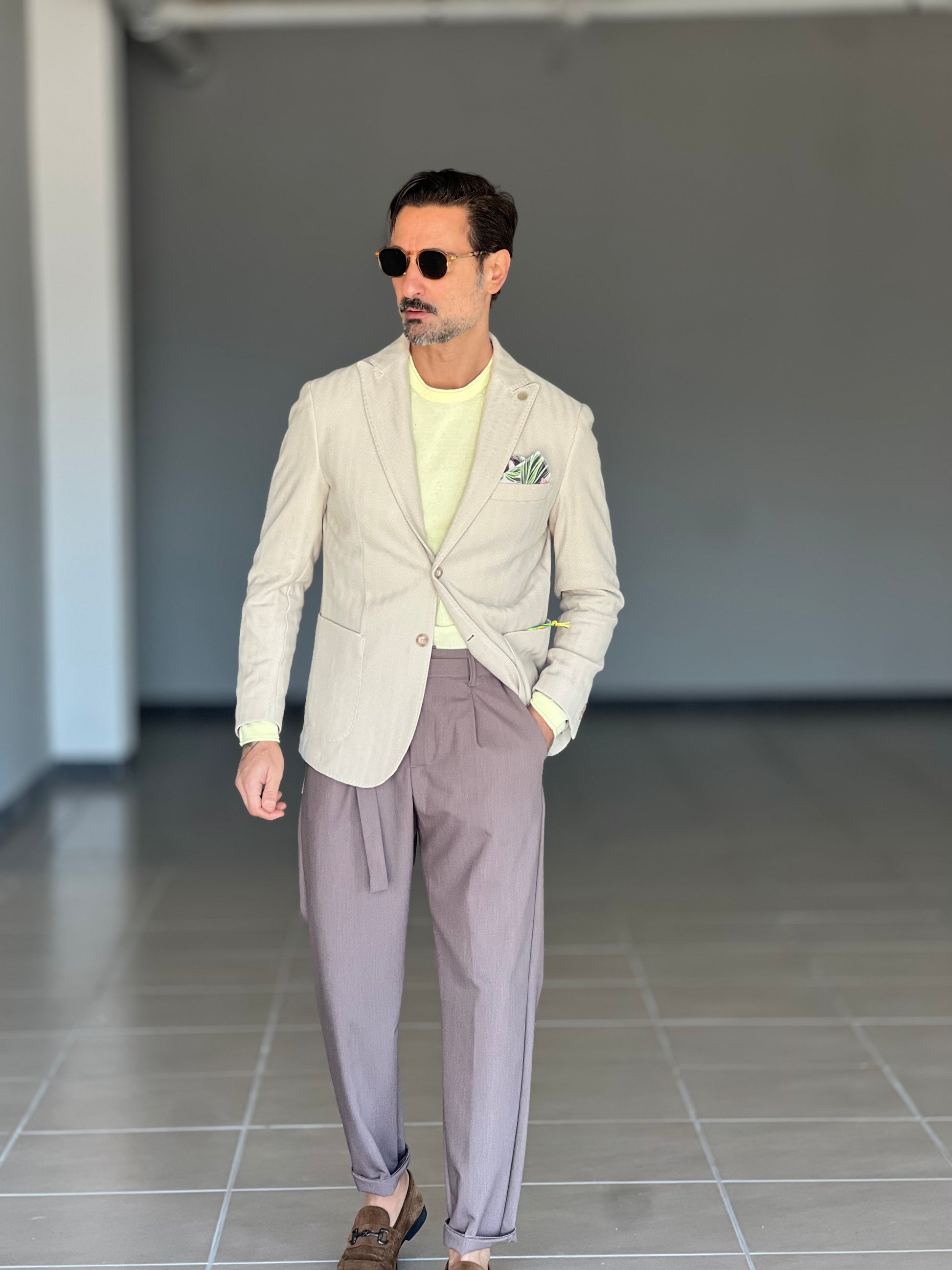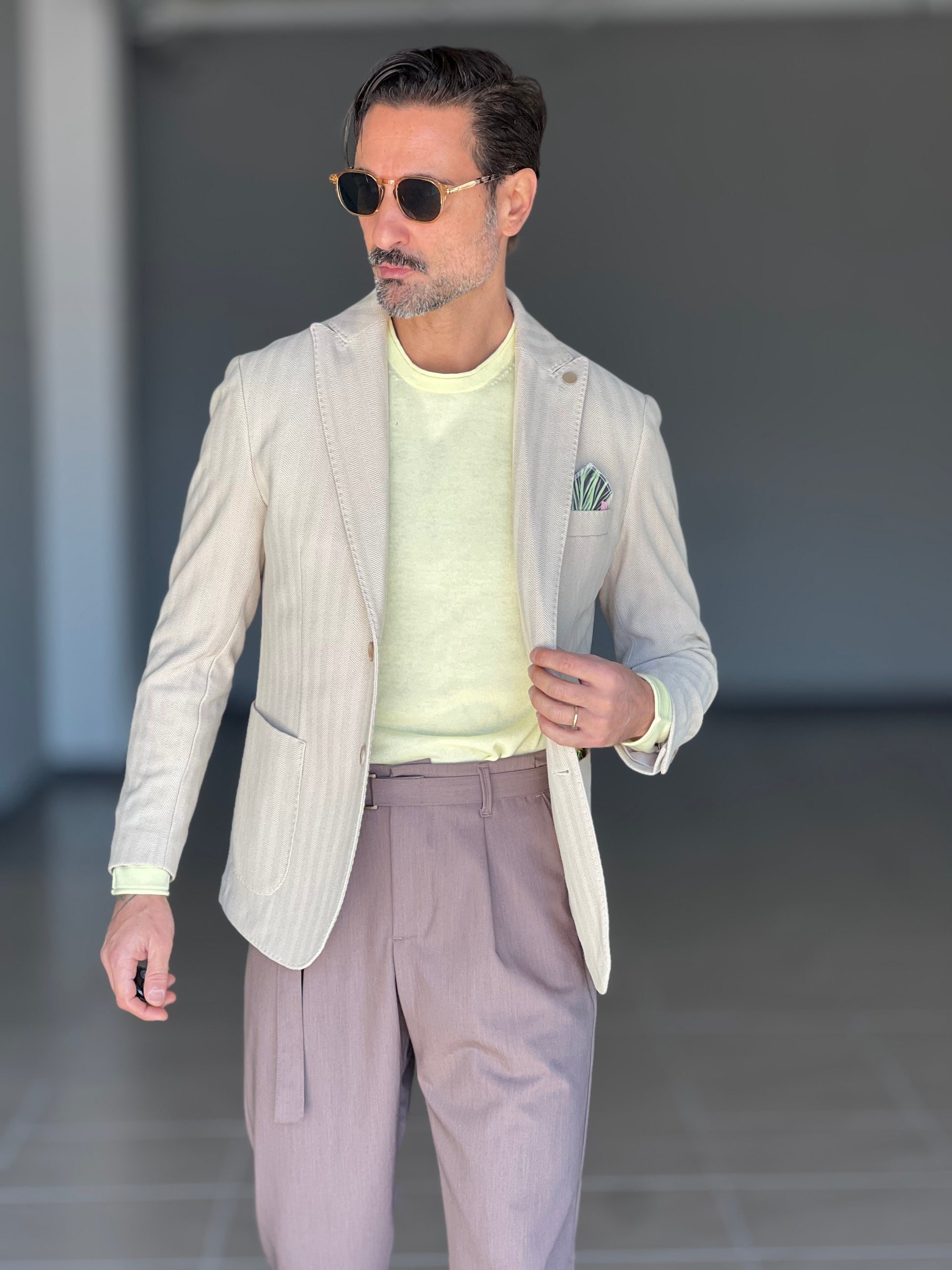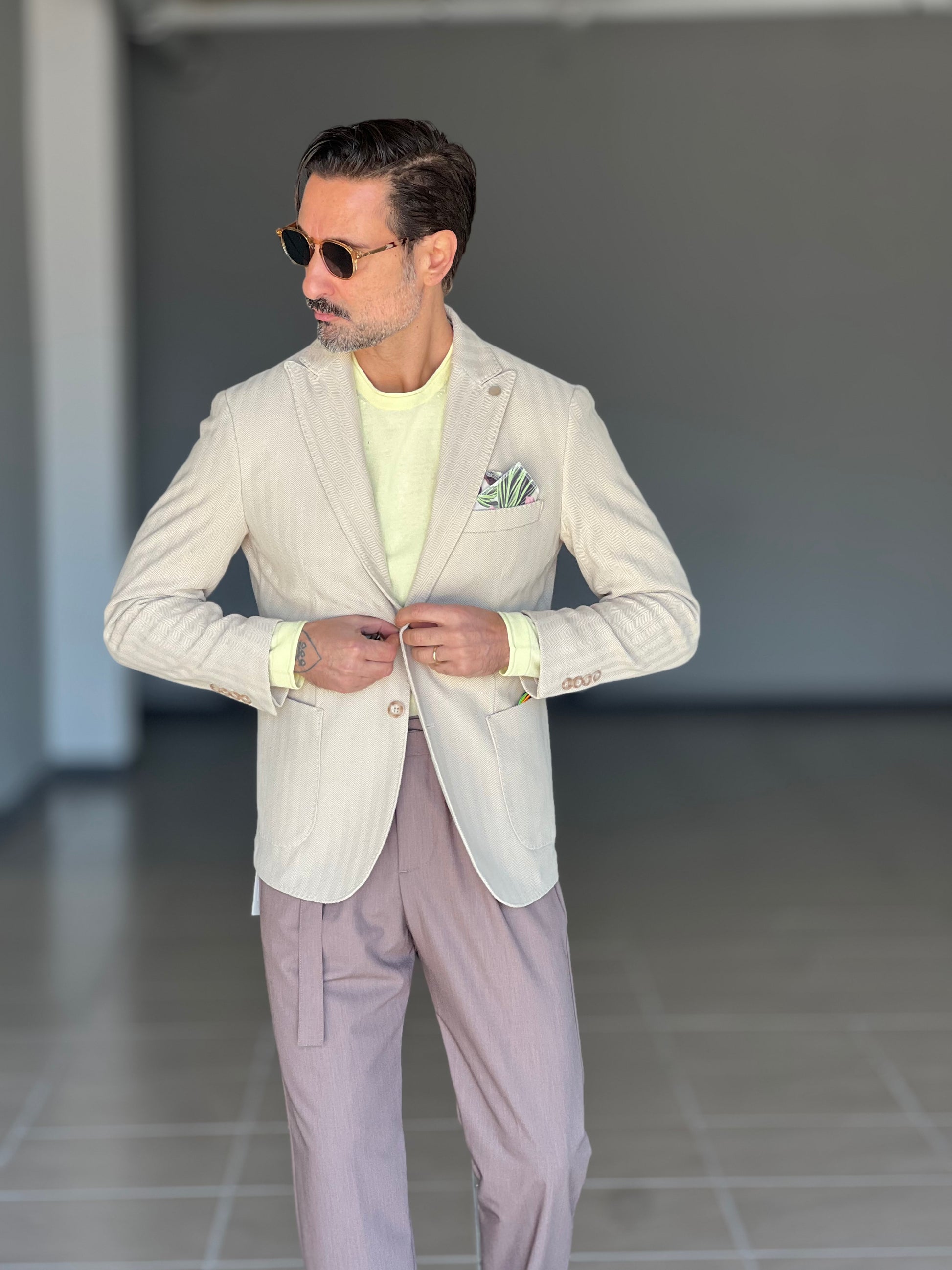 GIACCA SABBIA SPIGATA IN TINTA STRECH MONOPETTO