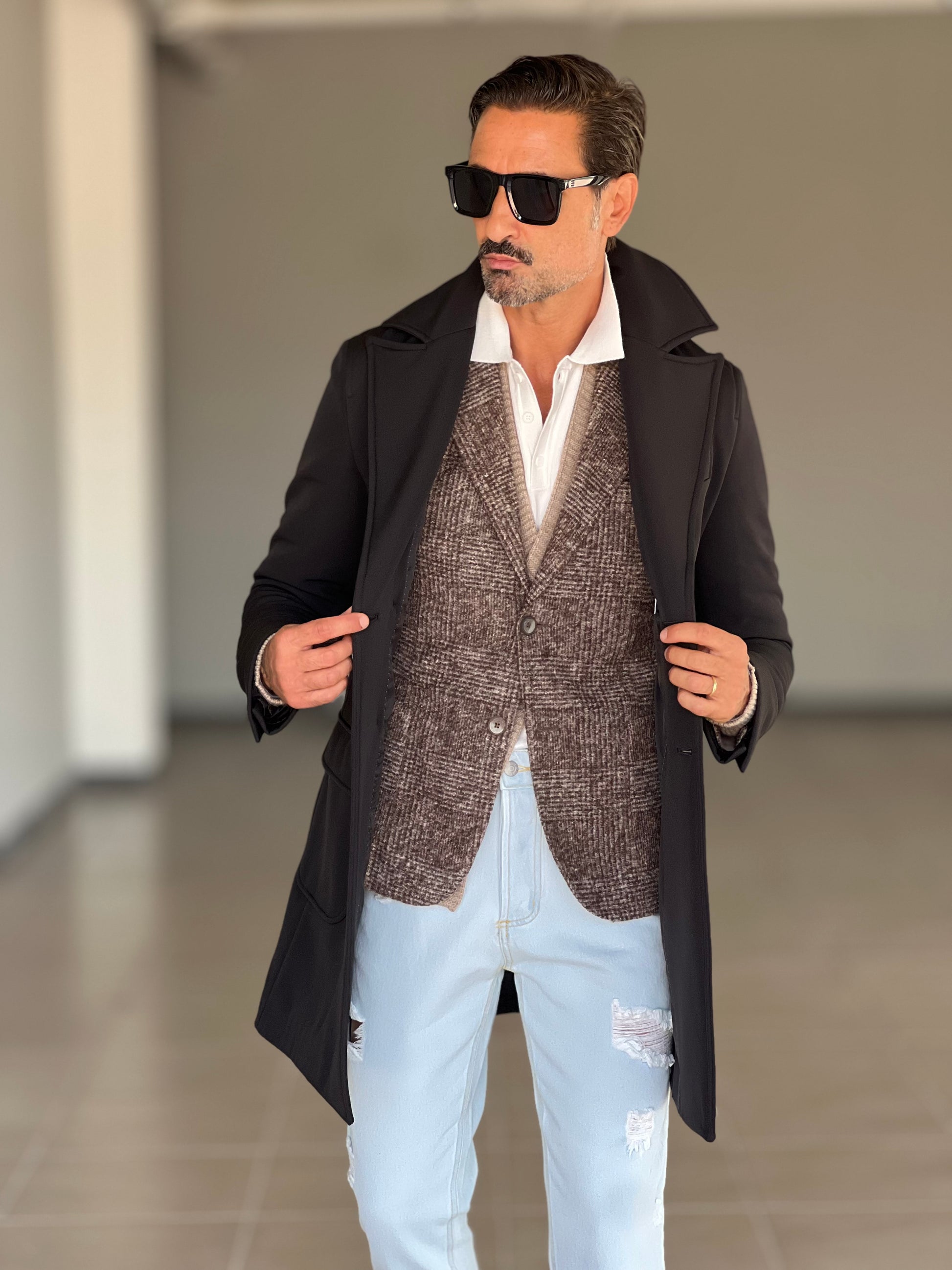 Discover the timeless elegance of the large tartan jacket in shades of dark brown and beige, crafted from high-quality wool and blended fabrics. This piece combines warmth and style, ideal for facing cooler days with a refined touch. Perfect for those seeking comfort and a classic design that enhances any outfit, the Xagon jacket is a versatile wardrobe investment. Choose the tradition of tartan, revisited in a modern and exclusive way.