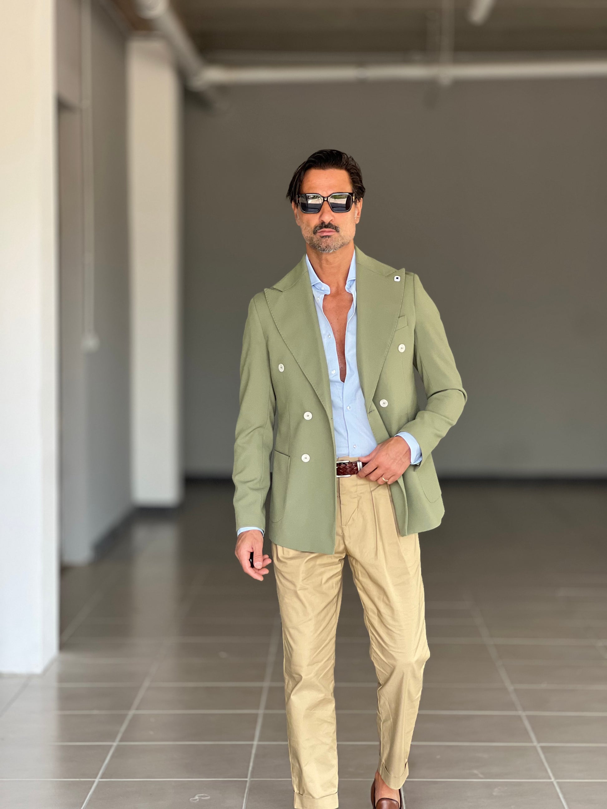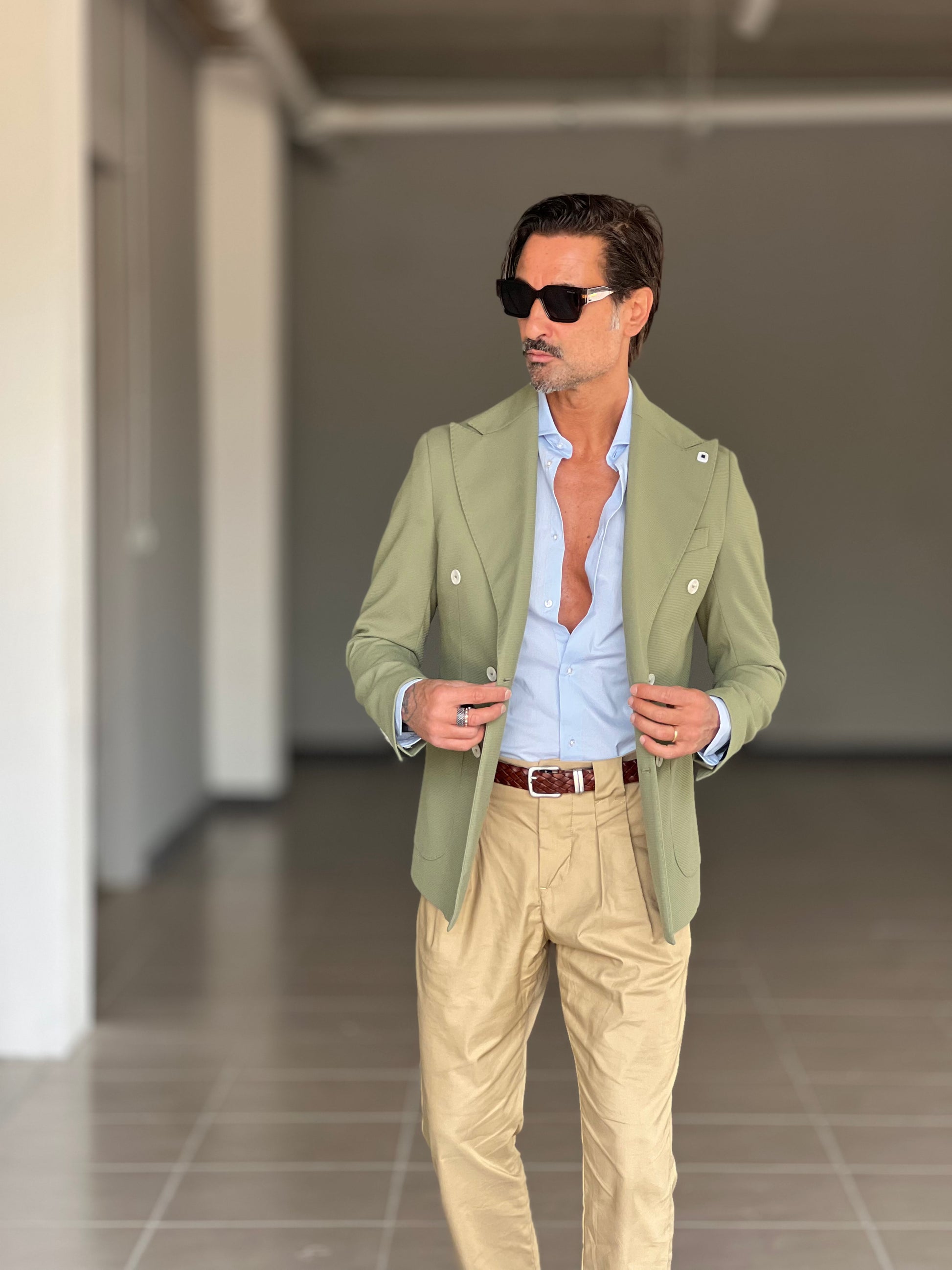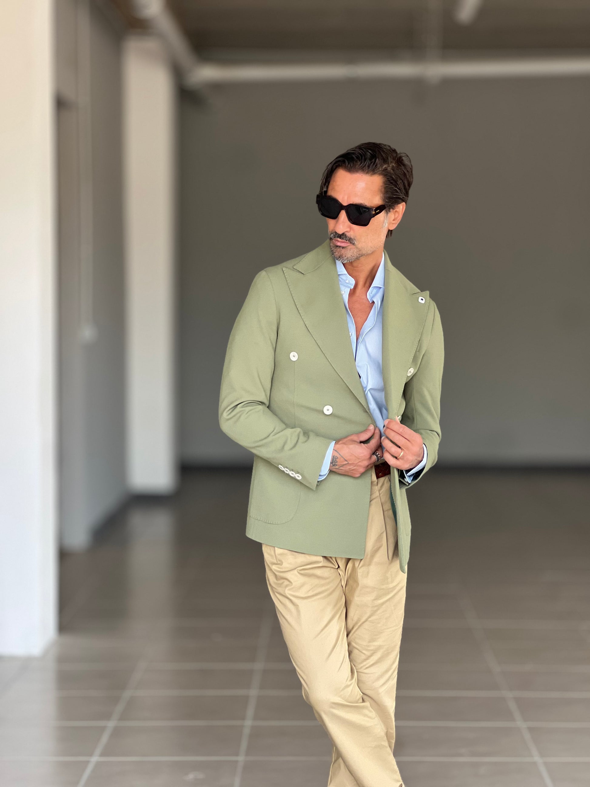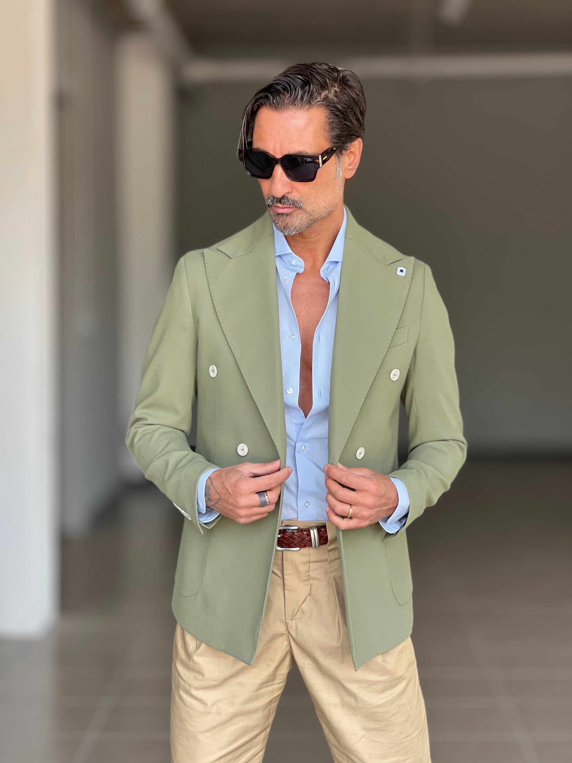 GIACCA VERDE SALVIA DOPPIOPETTO BOTTONE A CONTRASTO petro'. 0078