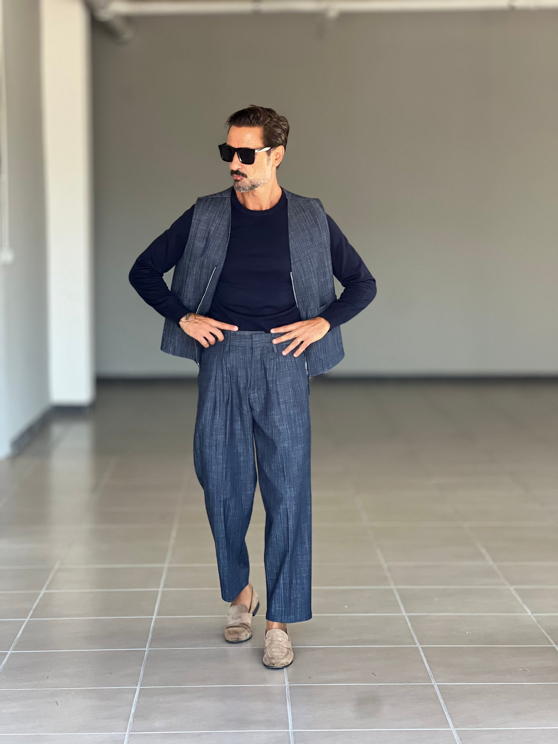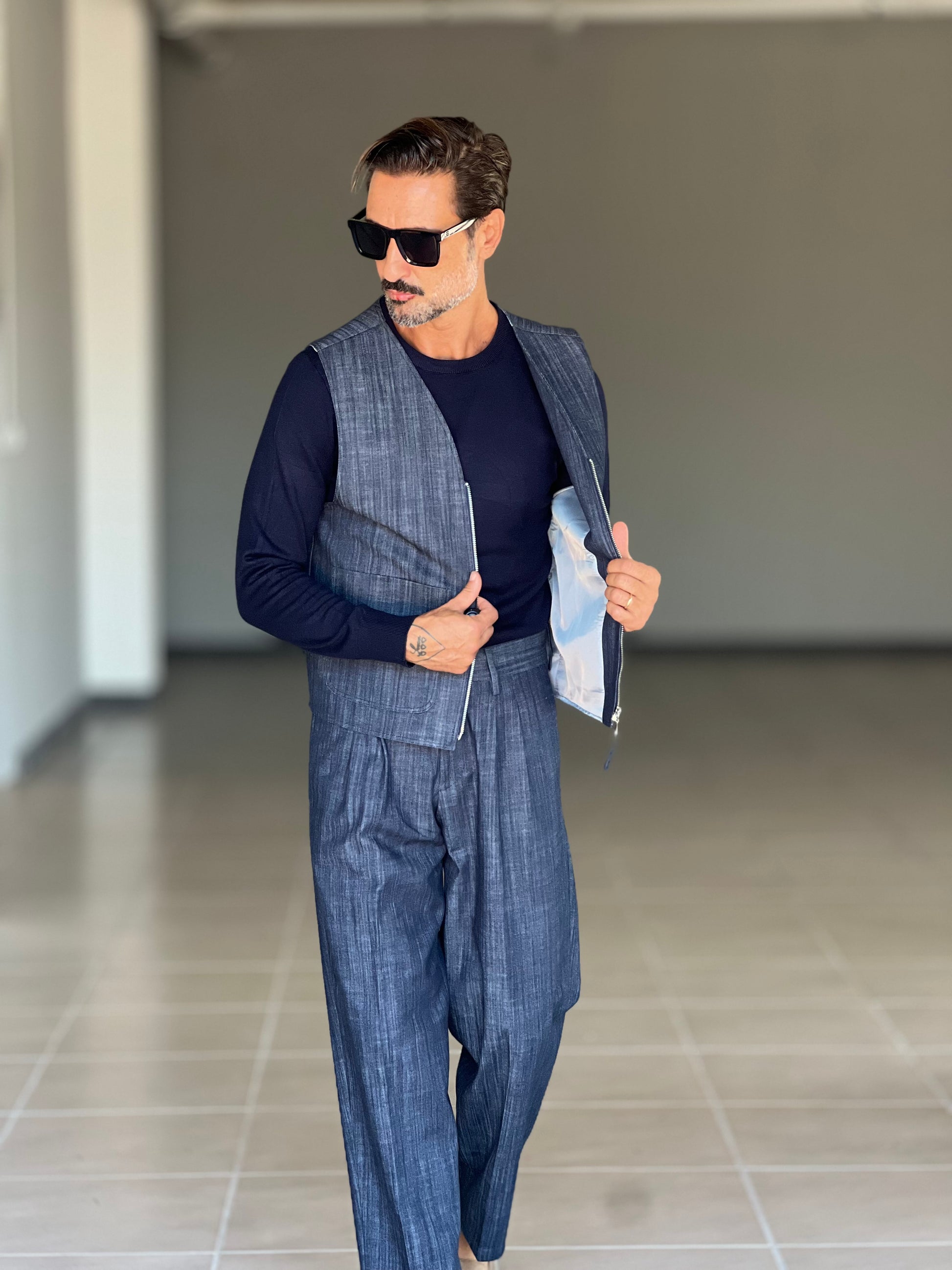 GILET BLU FIAMMATO ZIP STONDATO PETRO'