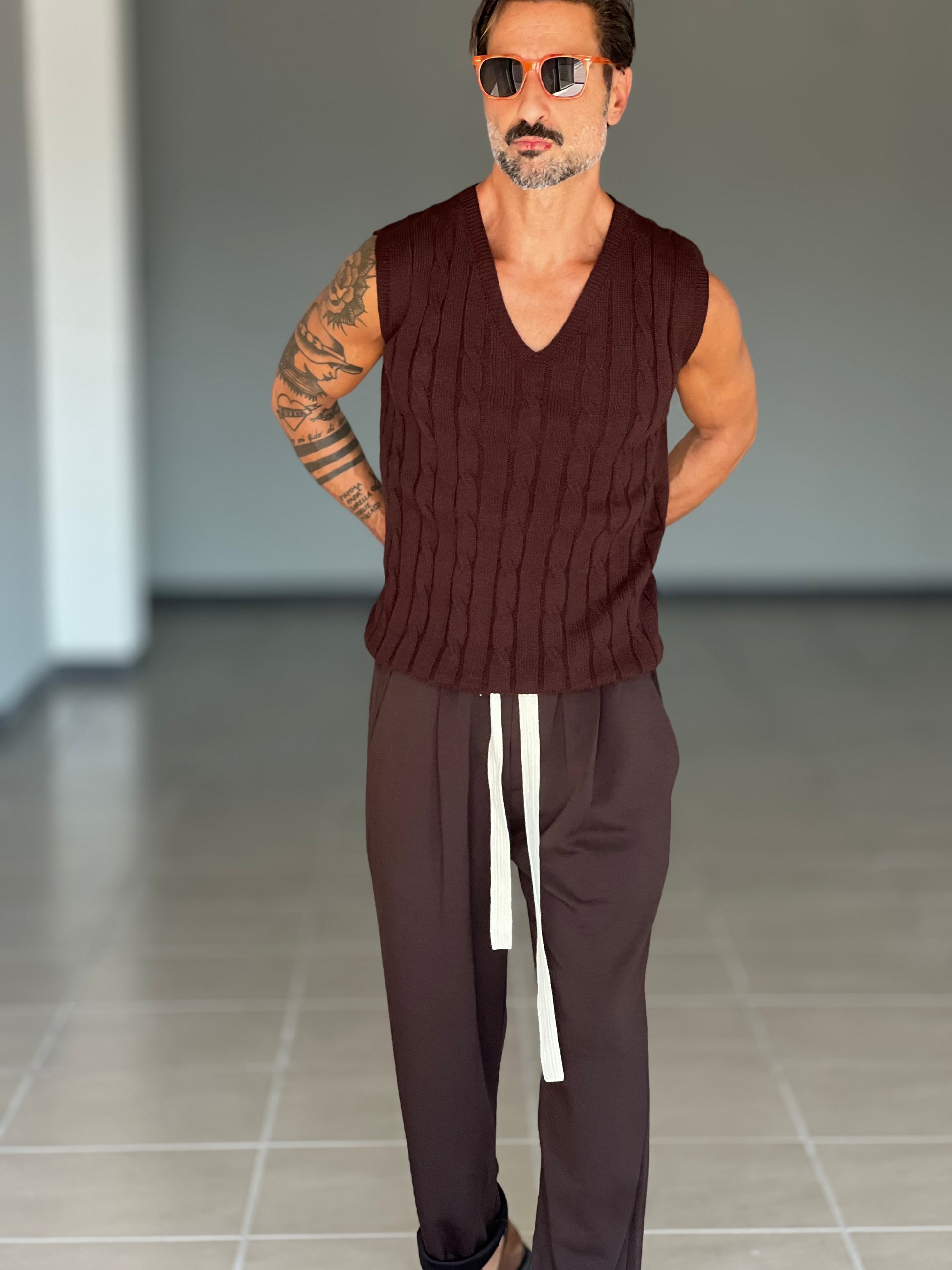 Questo Gilet Maglia Treccia Inglese unisce la maestria artigianale classica al comfort moderno. Realizzato con un motivo a treccia inglese finemente lavorato a maglia, offre resistenza e una texture raffinata. La sua vestibilità aderente assicura una silhouette impeccabile, rendendolo ideale per un look a strati nelle stagioni più fredde, mantenendo un look raffinato. Perfetto per chi cerca un calore sofisticato senza rinunciare allo stile.