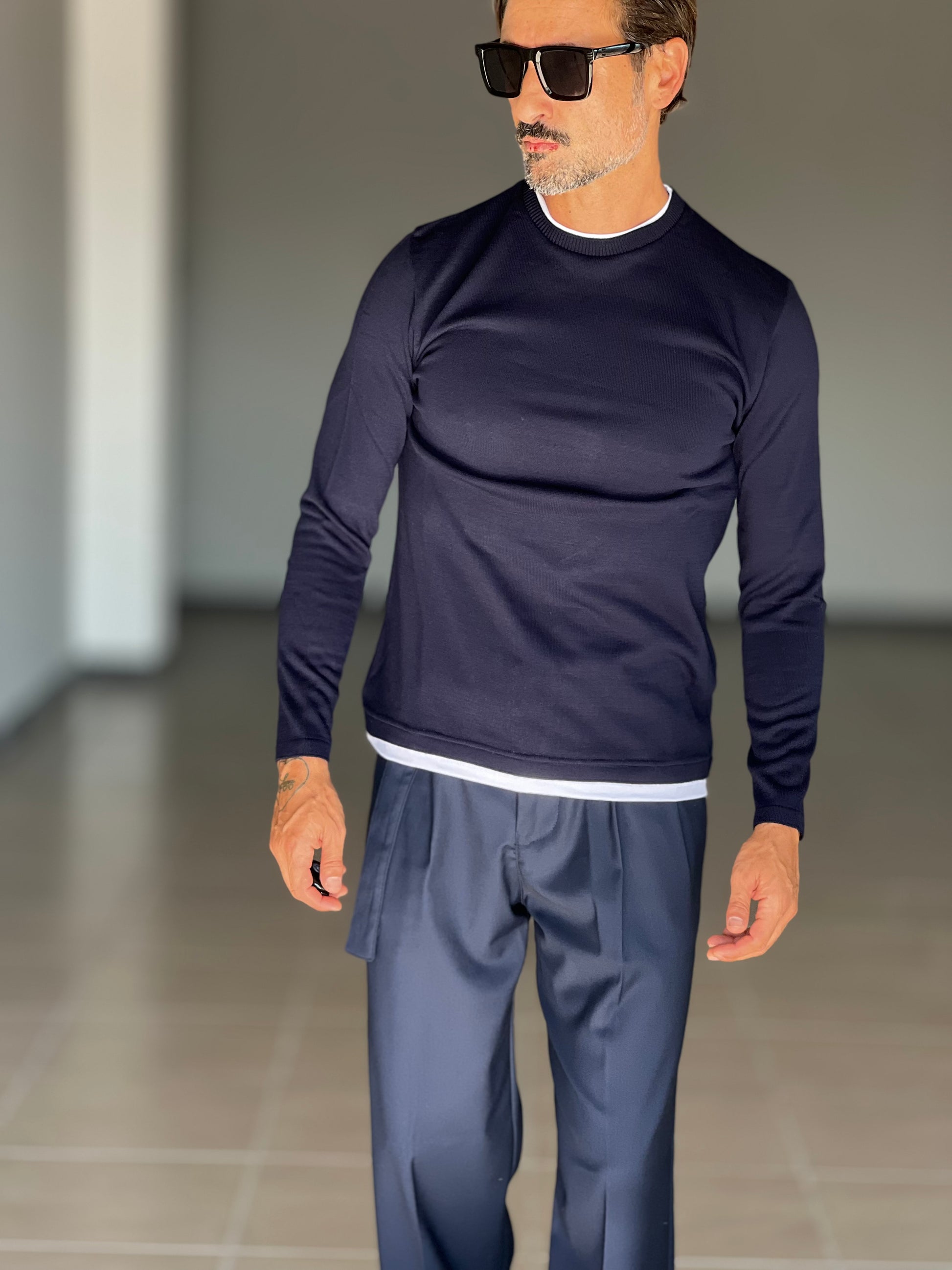MAGLIA 2 FILI BLU INSERTO T SHIRT BIANCA