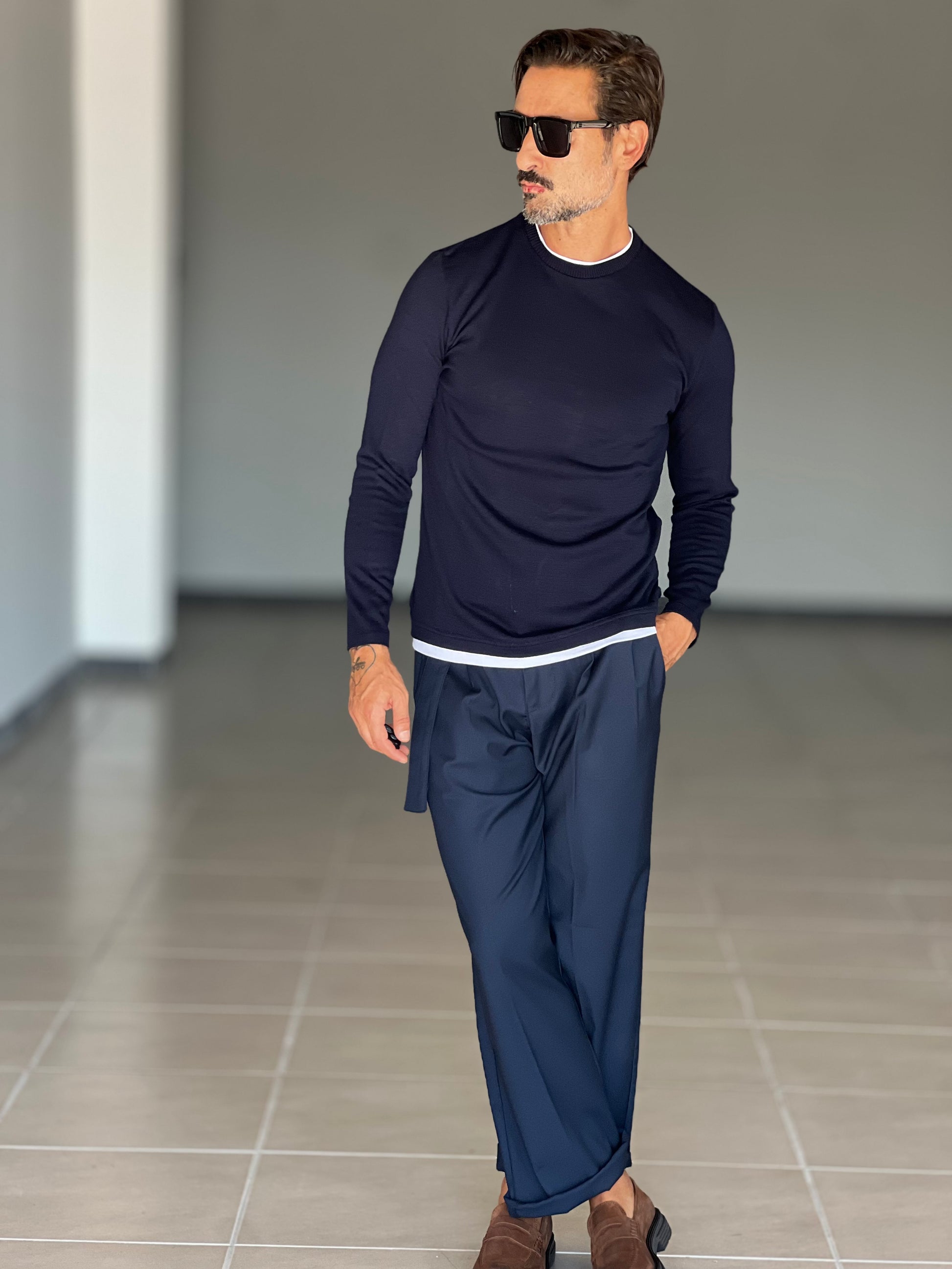 This crew neck sweater in viscose and mixed fabrics is ideal for those seeking a versatile and comfortable garment. The combination of materials ensures softness and breathability, adapting perfectly to different weather conditions. The classic fit and blue color make it a refined choice for both casual and more refined looks. Perfect for those who prefer quality and style without sacrificing comfort.