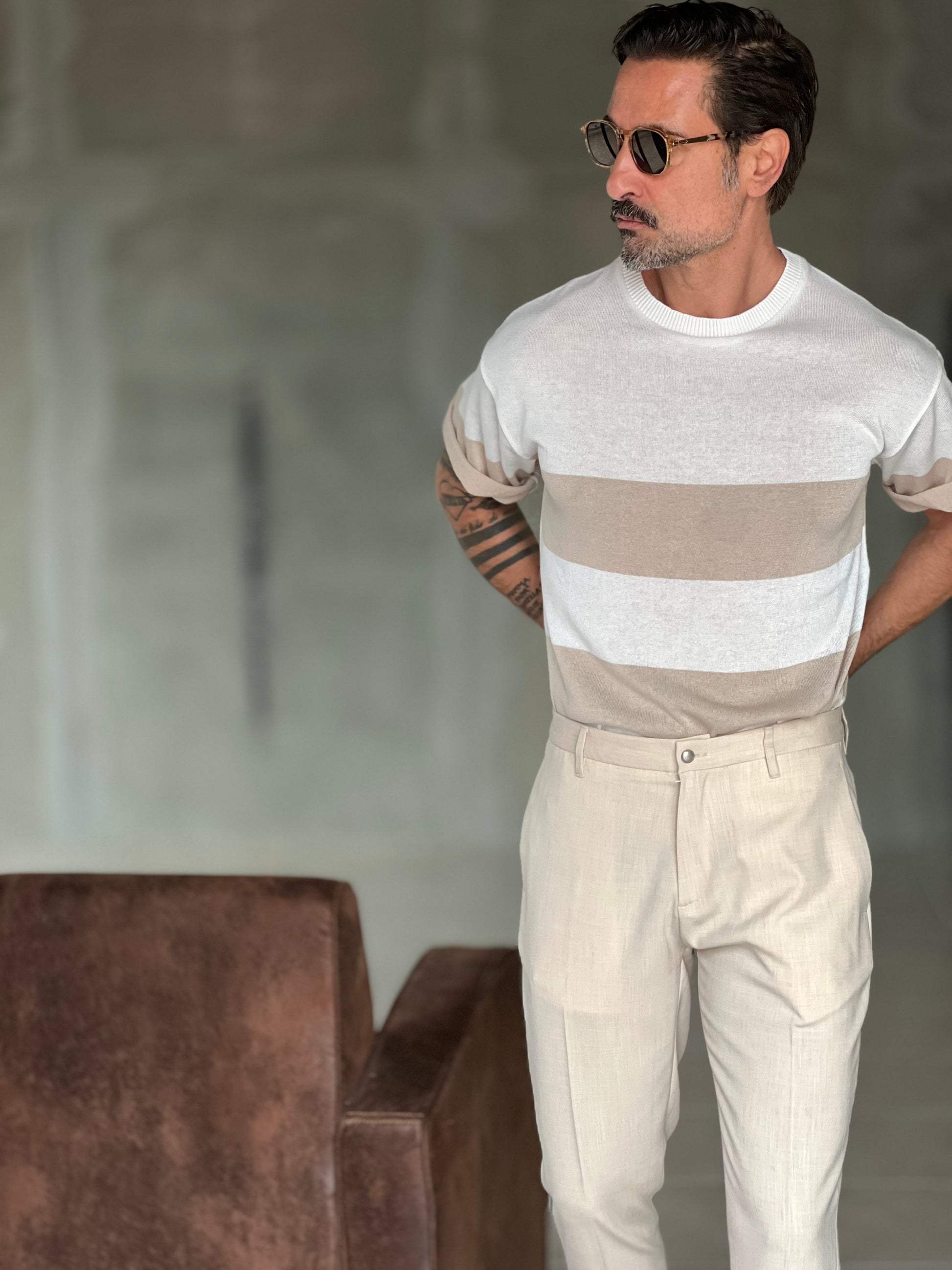 MAGLIA BIANCA RIGA GRANDE BEIGE IN FILO CROP