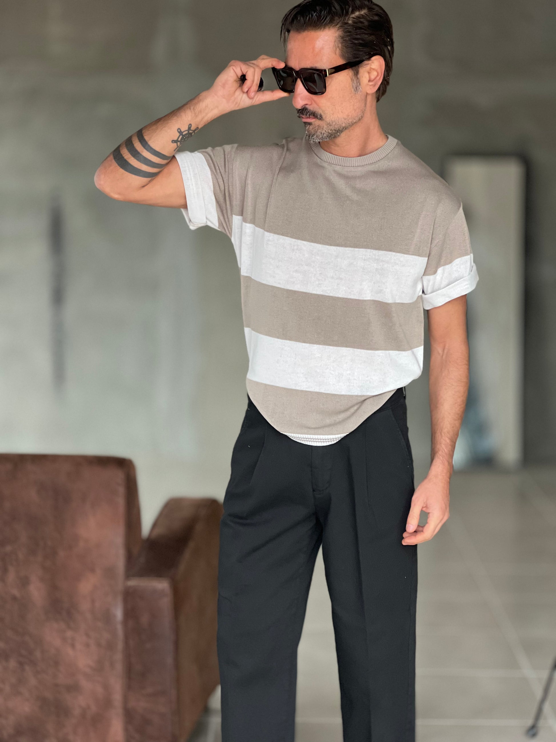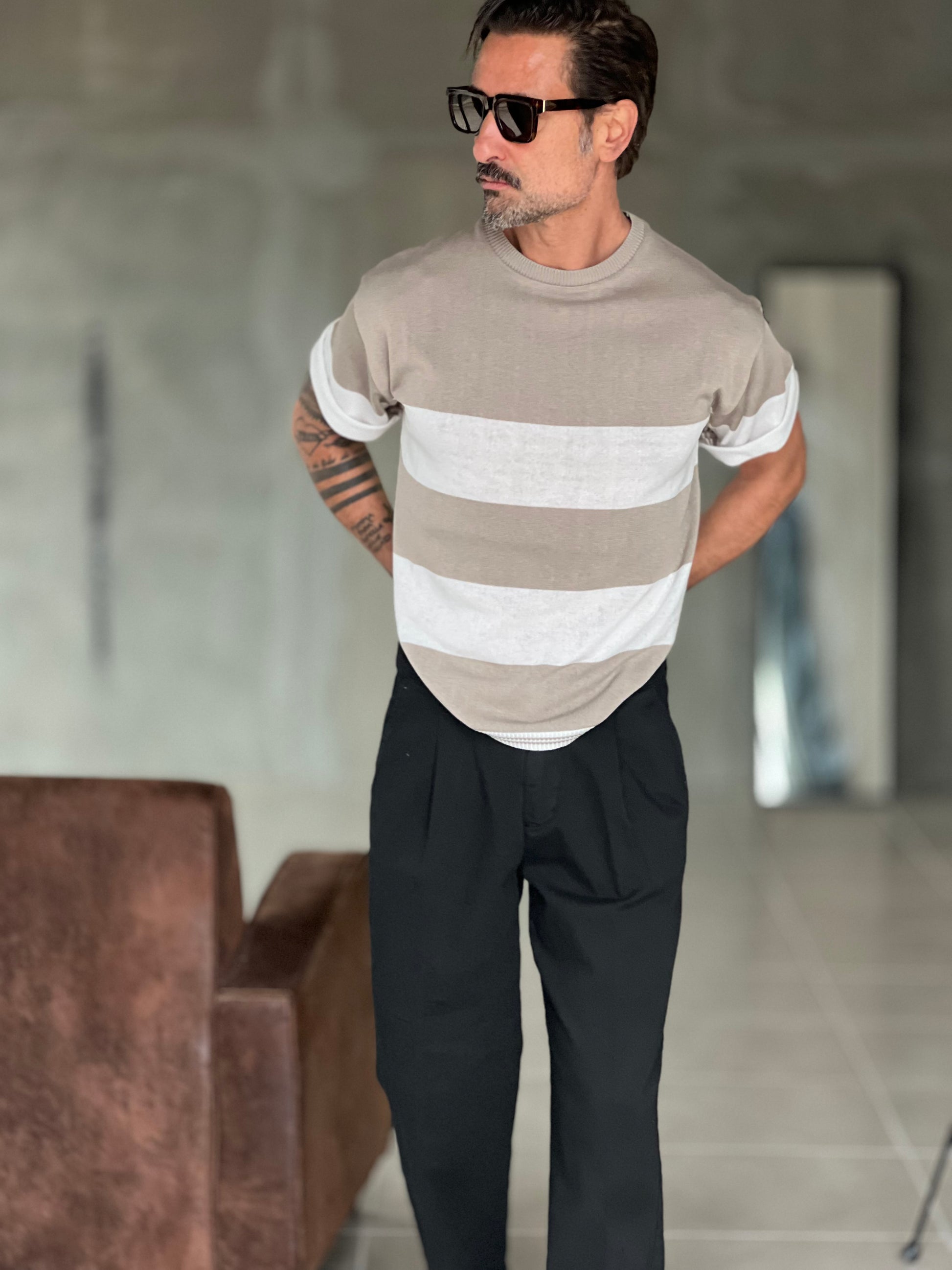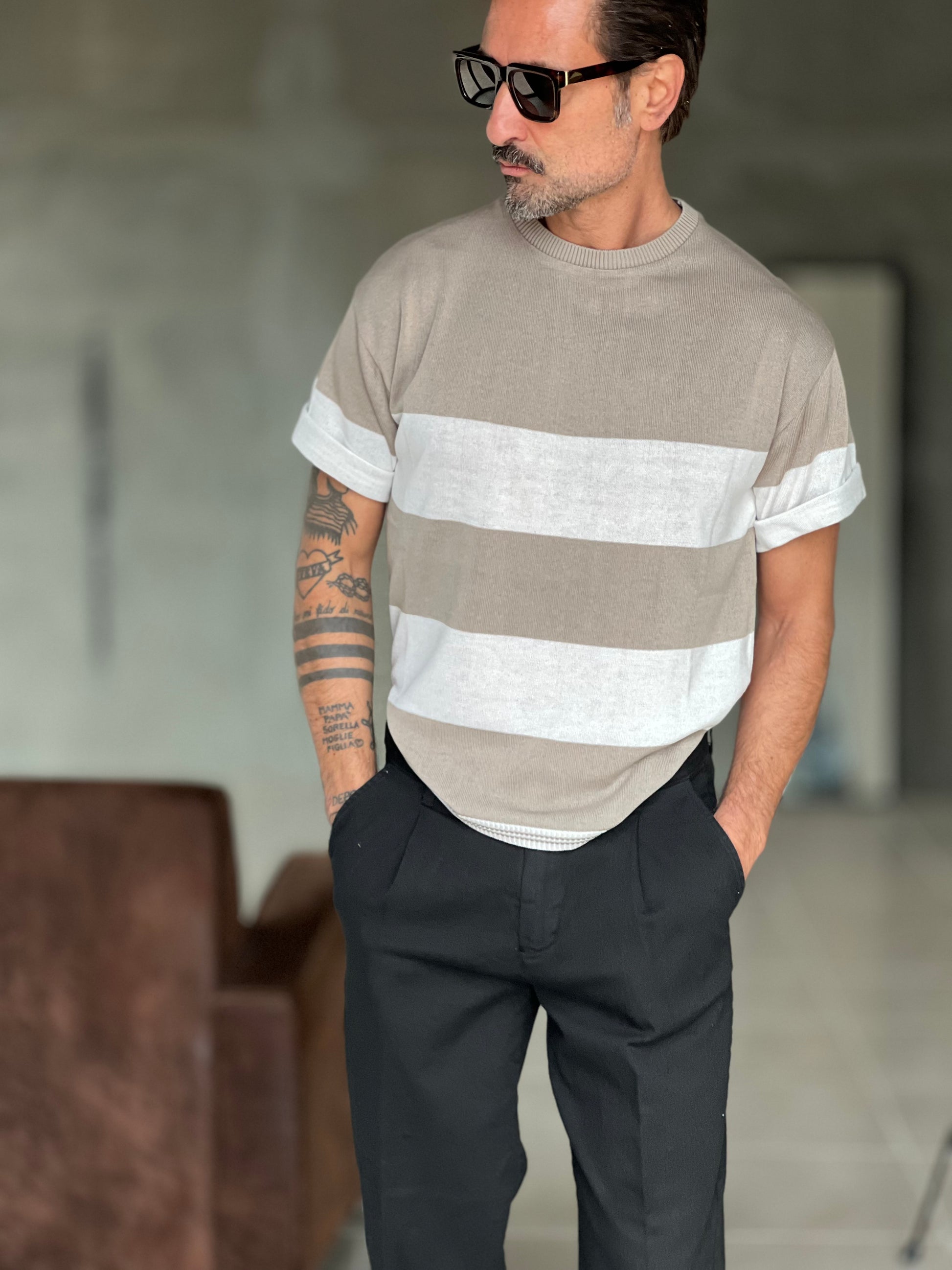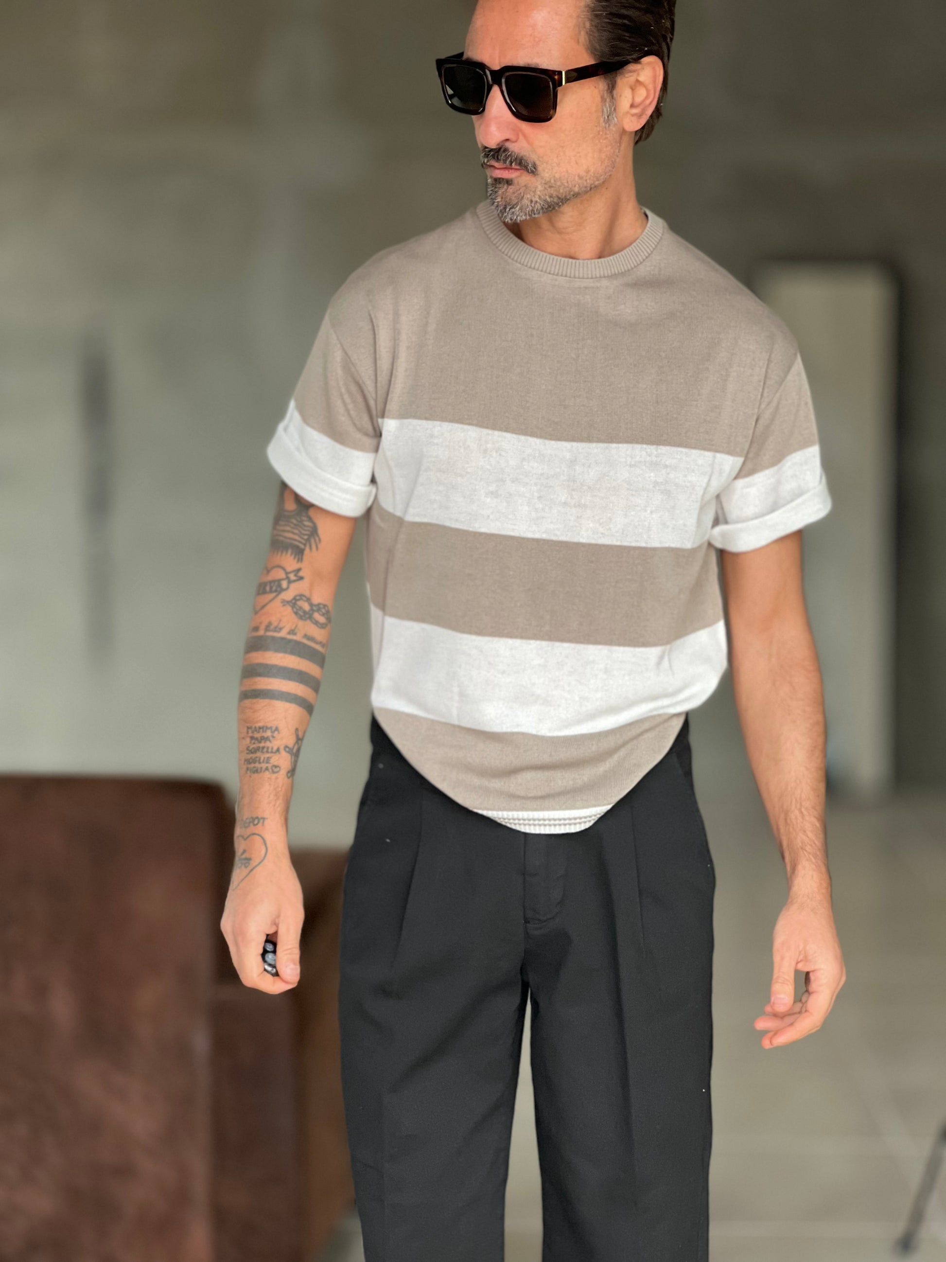 MAGLIA BIANCA RIGA GRANDE TORTORA IN FILO CROP