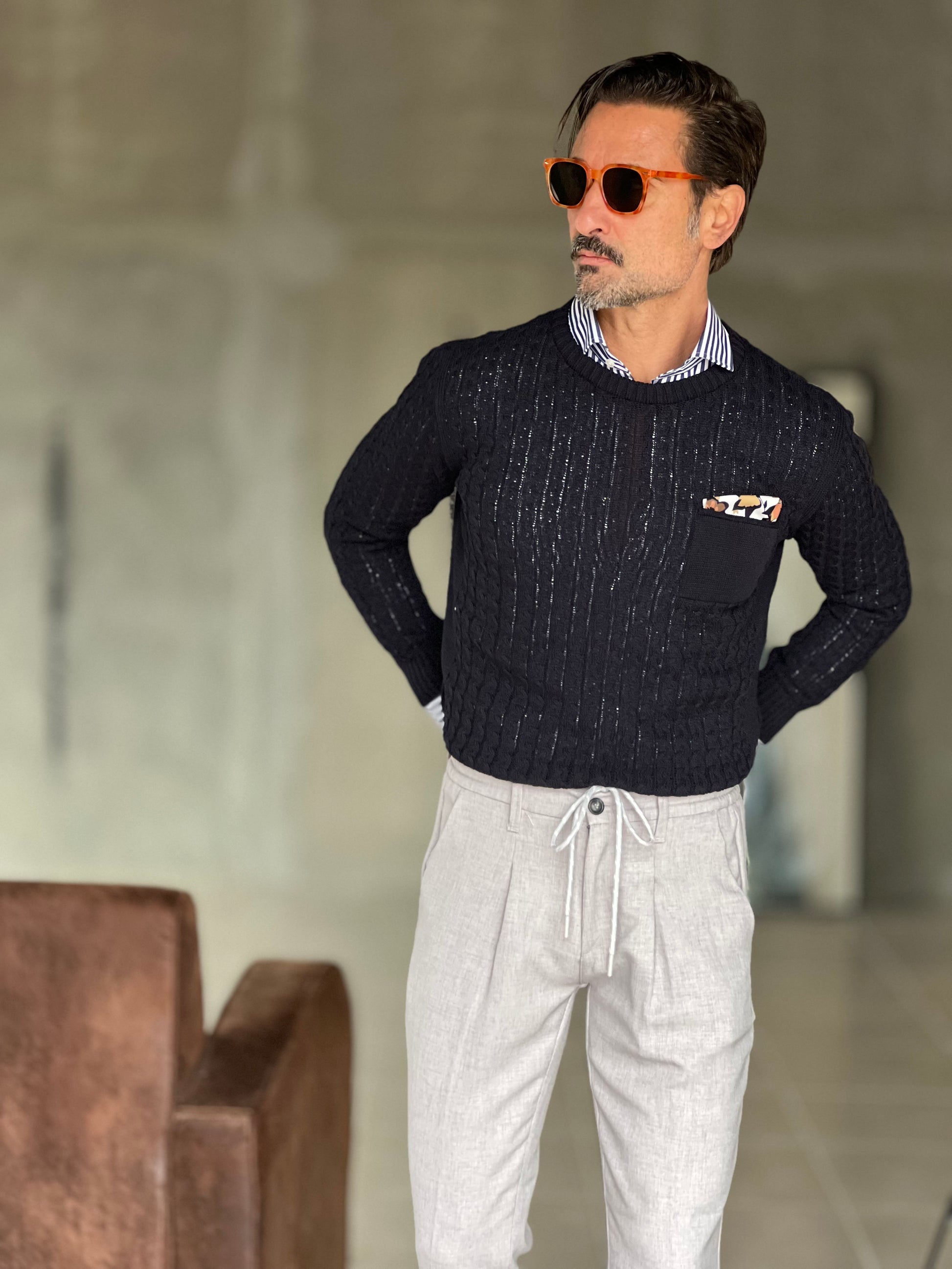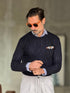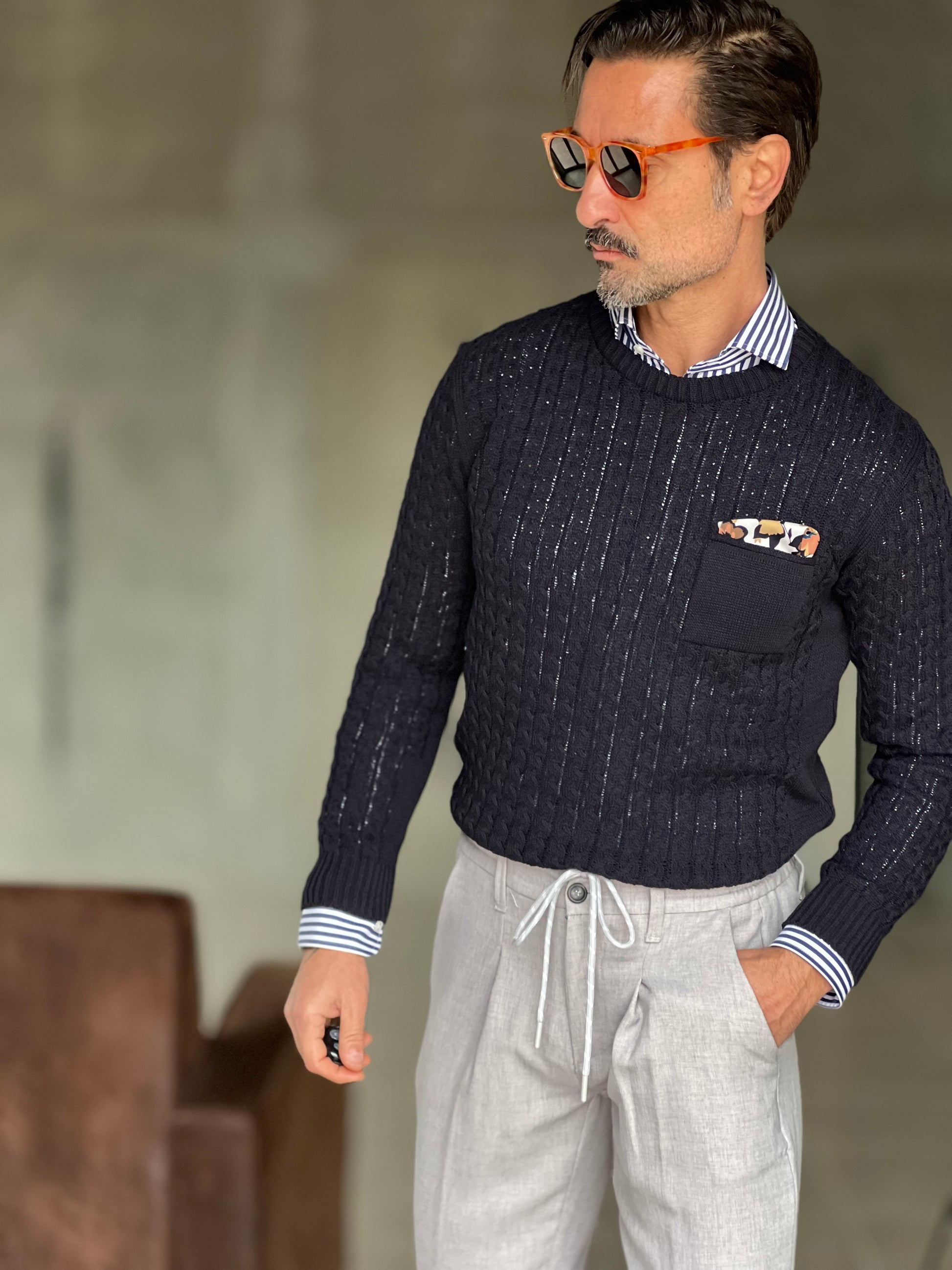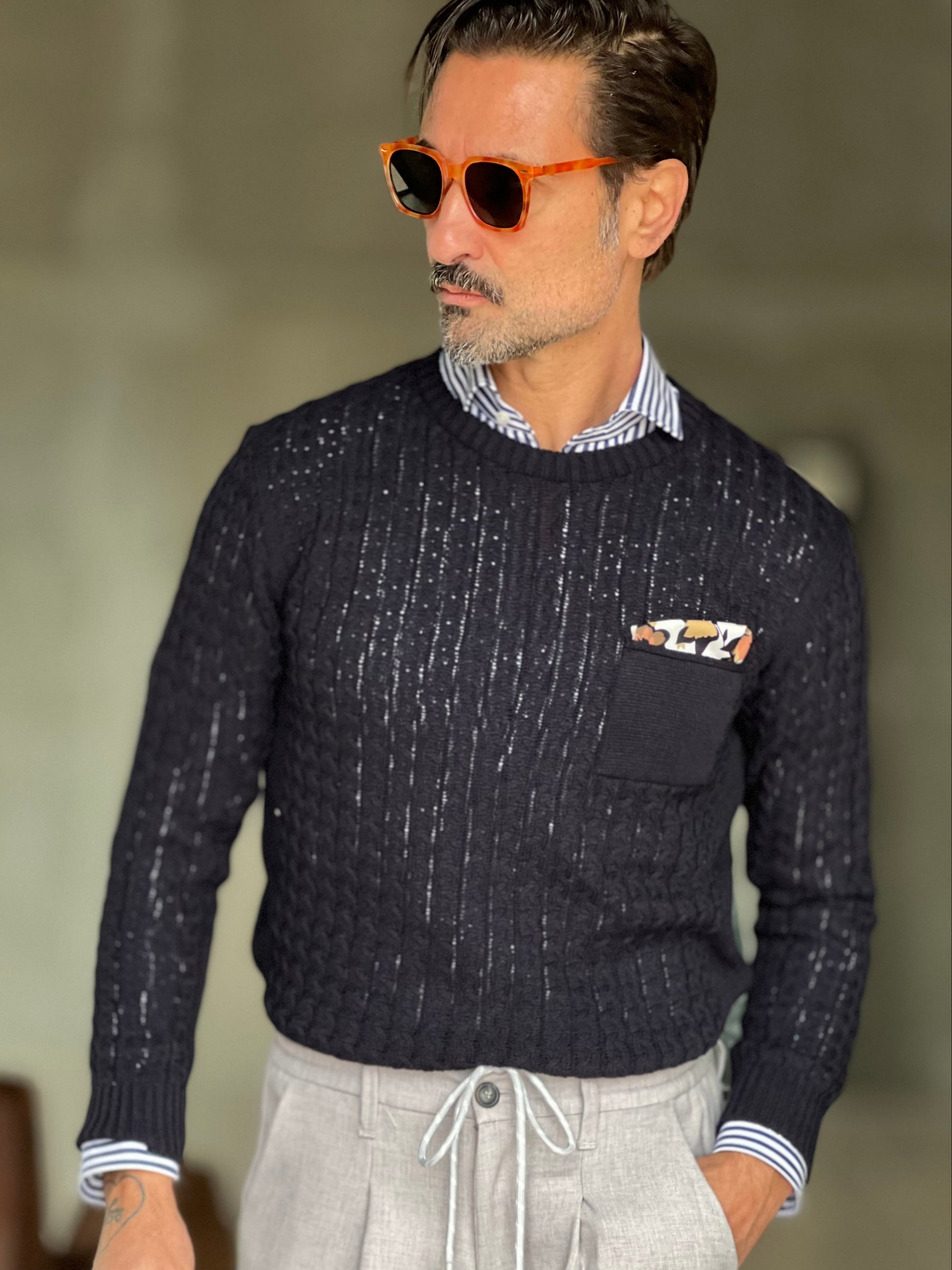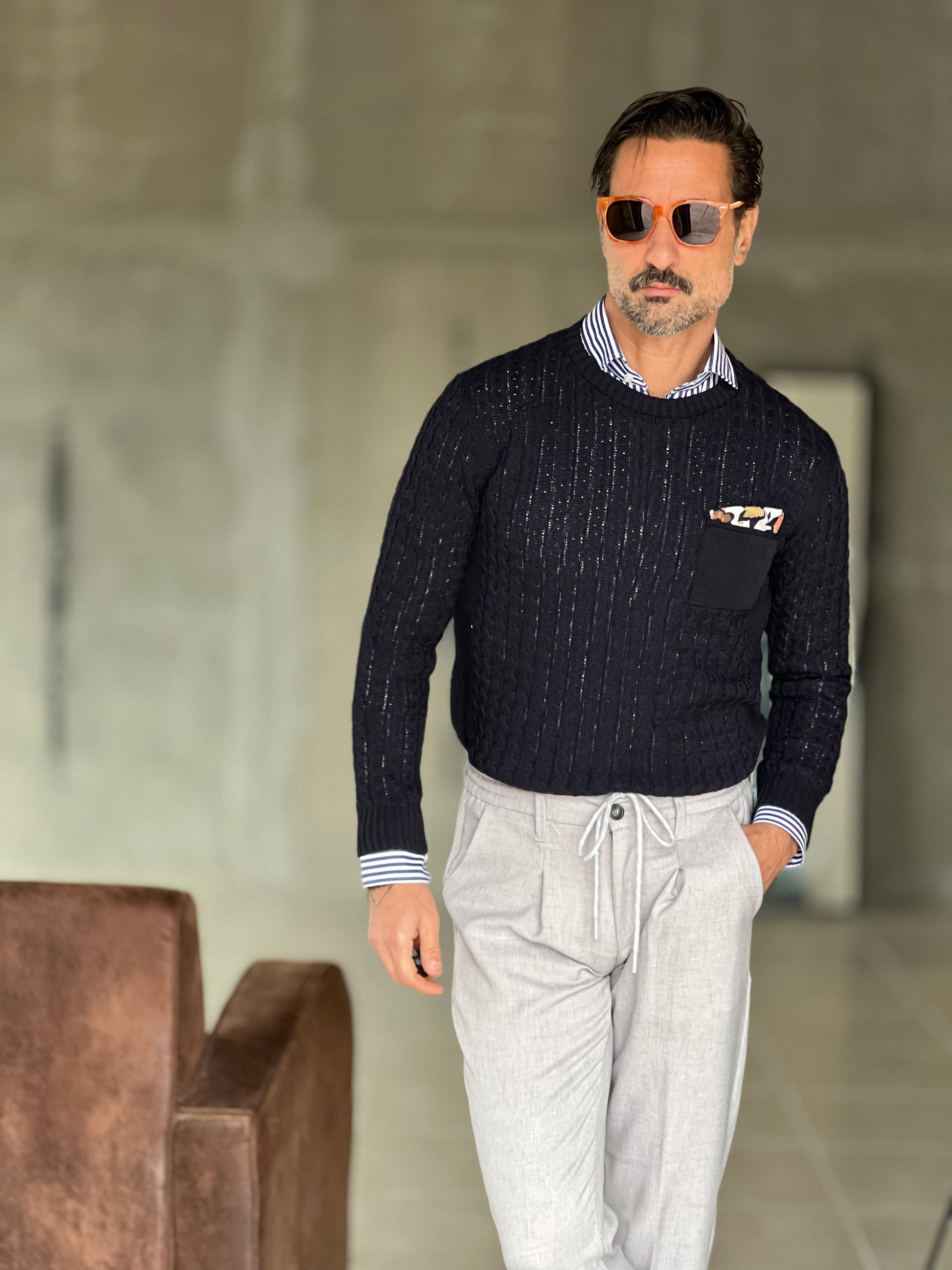 MAGLIA BLU TRECCIA COTONE TASCHINO