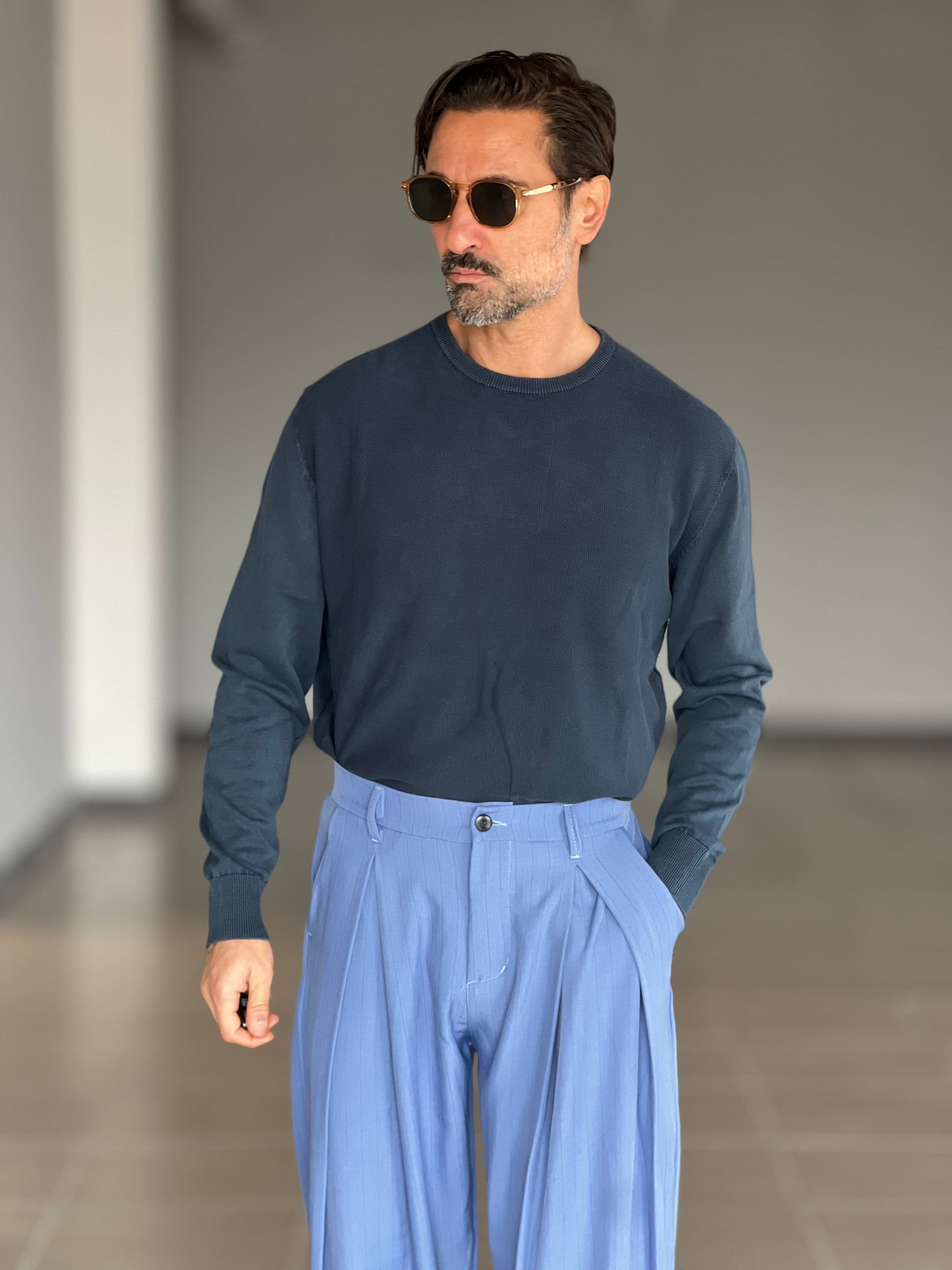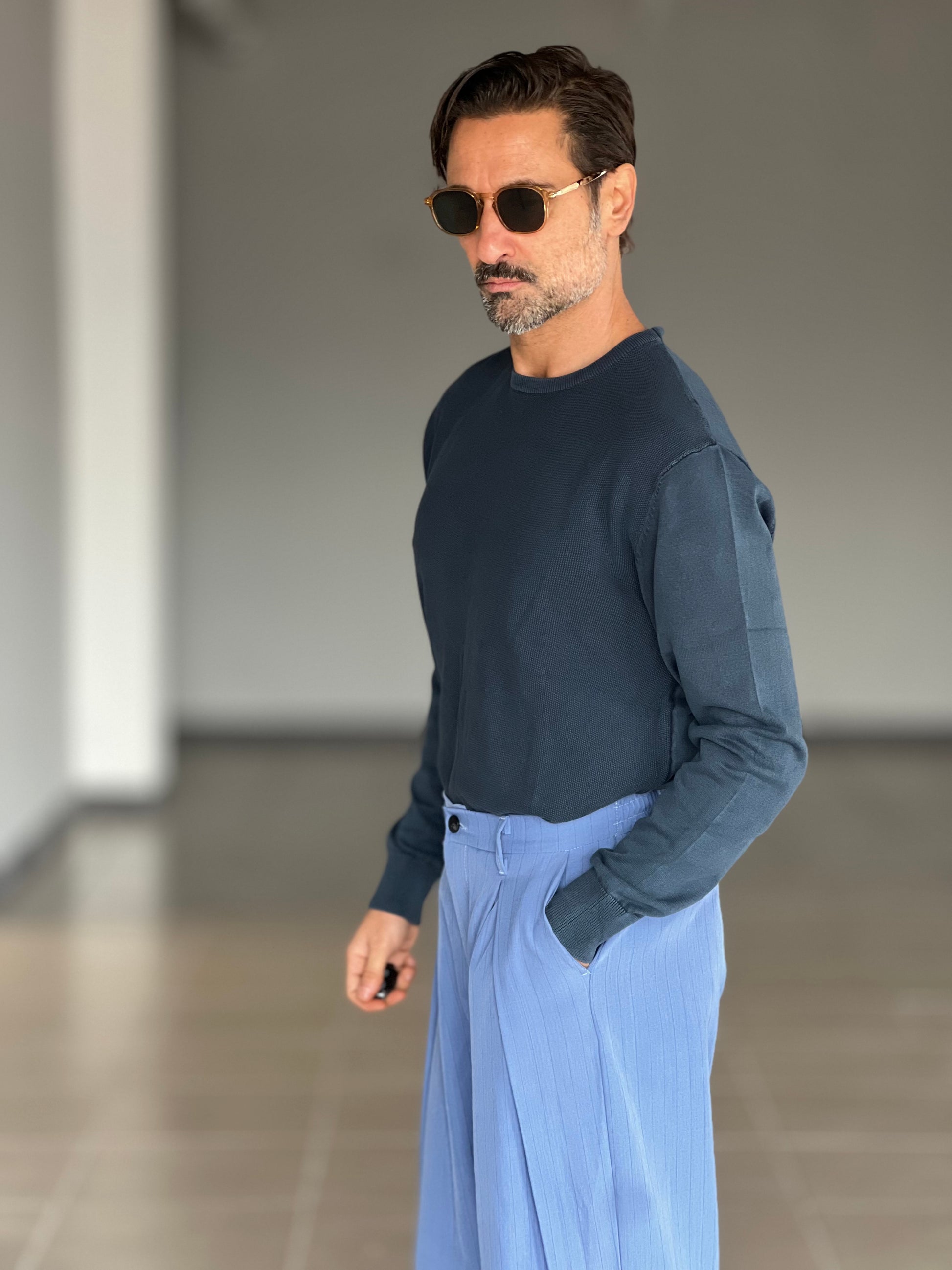 MAGLIA GIRO BLU 2 FILI COTONE NIDO D'APE