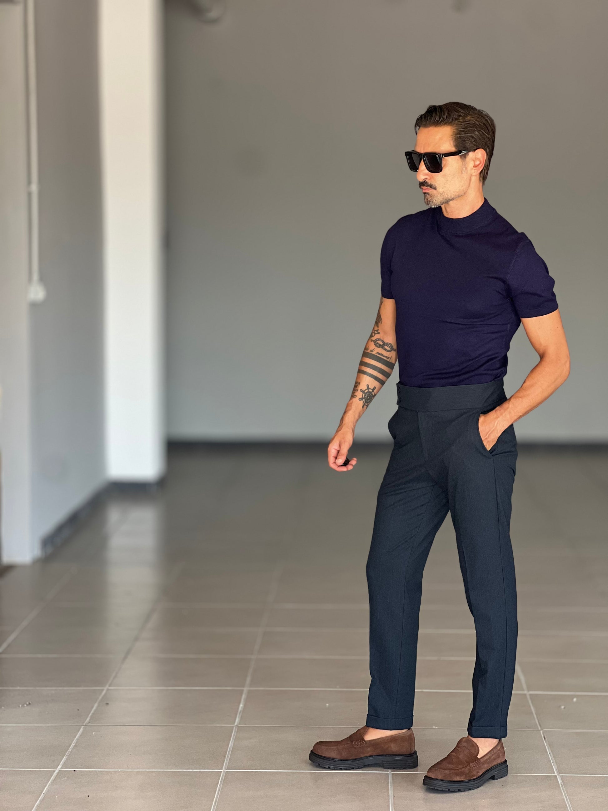 MAGLIA GIRO BLU MEZZO COLLO VISCOSA E MISTI