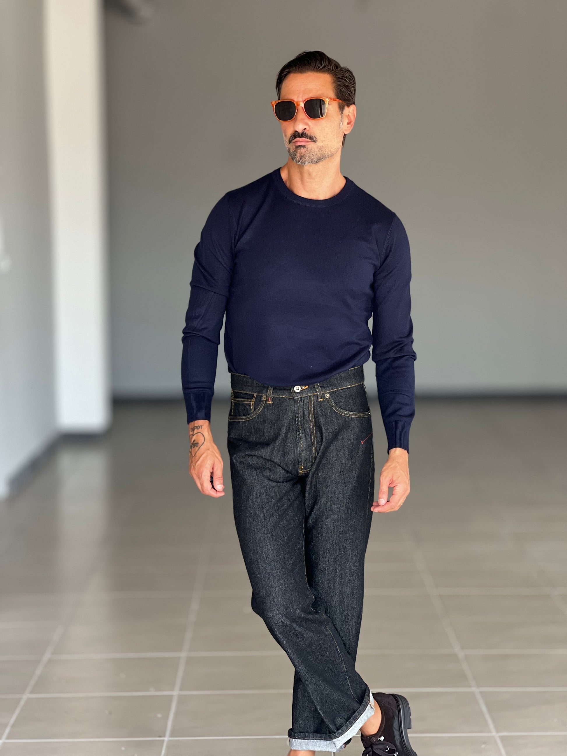 This crew neck sweater in viscose and mixed fabrics is ideal for those seeking a versatile and comfortable garment. The combination of materials ensures softness and breathability, adapting perfectly to different weather conditions. The classic fit and blue color make it a refined choice for both casual and more refined looks. Perfect for those who prefer quality and style without sacrificing comfort.