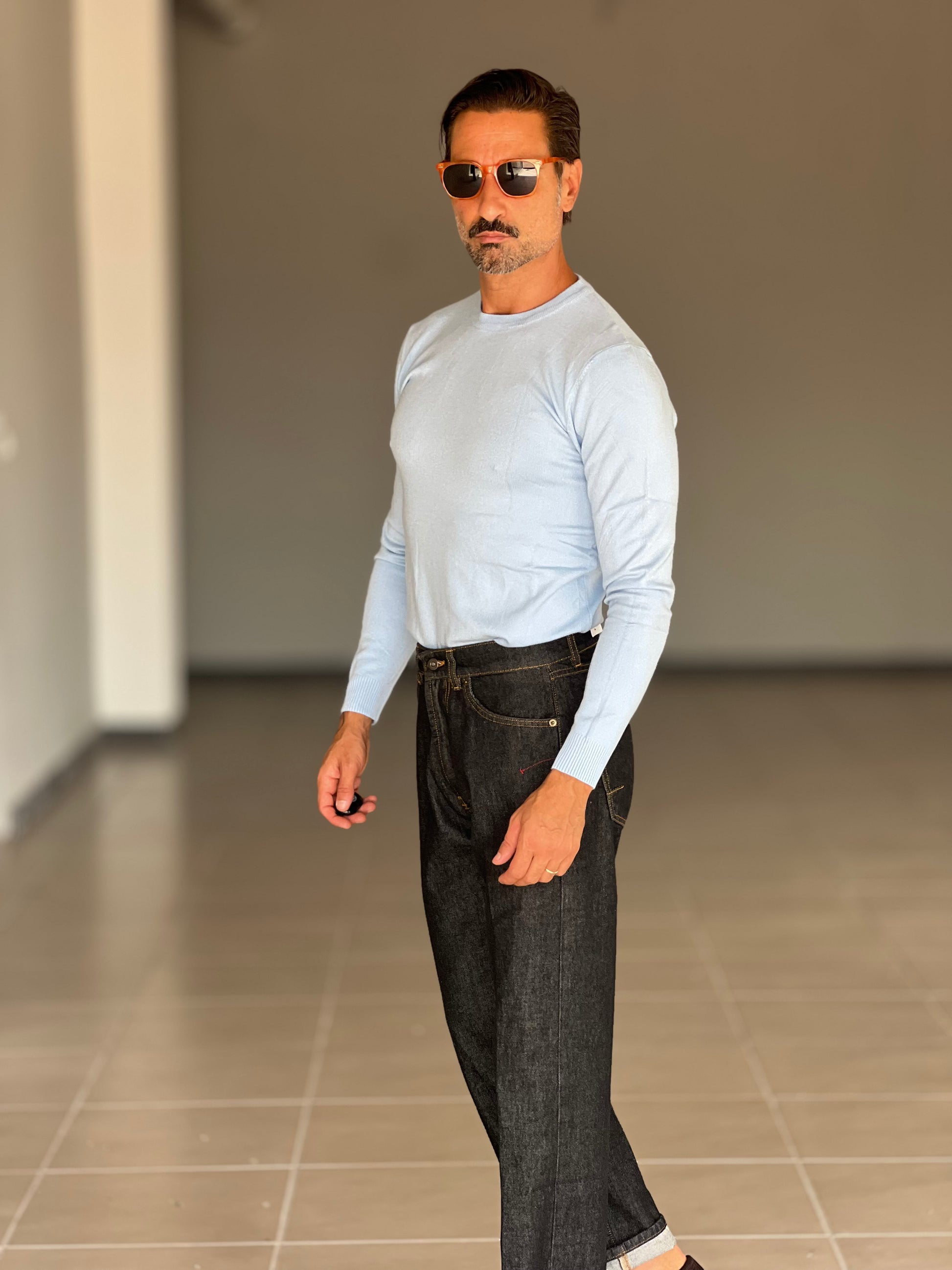 MAGLIA GIRO CELESTE VISCOSA E MISTI