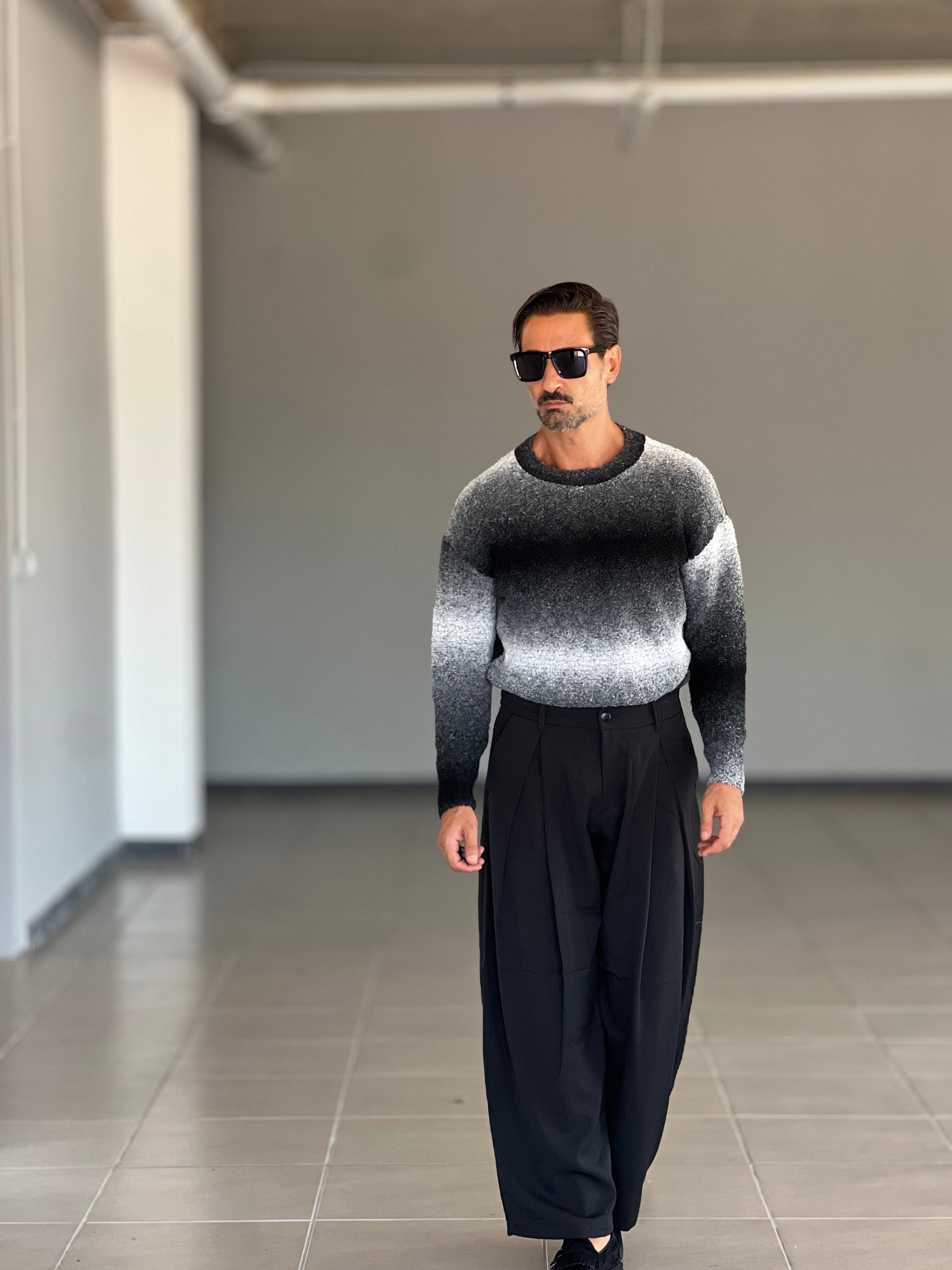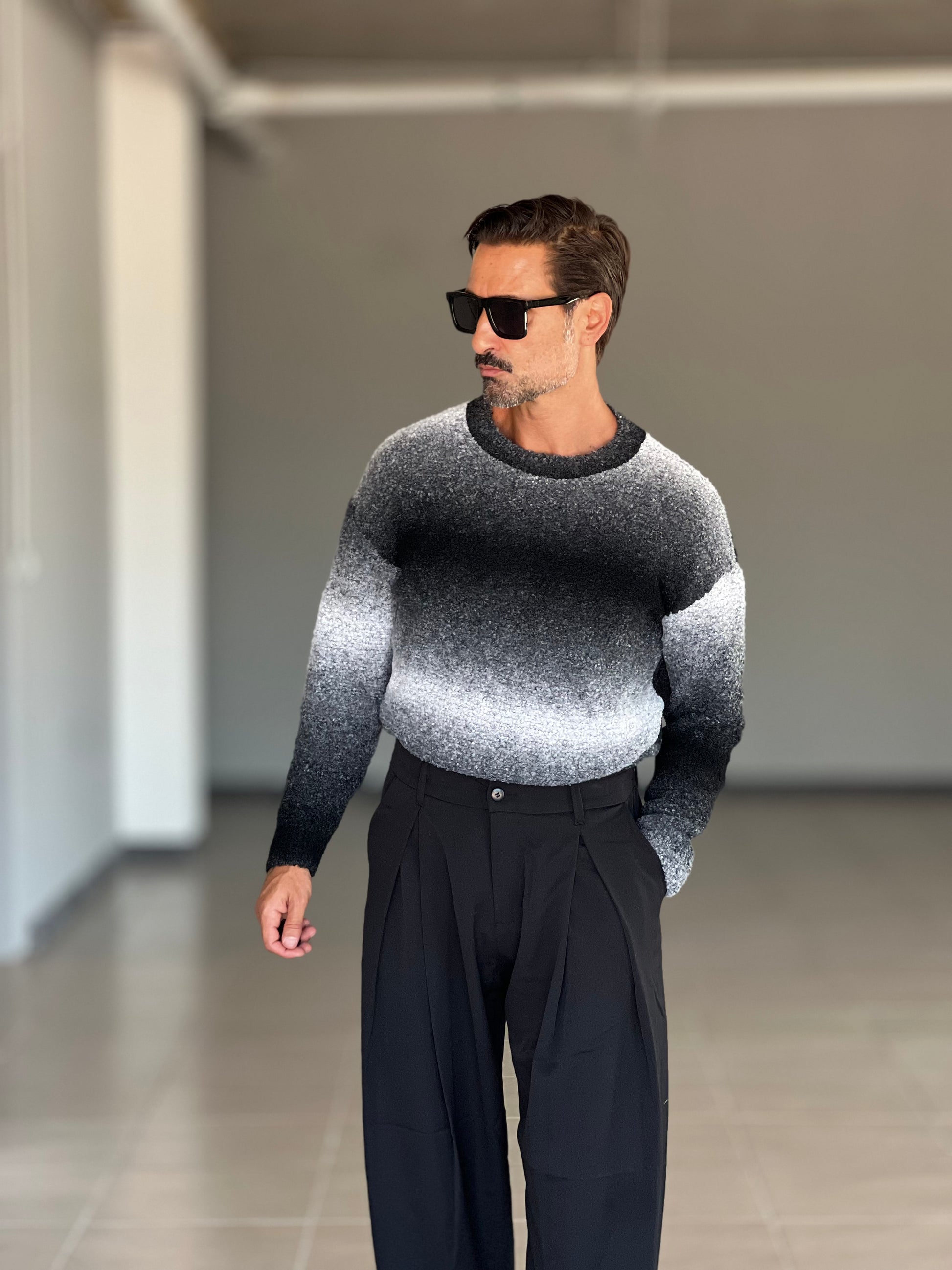 MAGLIA GIRO DEGRADE' NERA E PANNA