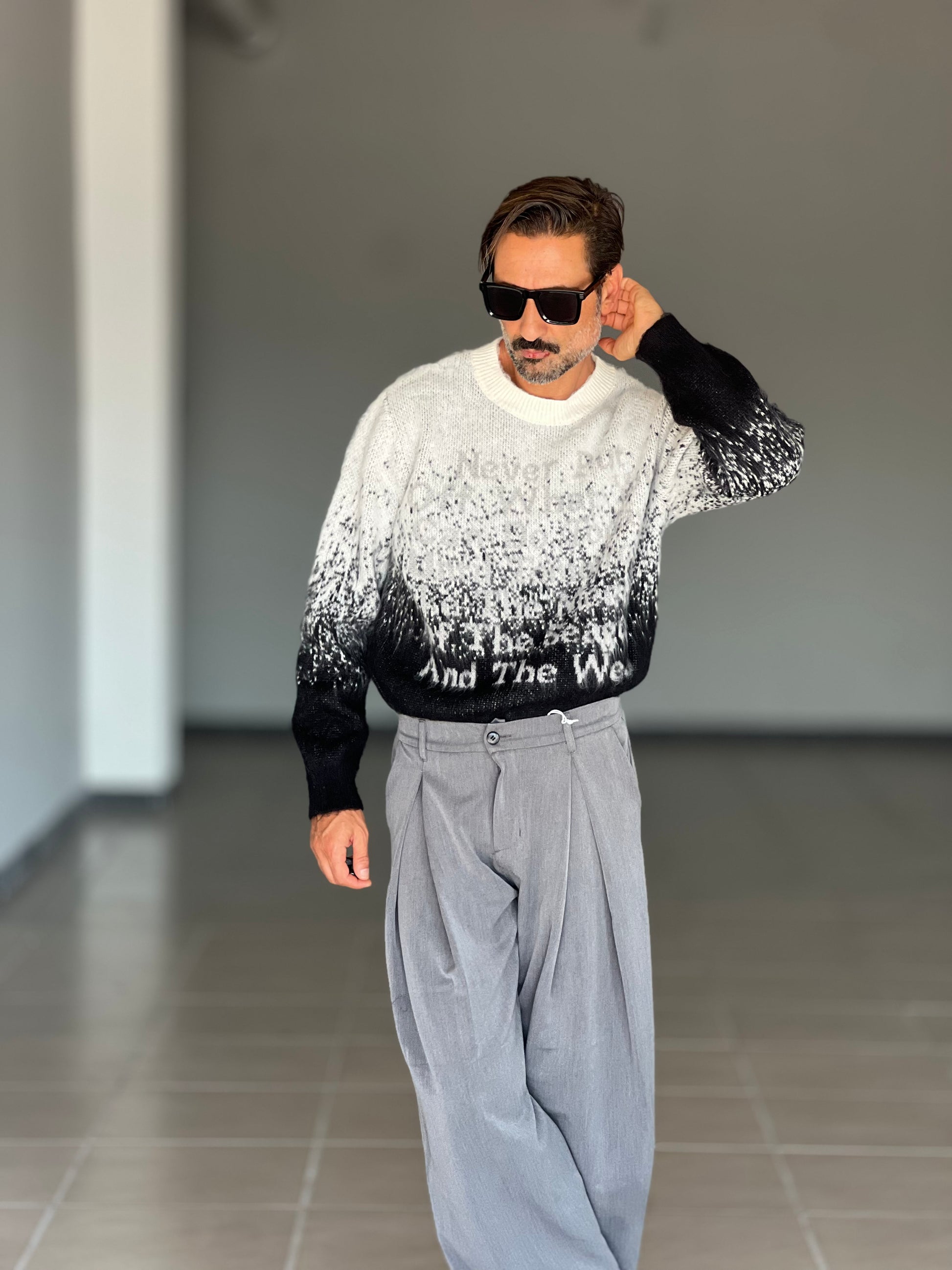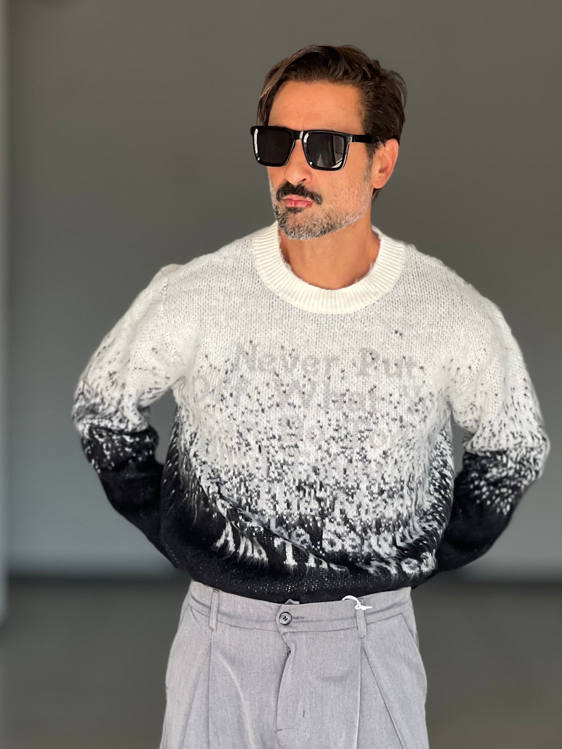 MAGLIA GIRO DEGRADE' PANNA SCRITTA