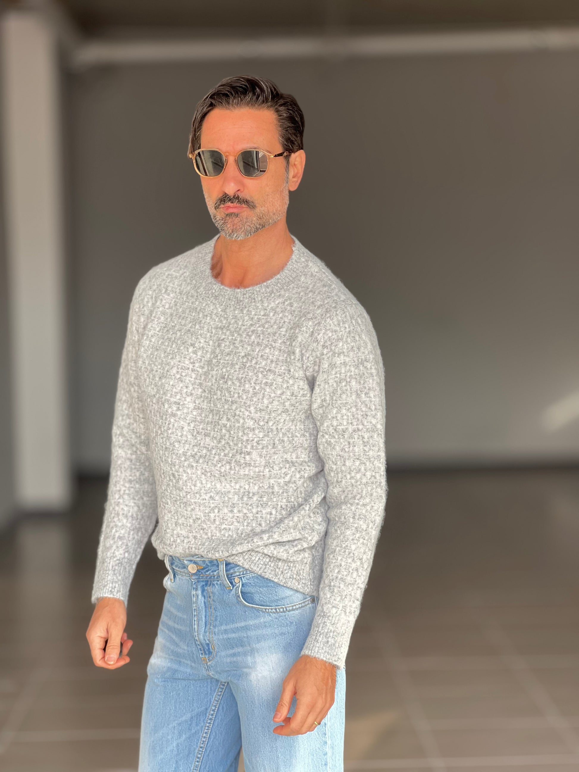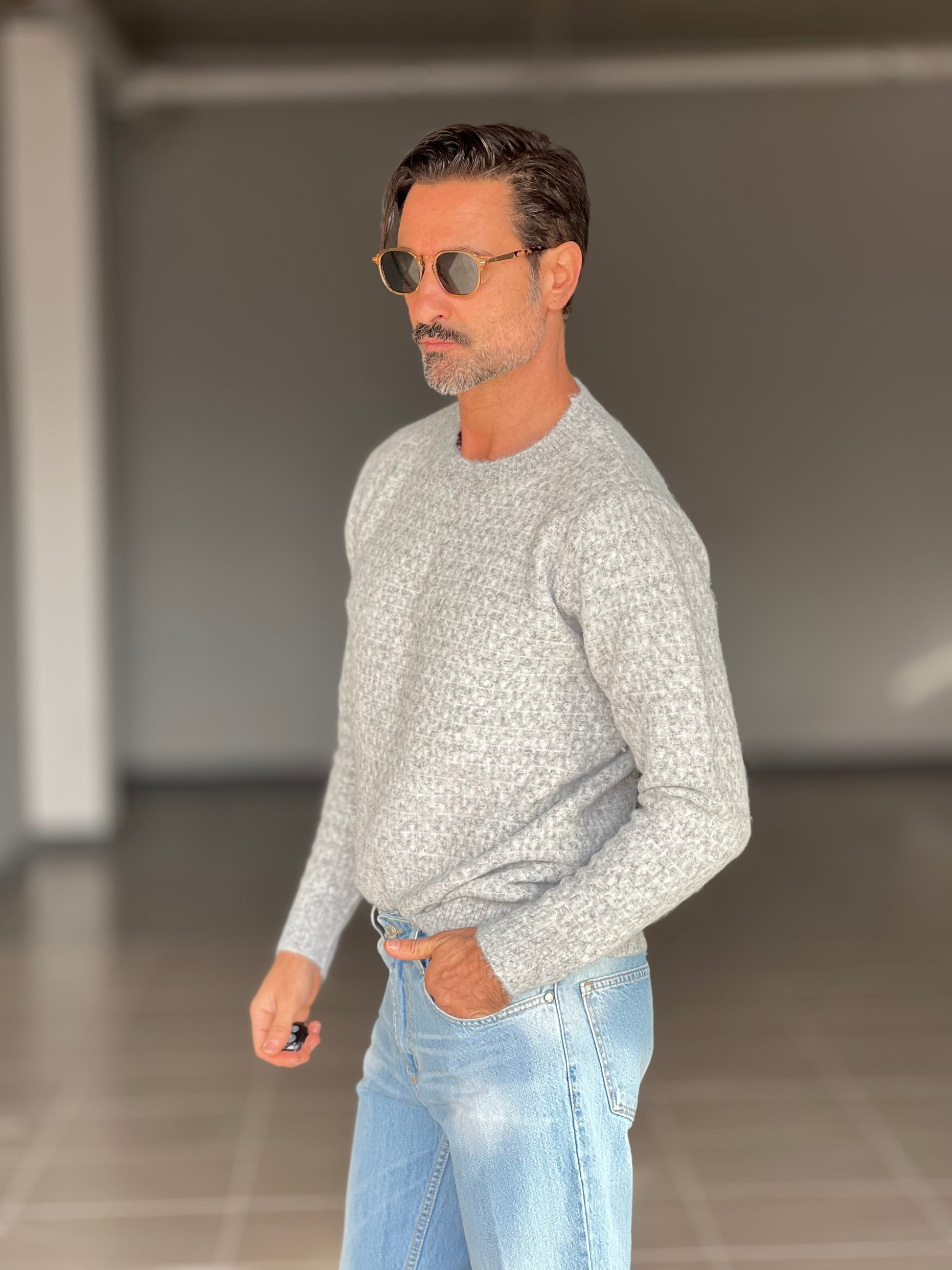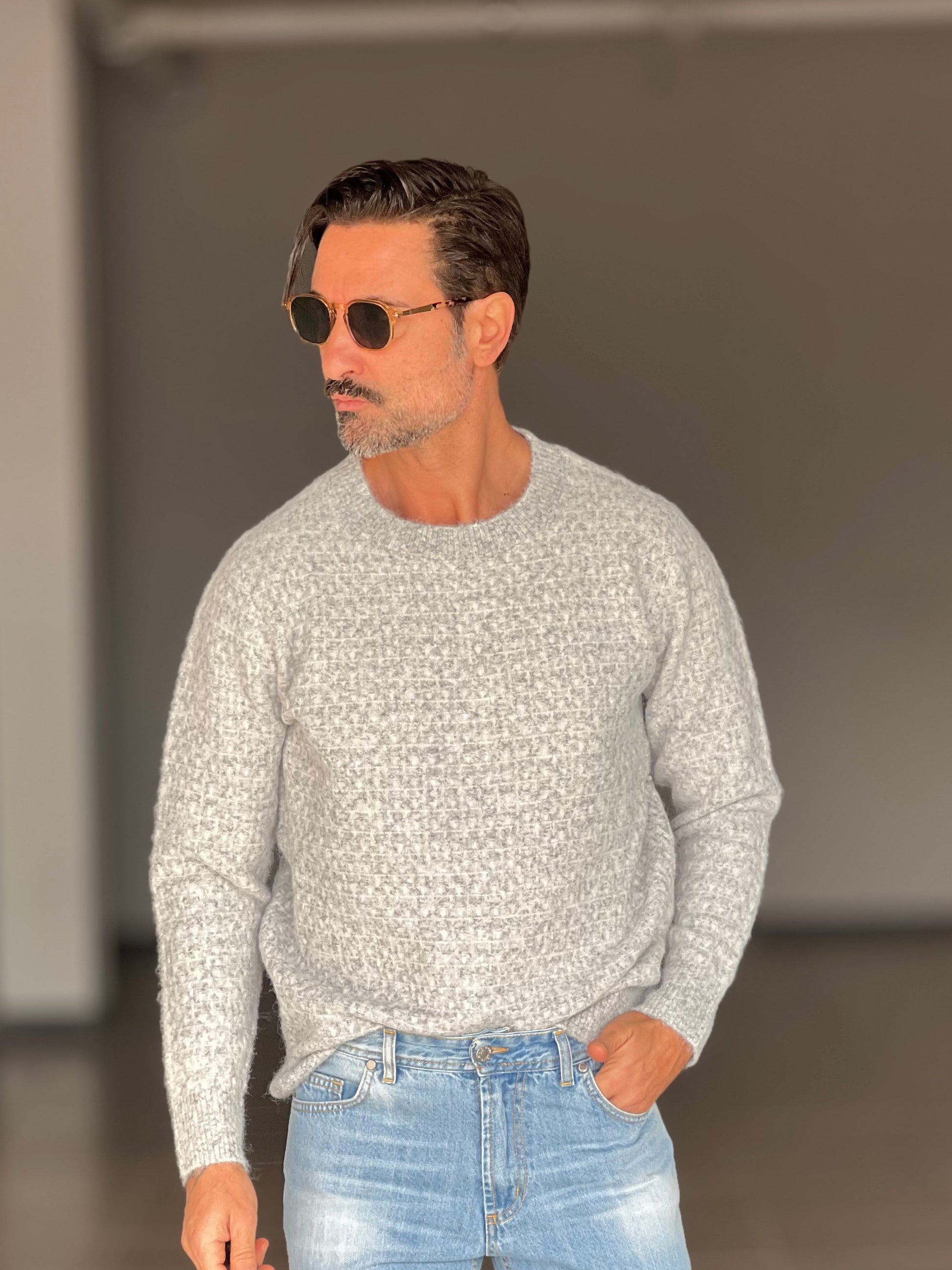 MAGLIA GIRO GRIGIA MICROFANTASIA MISTO LANA