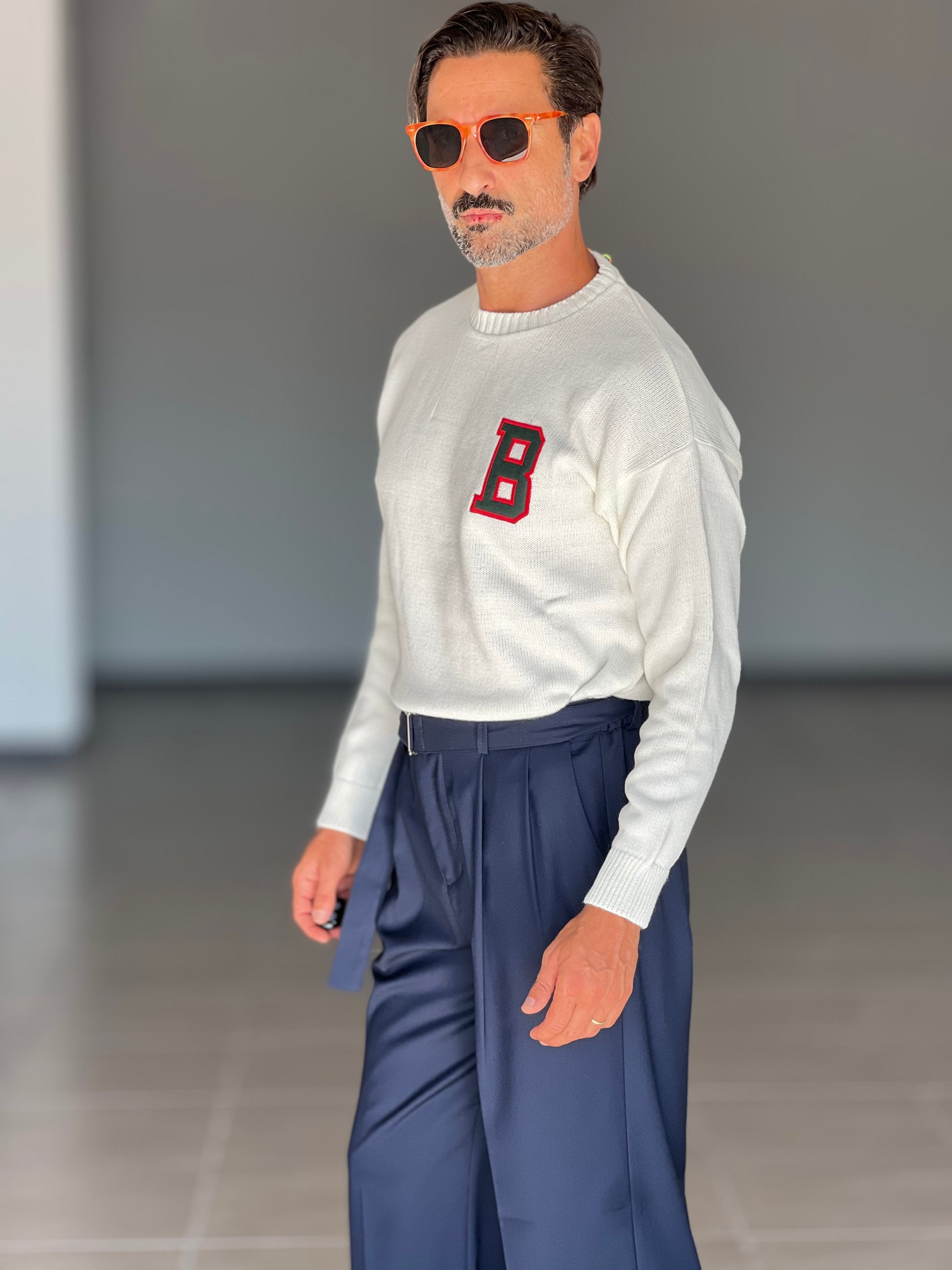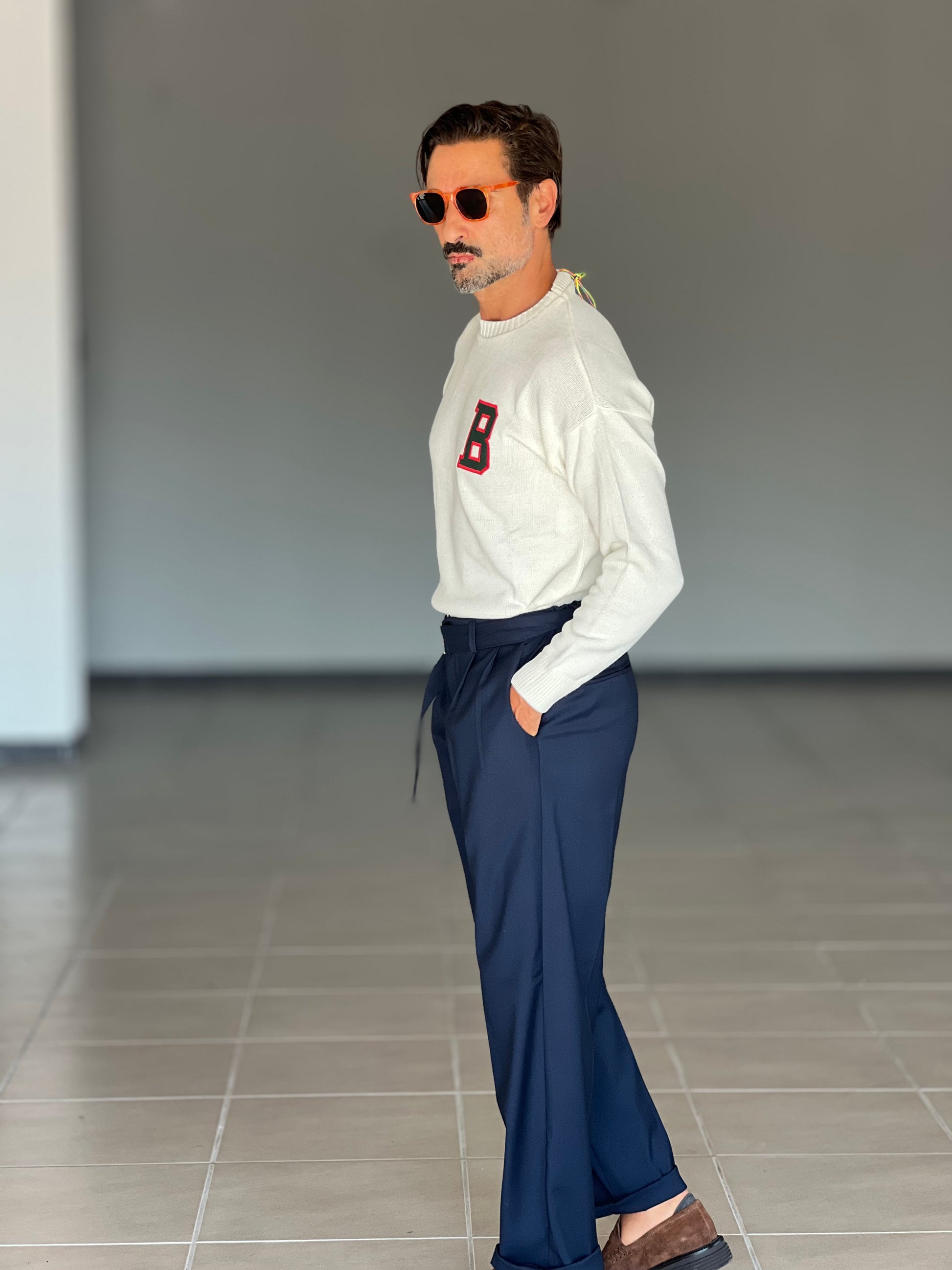 This crew neck sweater in viscose and mixed fabrics is ideal for those seeking a versatile and comfortable garment. The combination of materials ensures softness and breathability, adapting perfectly to different weather conditions. The classic fit and blue color make it a refined choice for both casual and more refined looks. Perfect for those who prefer quality and style without sacrificing comfort.