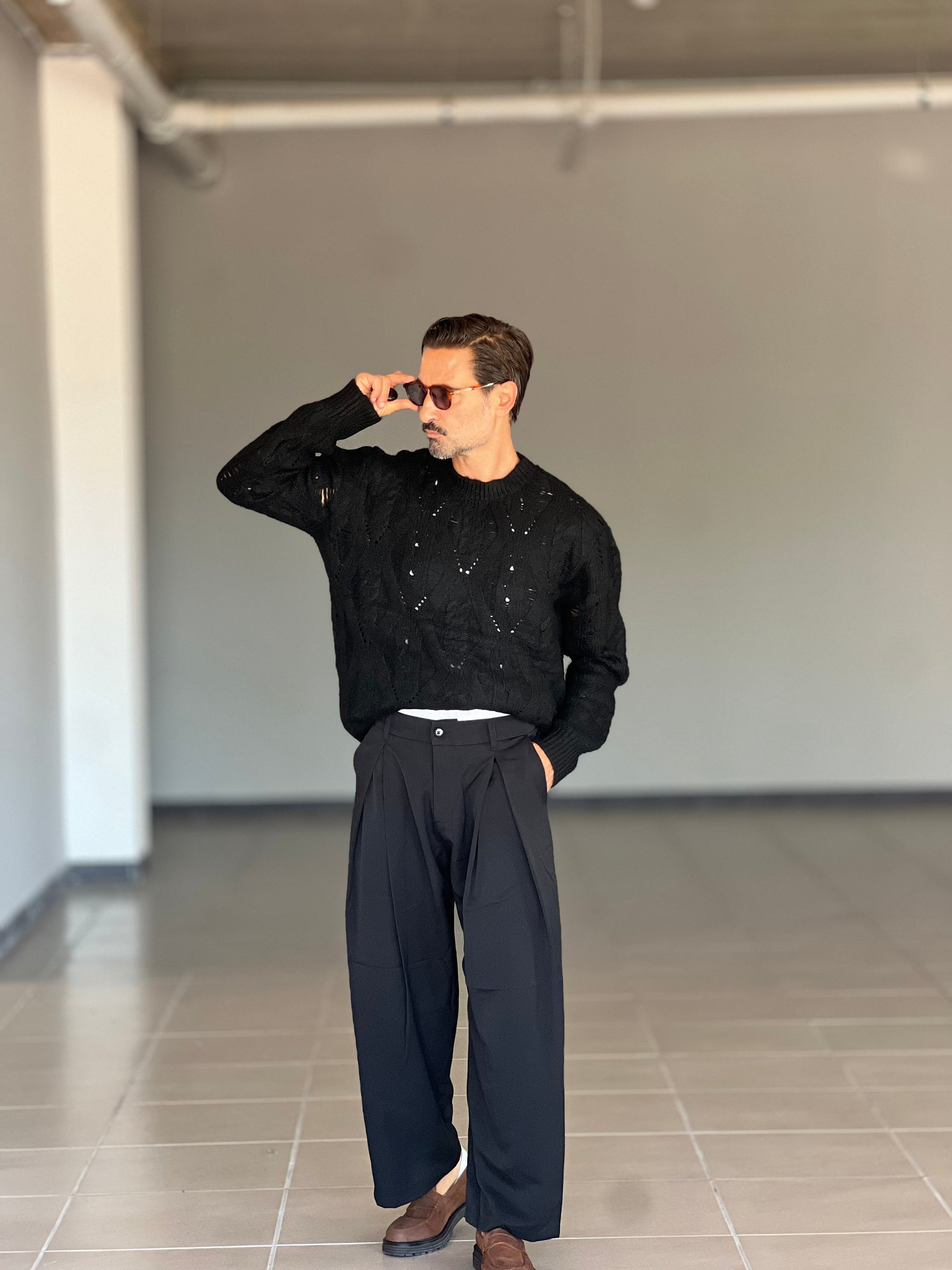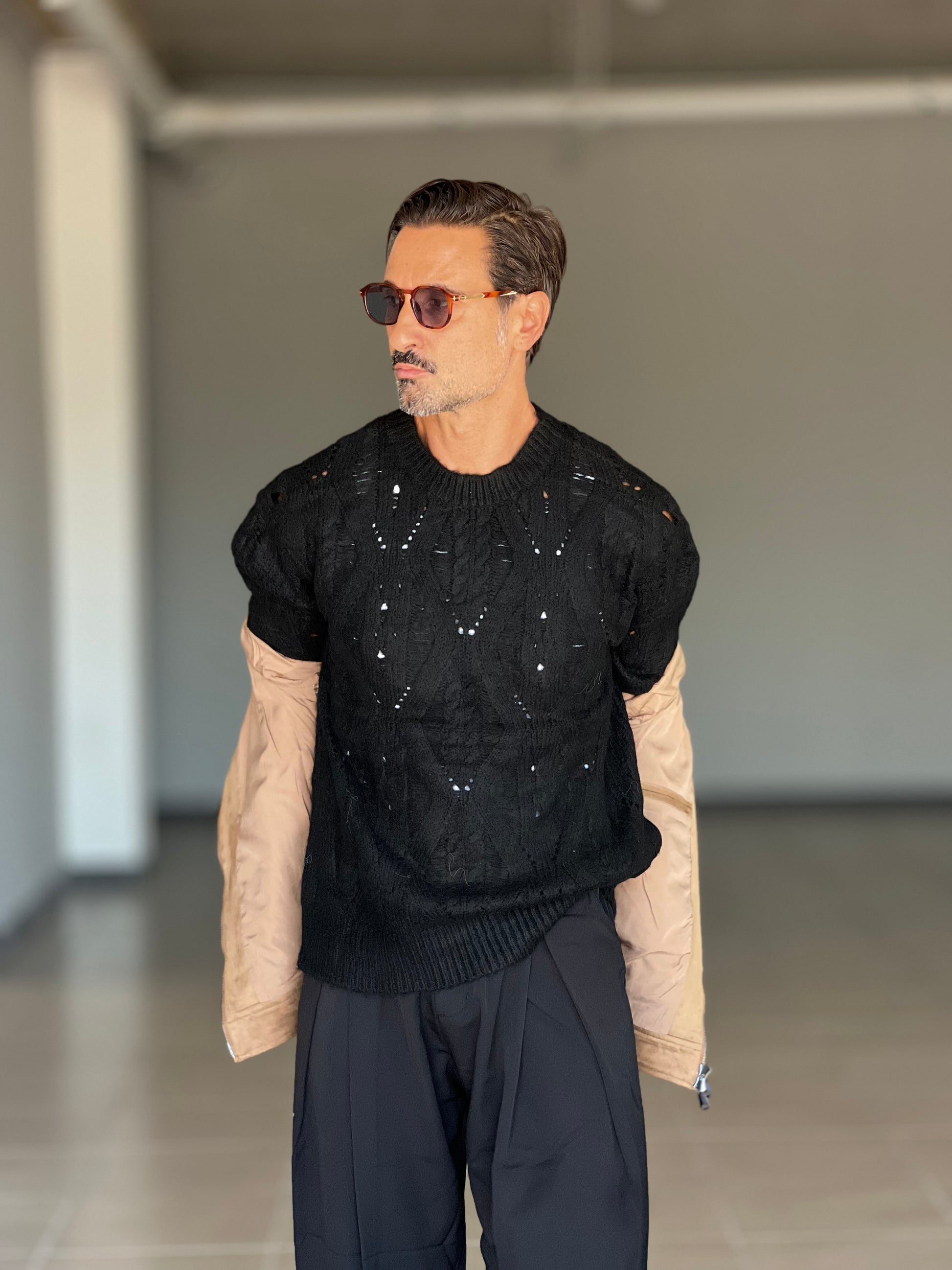 Questo girocollo presenta un esclusivo motivo strappato che aggiunge un tocco audace e contemporaneo alla maglieria classica. Realizzato pensando sia allo stile che al comfort, offre un'opzione versatile per il layering, adatta ai guardaroba moderni che cercano un look audace ma raffinato. I dettagli consumati donano carattere senza compromettere la vestibilità, rendendolo ideale per chi è attento alla moda e desidera esprimere la propria personalità attraverso il proprio abbigliamento.