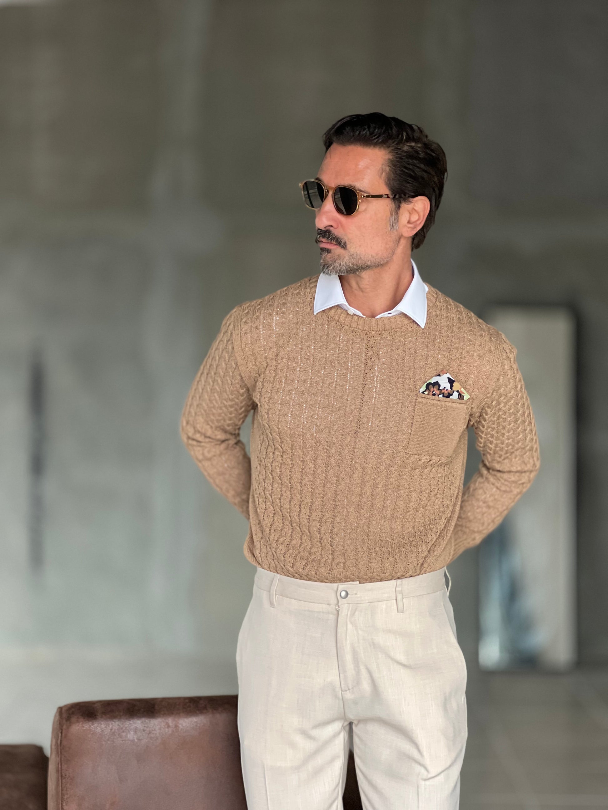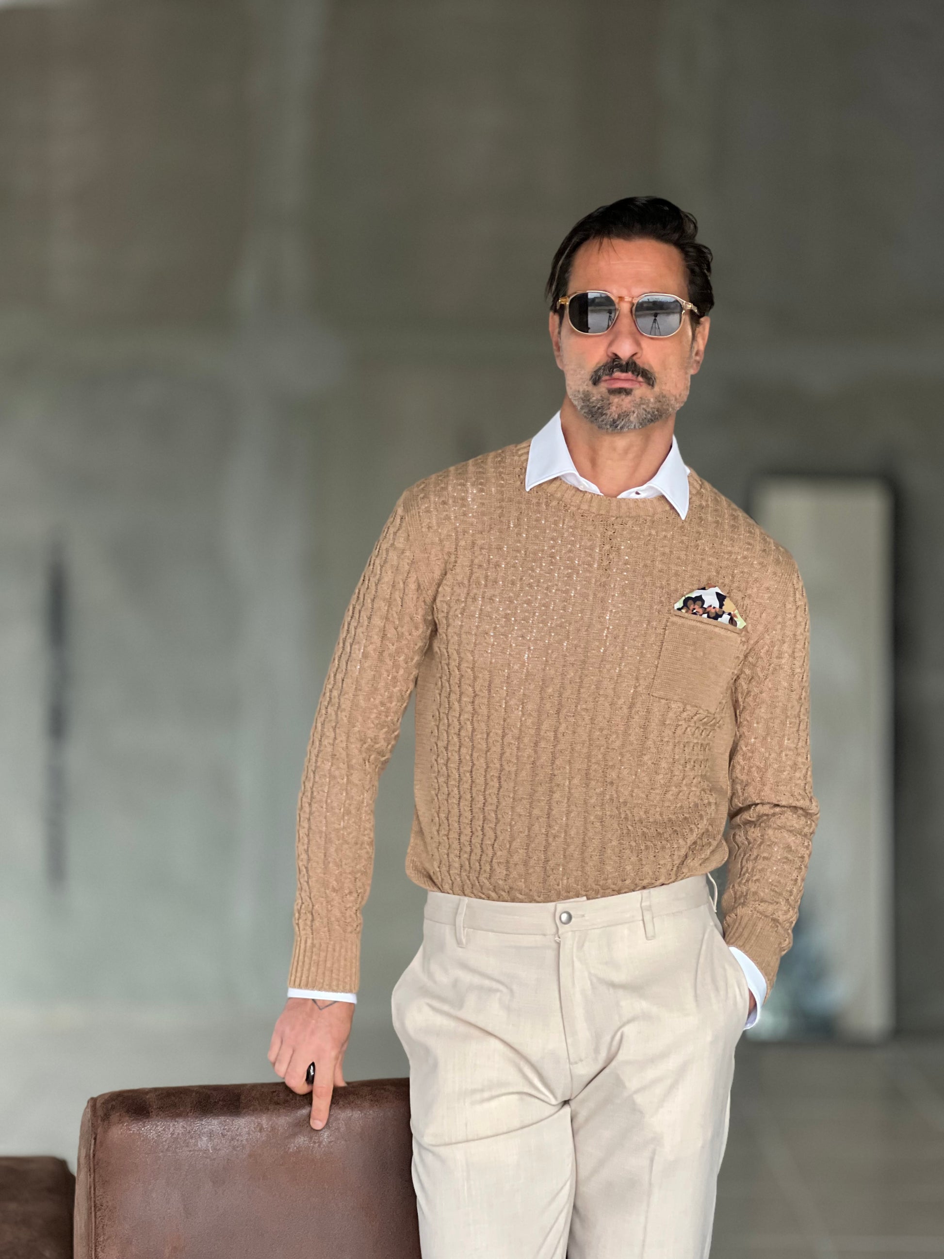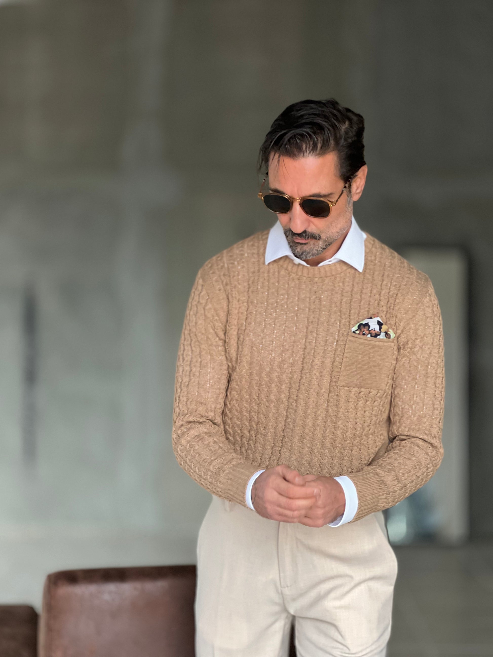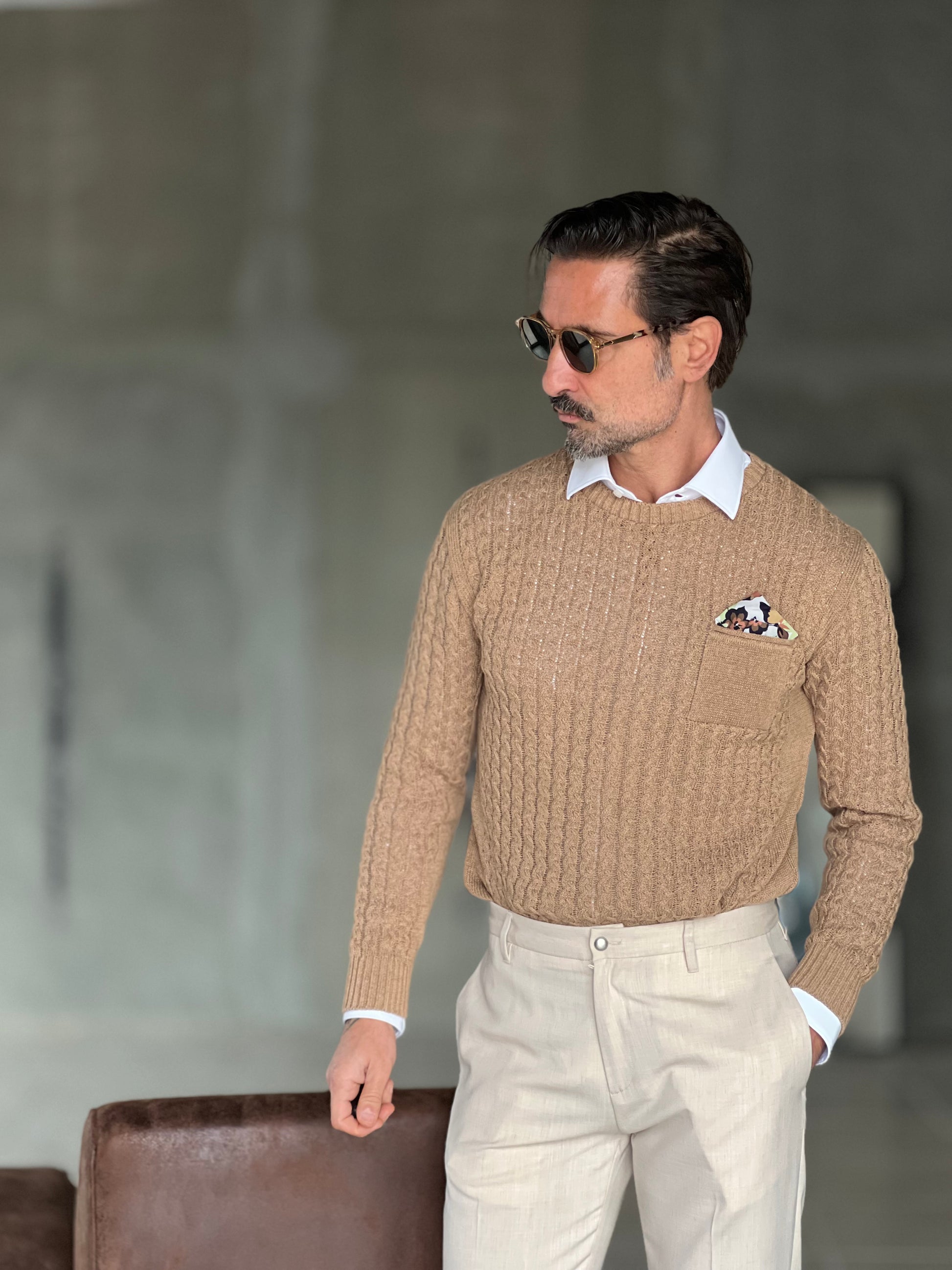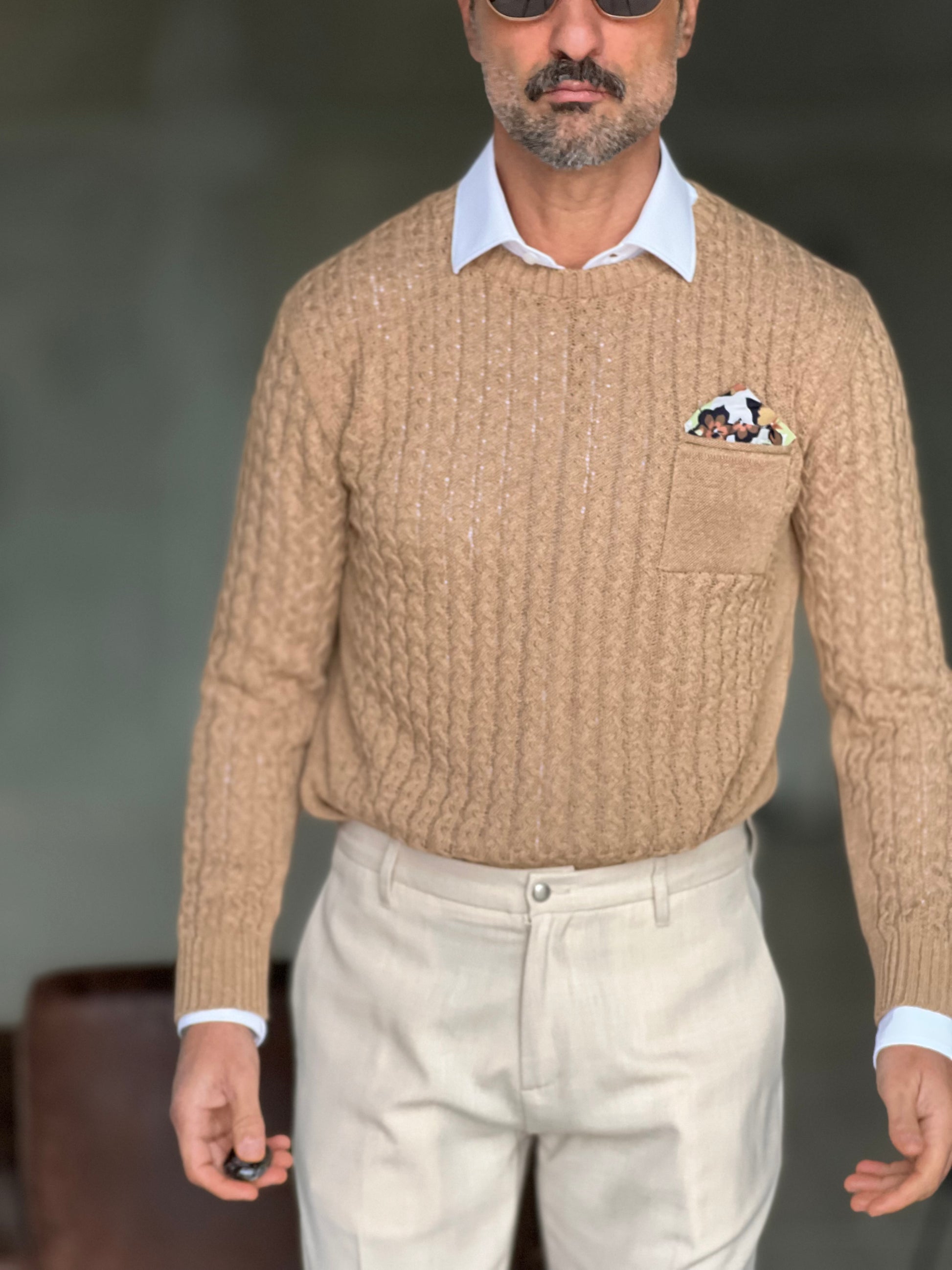 MAGLIA TORTORA TRECCIA COTONE TASCHINO