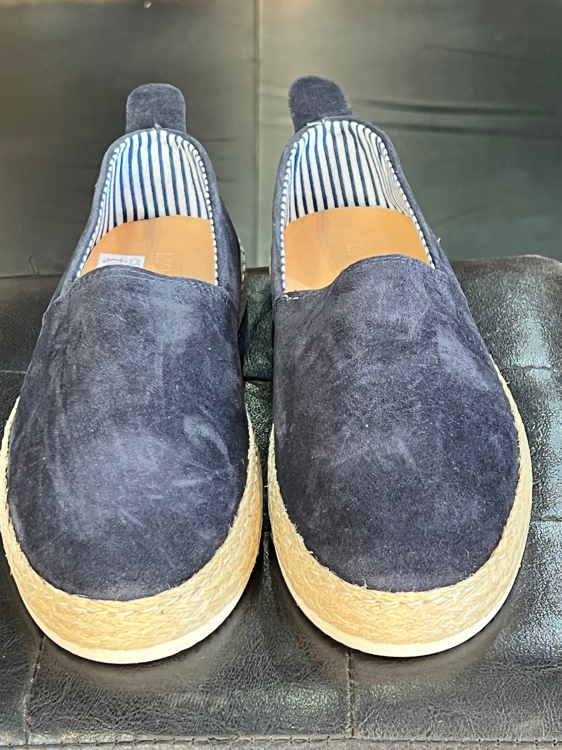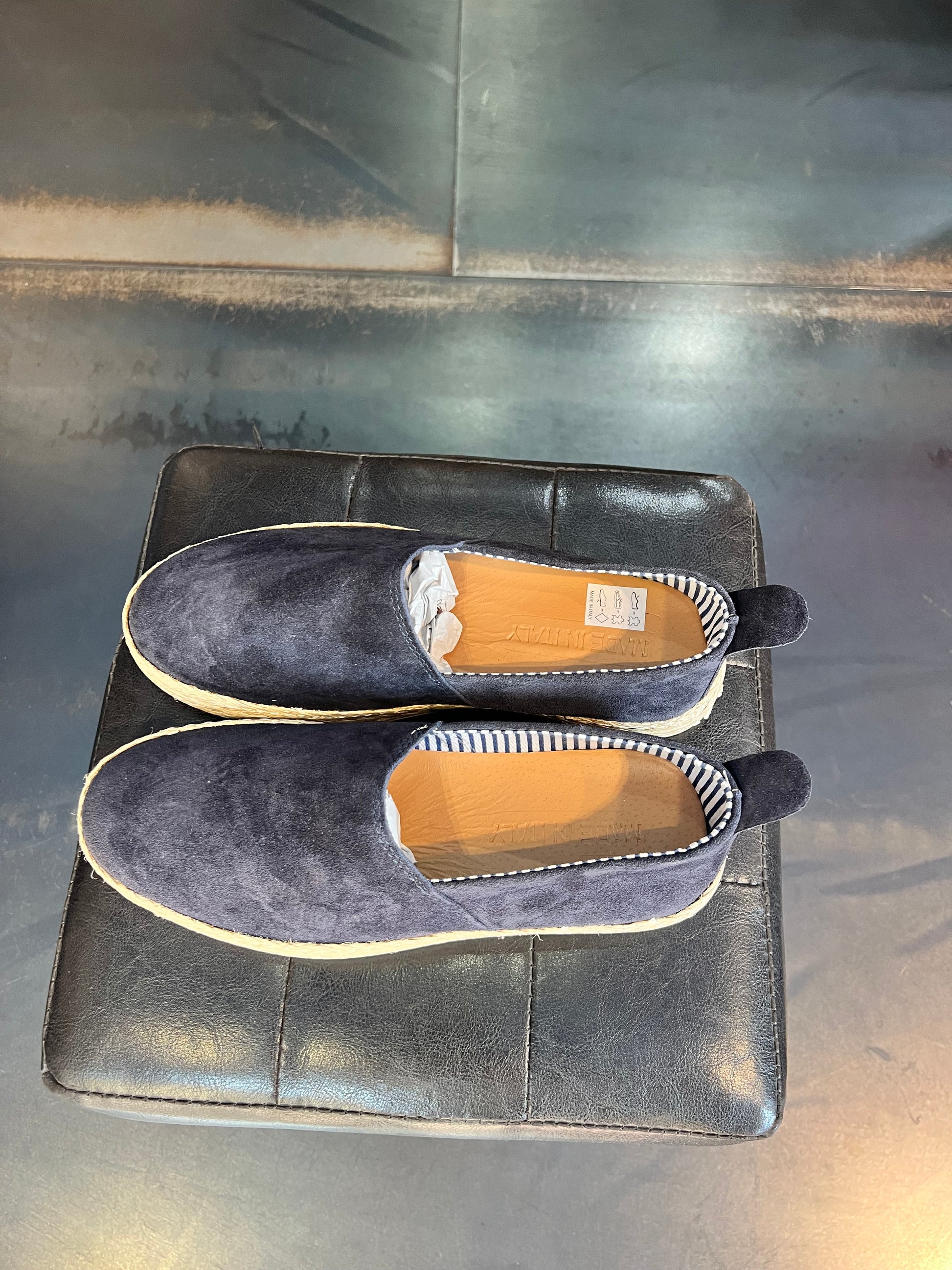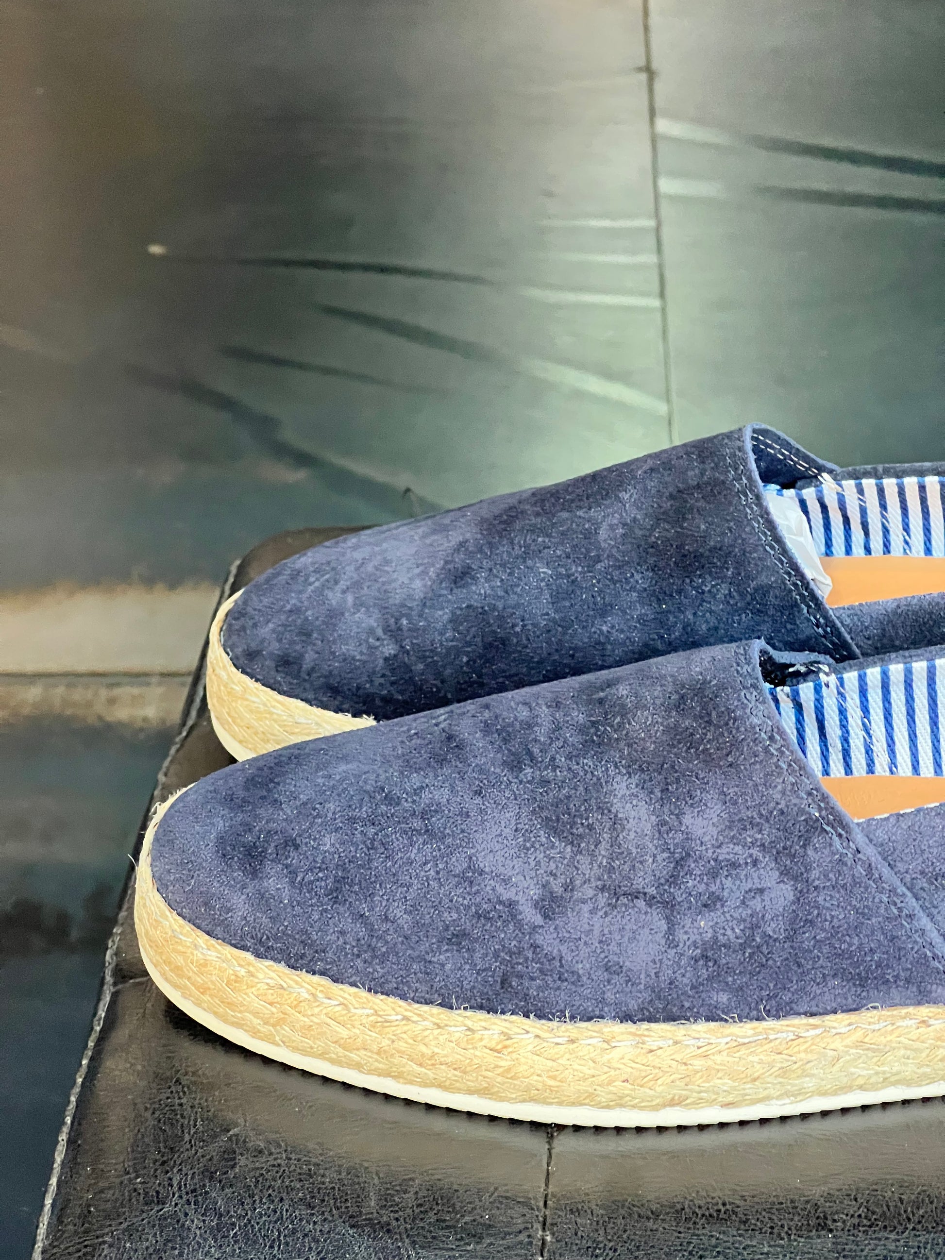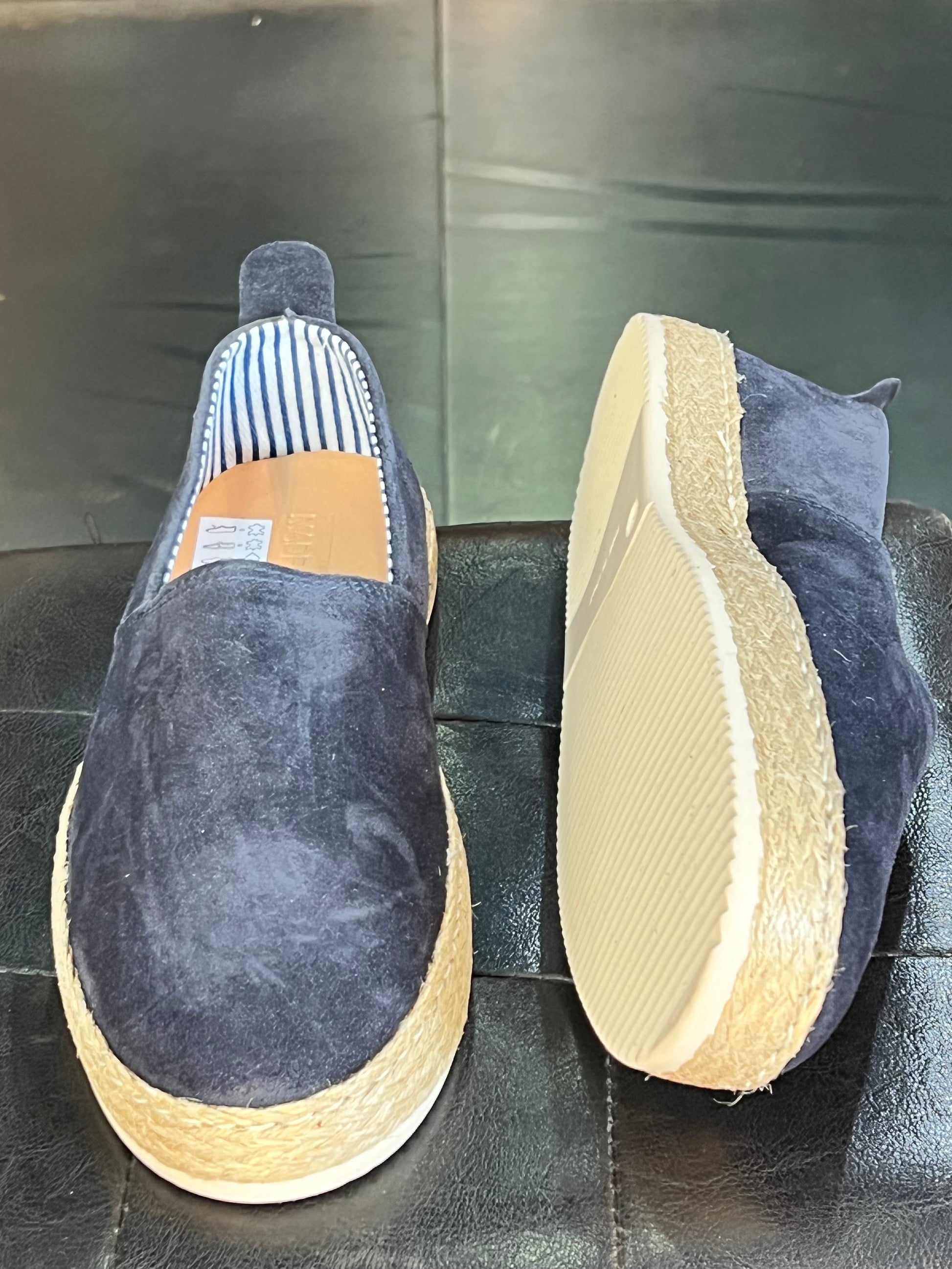 MOCASSINO CAMOSCIO BLU FONDO PAGLIA E GOMMA