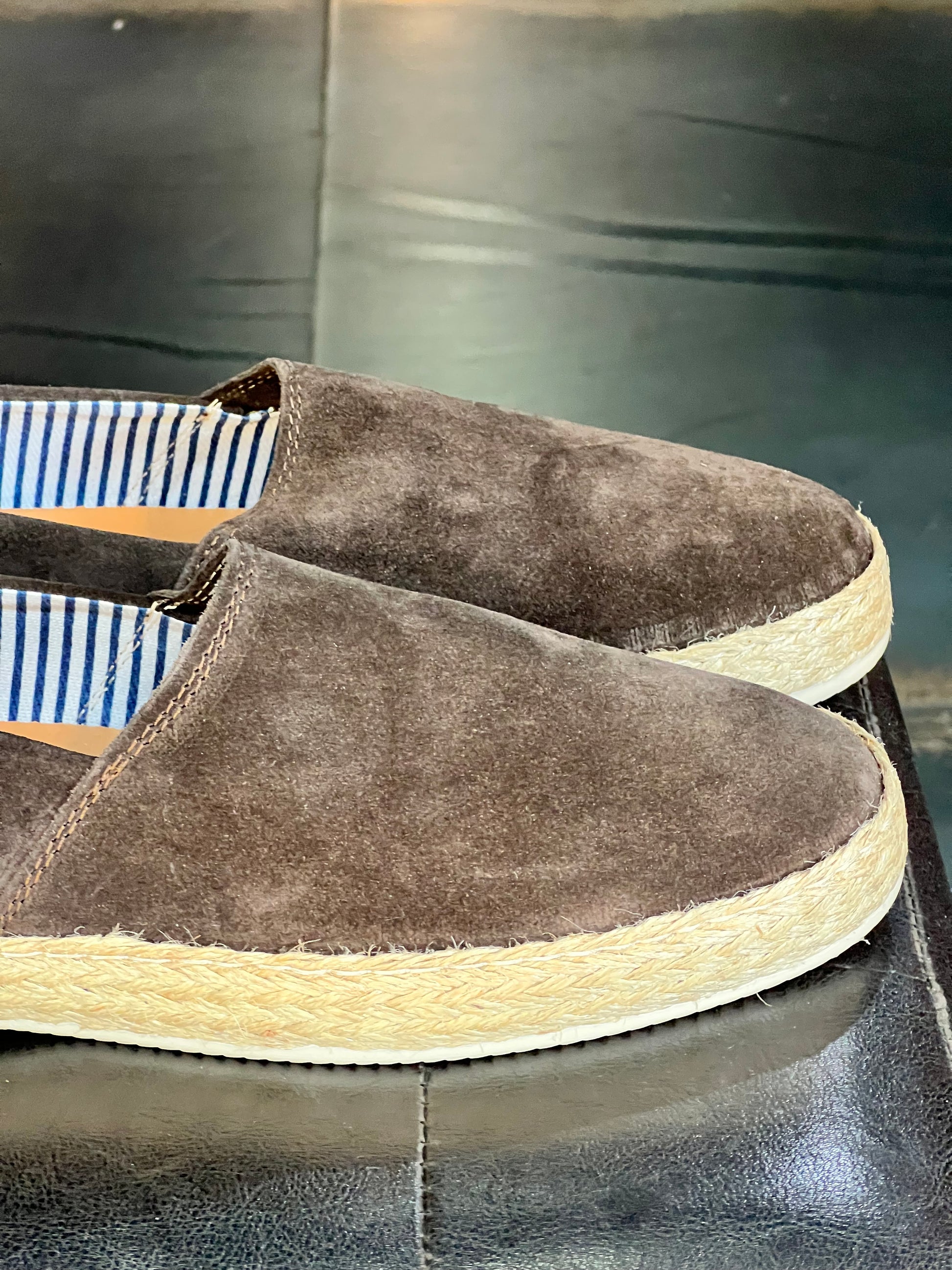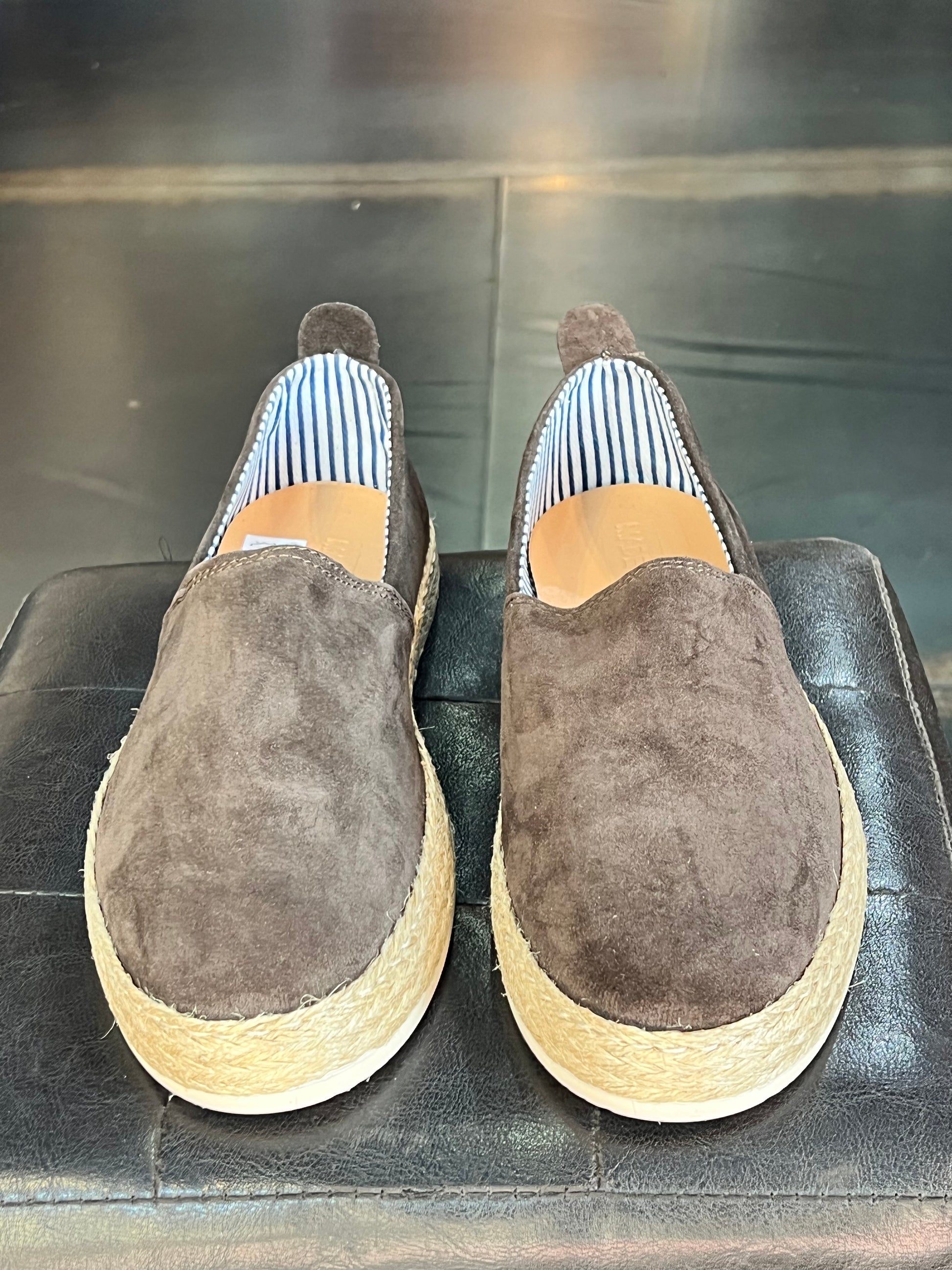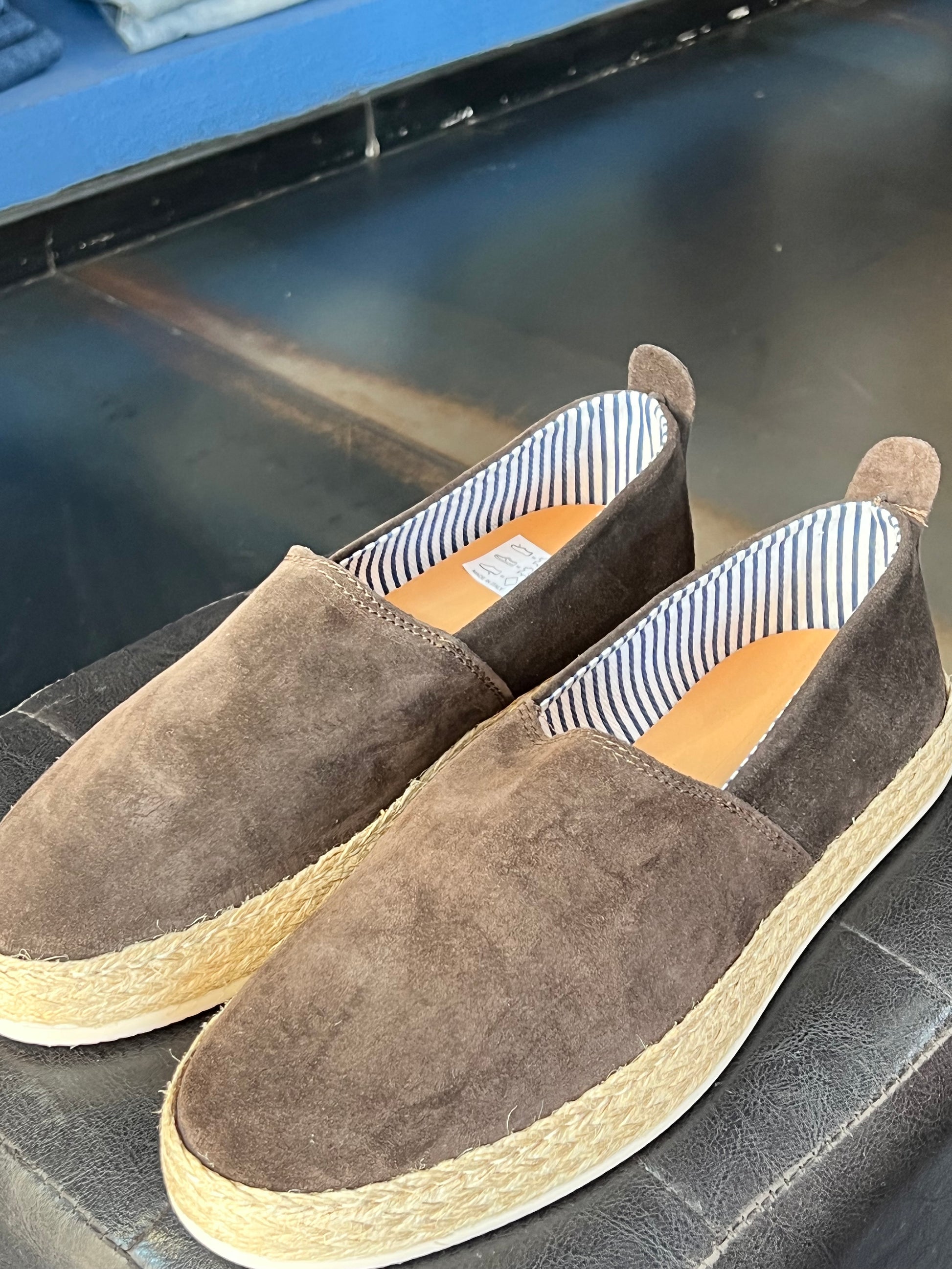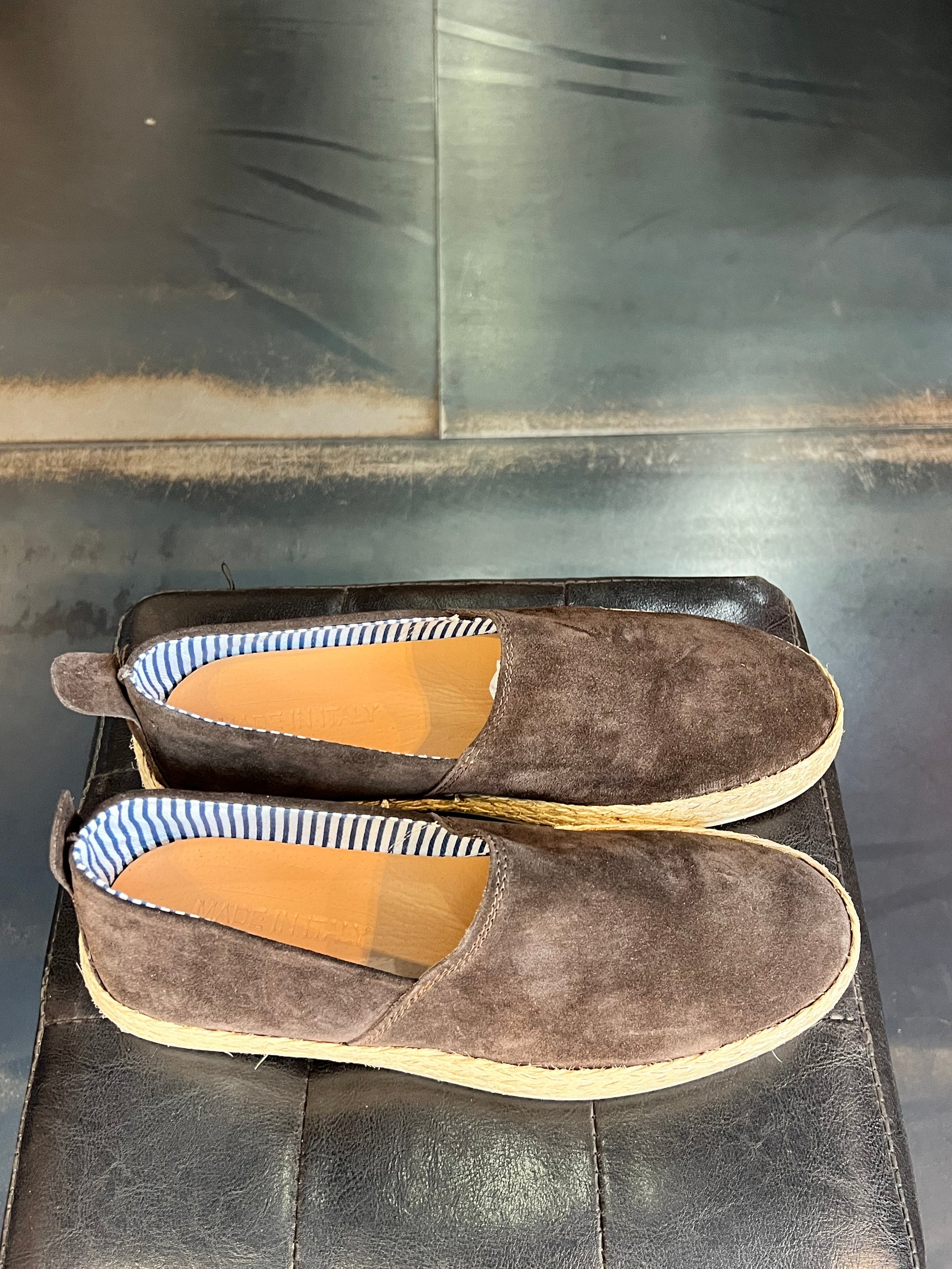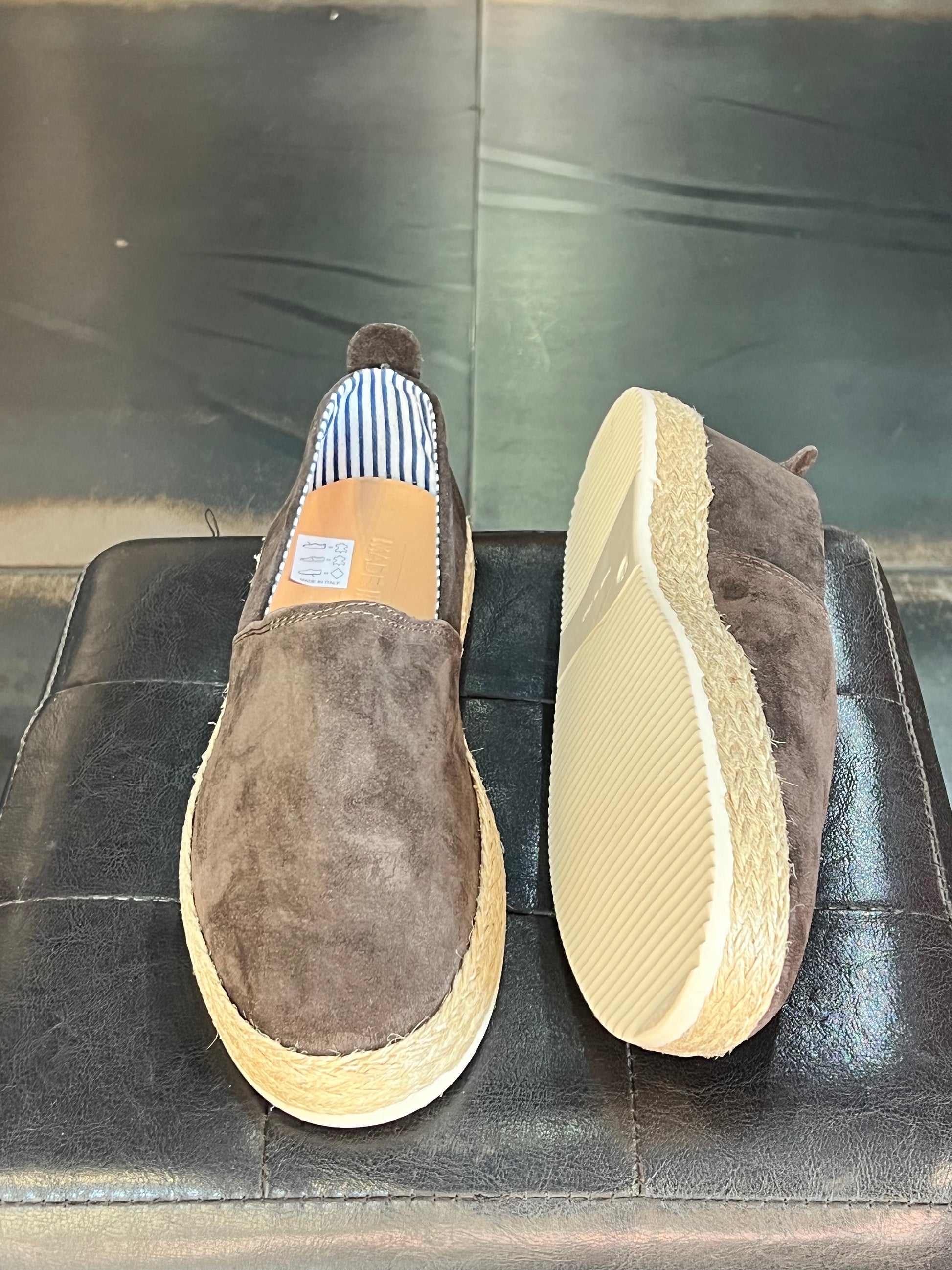 MOCASSINO CAMOSCIO MORO FONDO PAGLIA E GOMMA