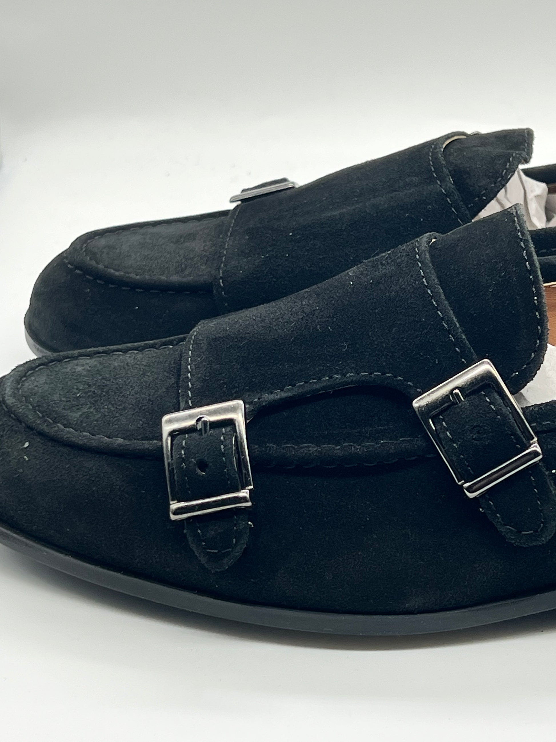 MOCASSINO CAMOSCIO NERO DOPPIAFIBBIA FONDO GOMMA