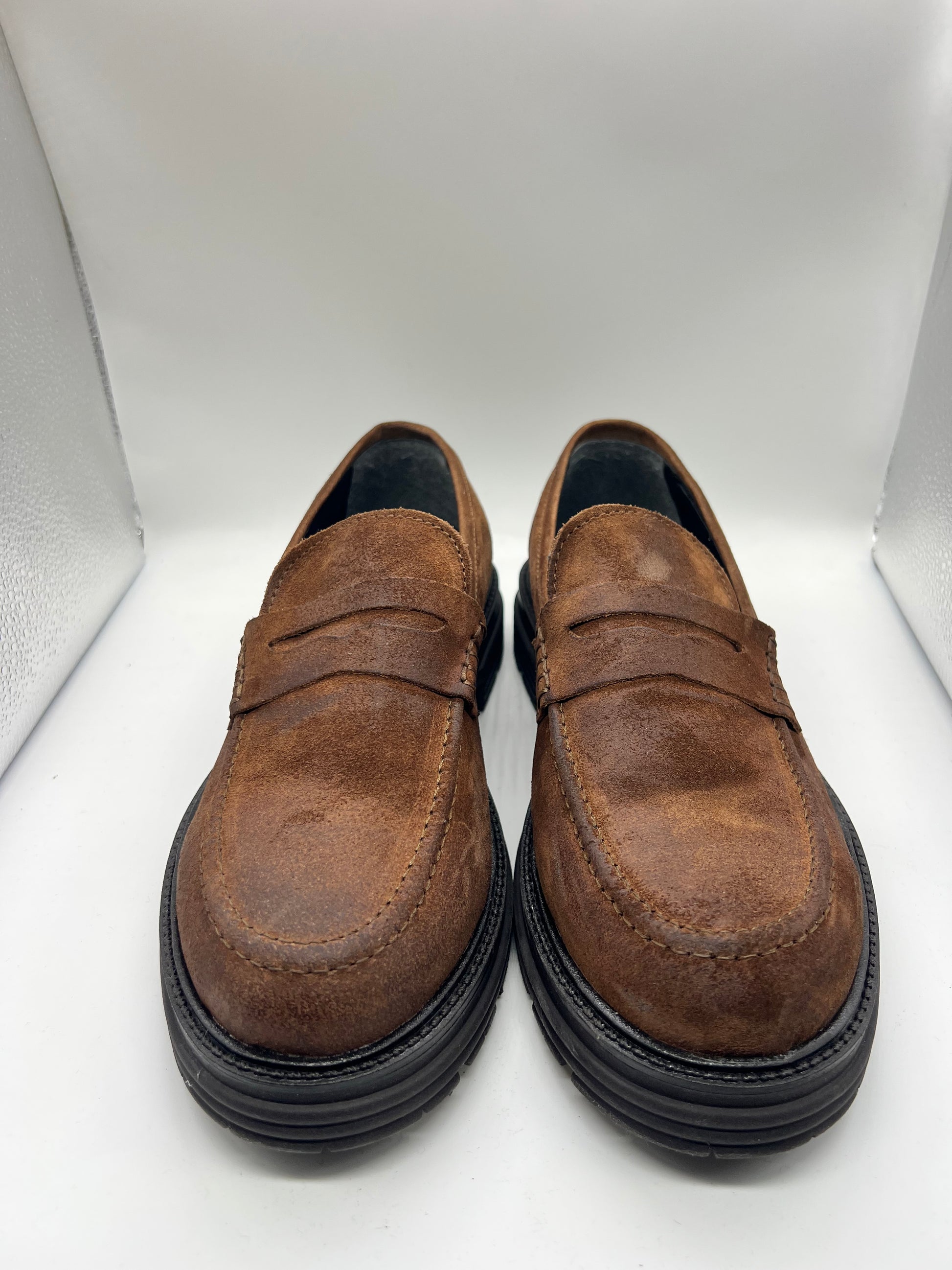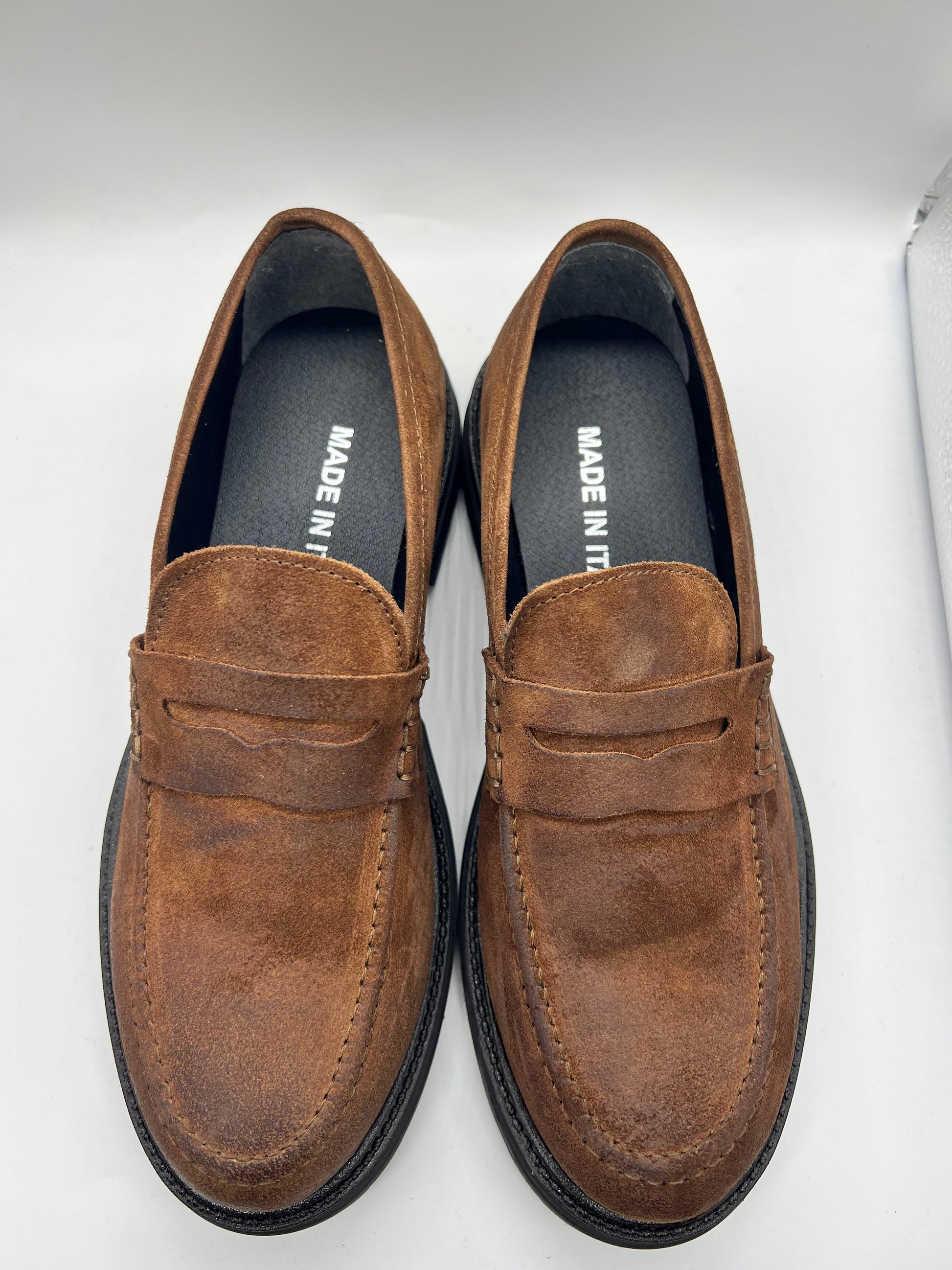 Questo mocassino è realizzato in pregiata pelle invecchiata per un look ricco e autentico e ha una suola in gomma flessibile che offre trazione e resistenza superiori. Progettato con maestria artigianale, offre comfort e stile, adattandosi naturalmente alla forma del piede. Ideale per chi cerca calzature raffinate che bilanciano eleganza e praticità quotidiana.