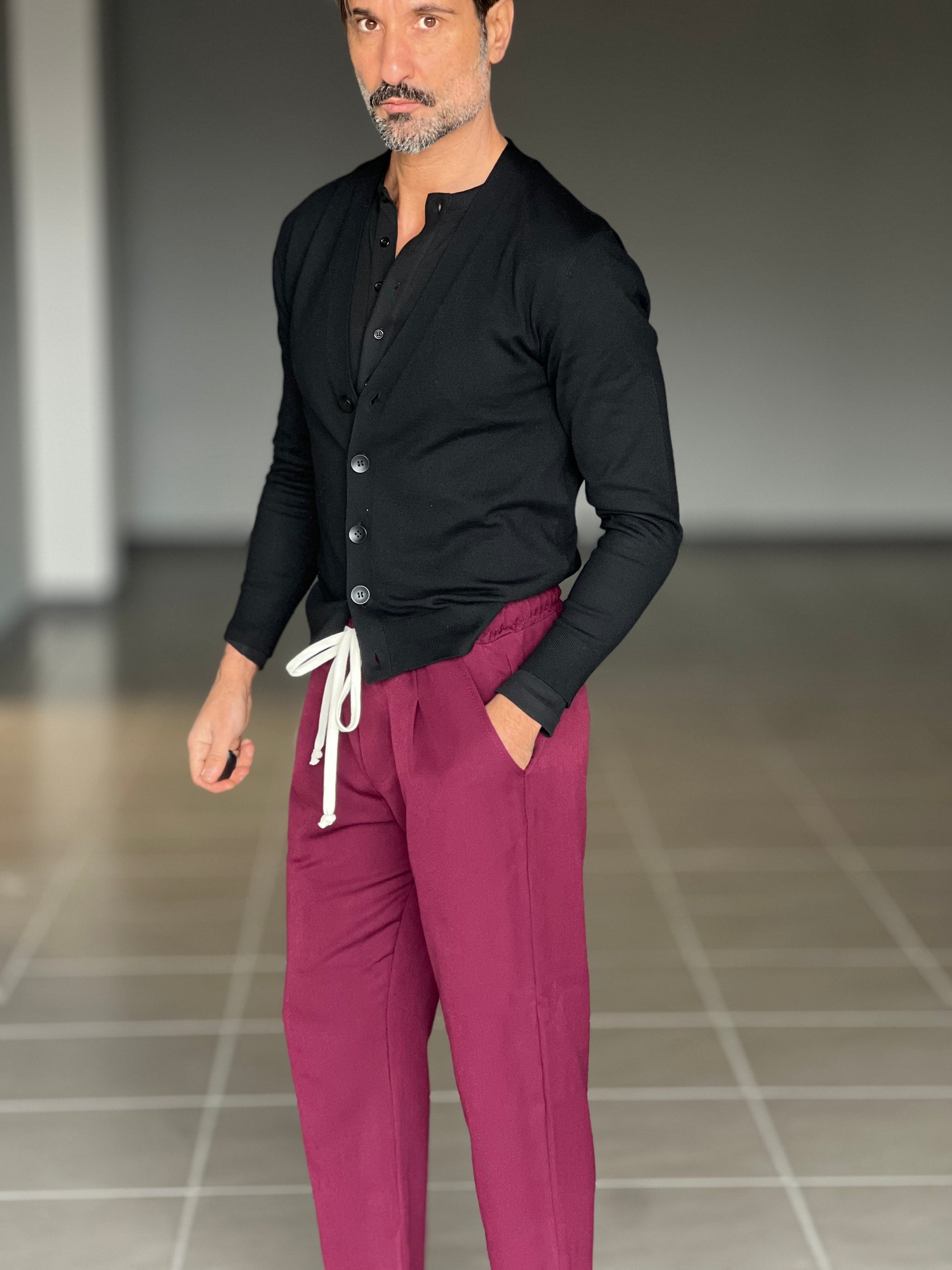PANTALACCIO COLOR PRUGNA LACCIO A CONTRASTO VISCOSA E MISTI