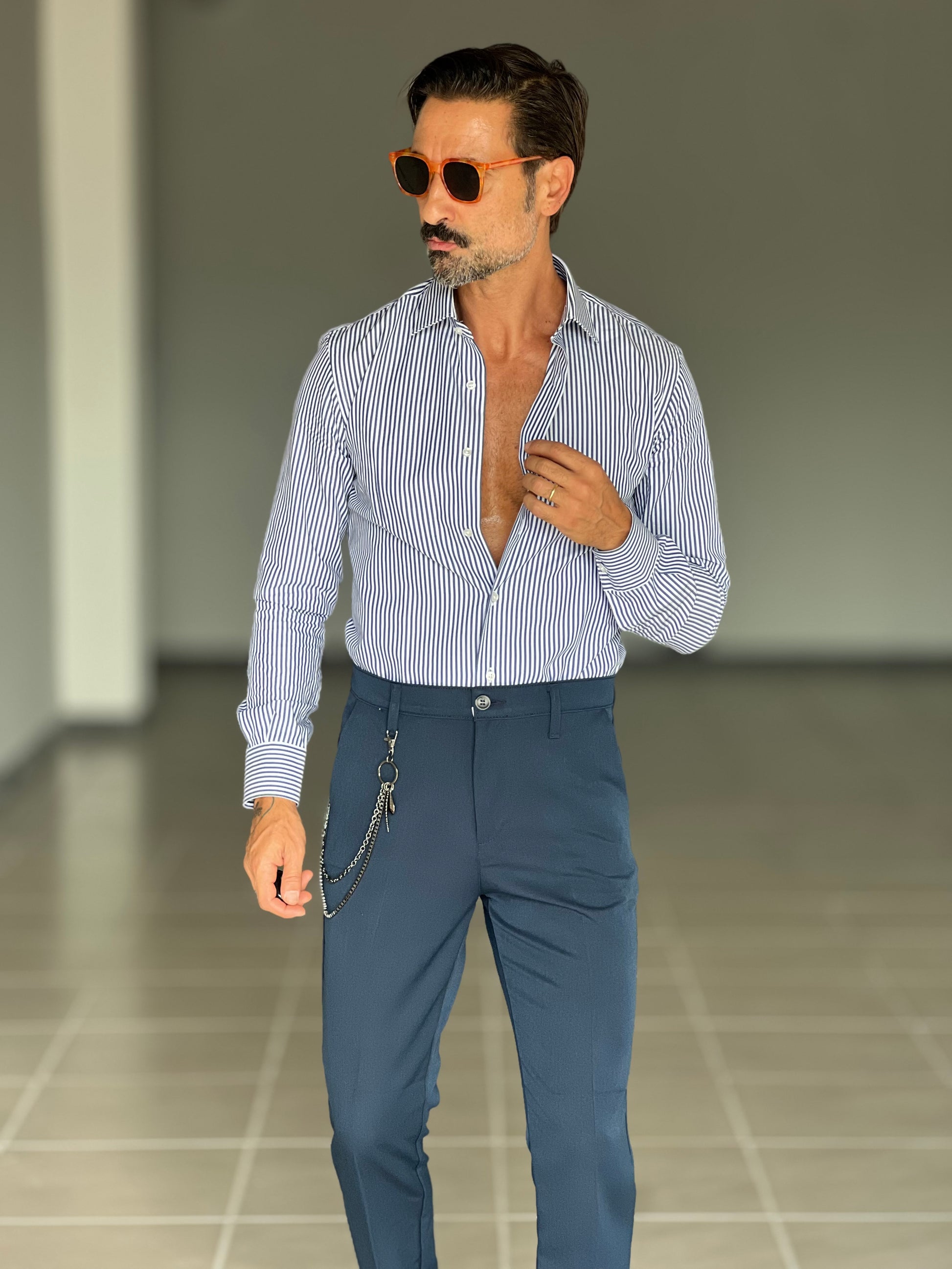 These straight-leg trousers blend viscose with mixed fibers for a refined yet comfortable fit. Featuring classic America-style pockets, they offer both practicality and timeless elegance. Ideal for professional or casual wear, their tailored cut enhances silhouette while ensuring ease of movement. A versatile piece that combines quality materials with expert craftsmanship.