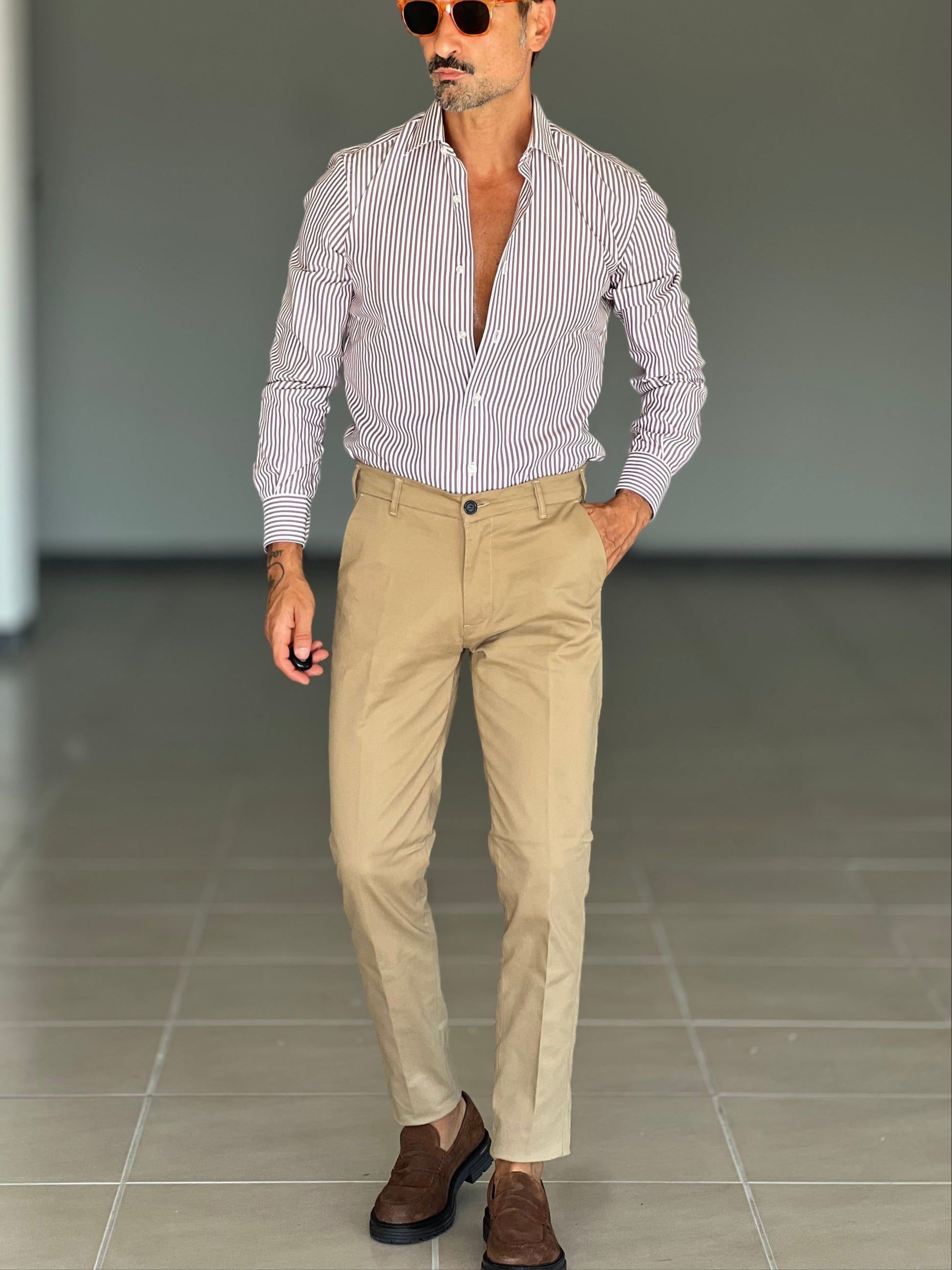 PANTALONE CAMMELLO GABARDINE DI COTONE