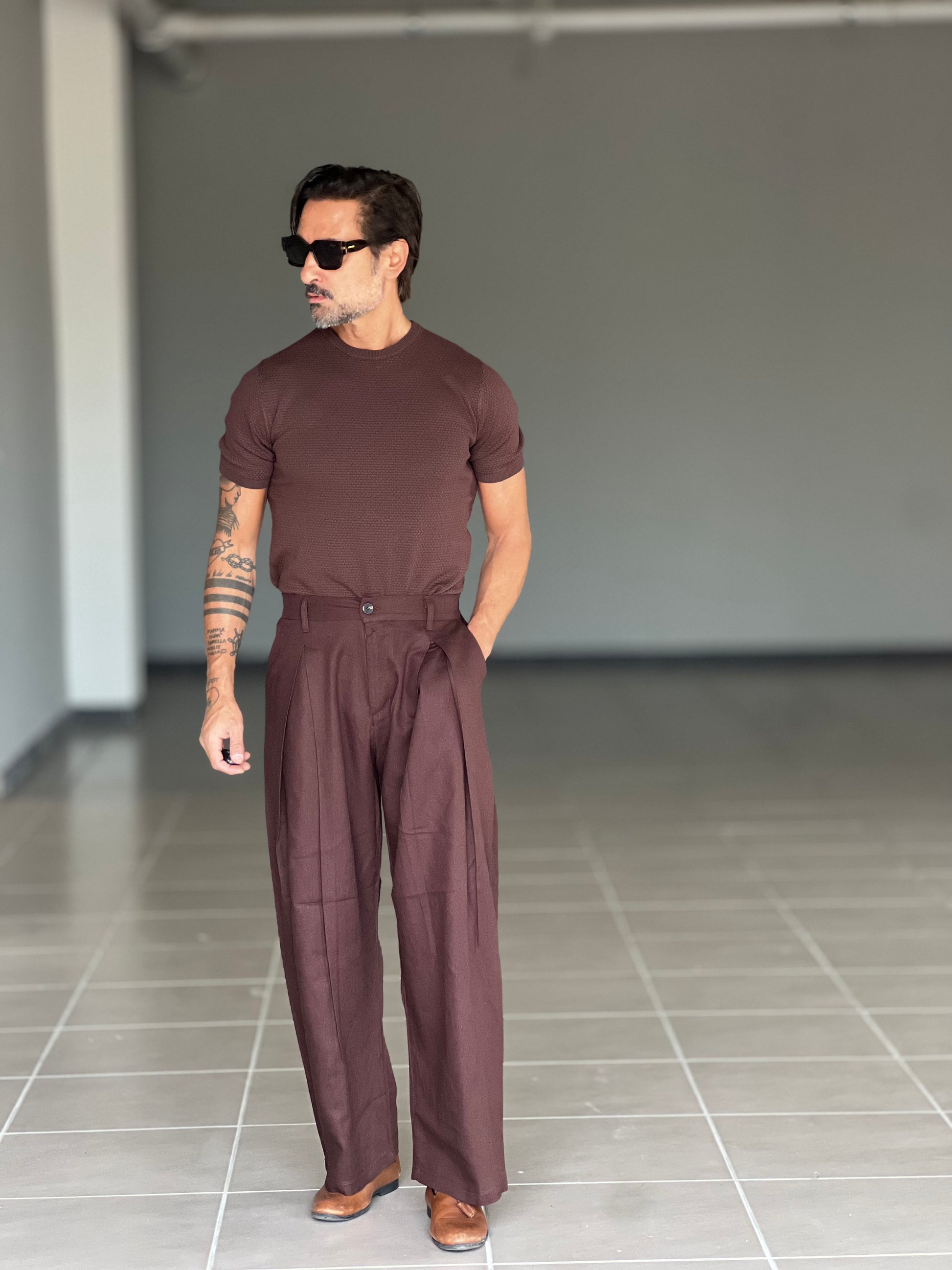 PANTALONE MORO LINO E COTONE DOPPIA PINCES BALOON 00125