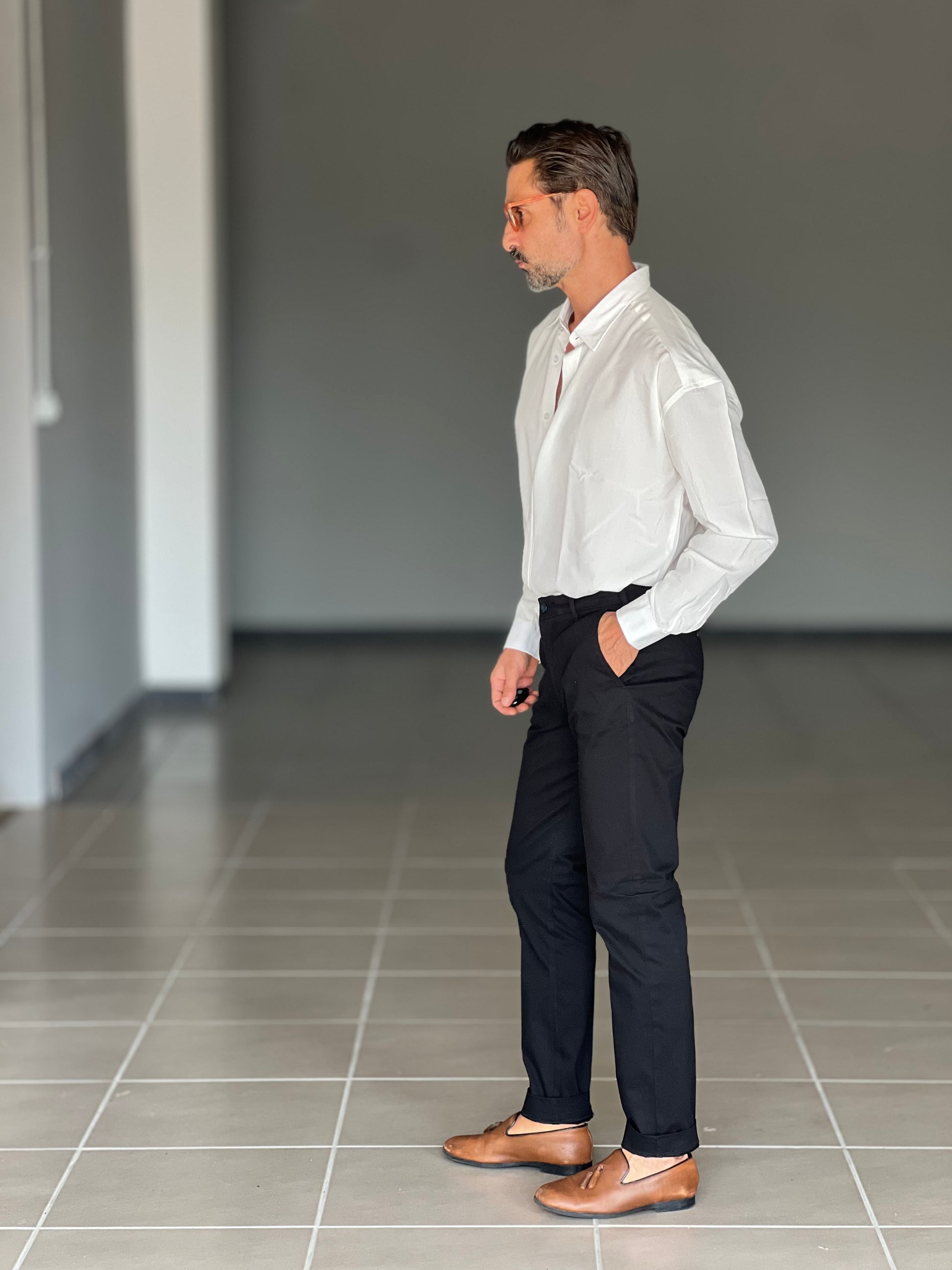 PANTALONE NERO GABARDINE DI COTONE