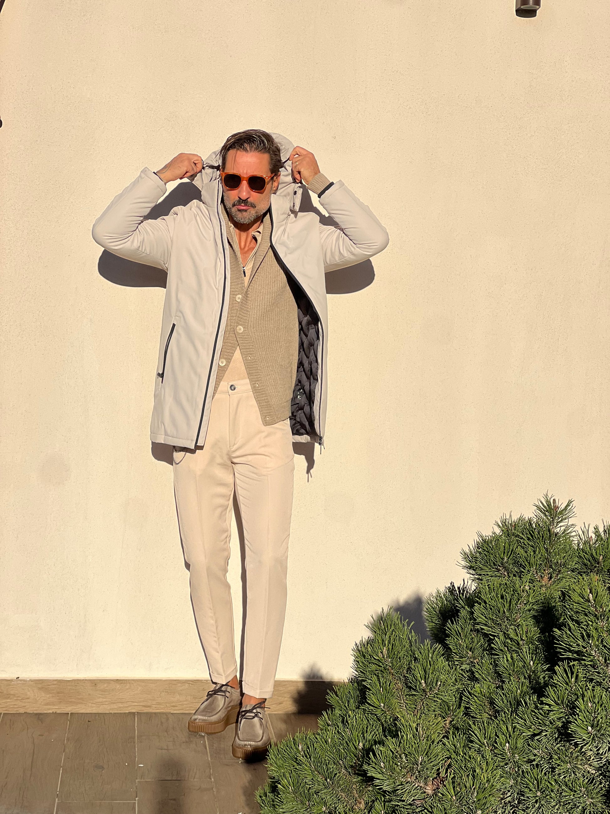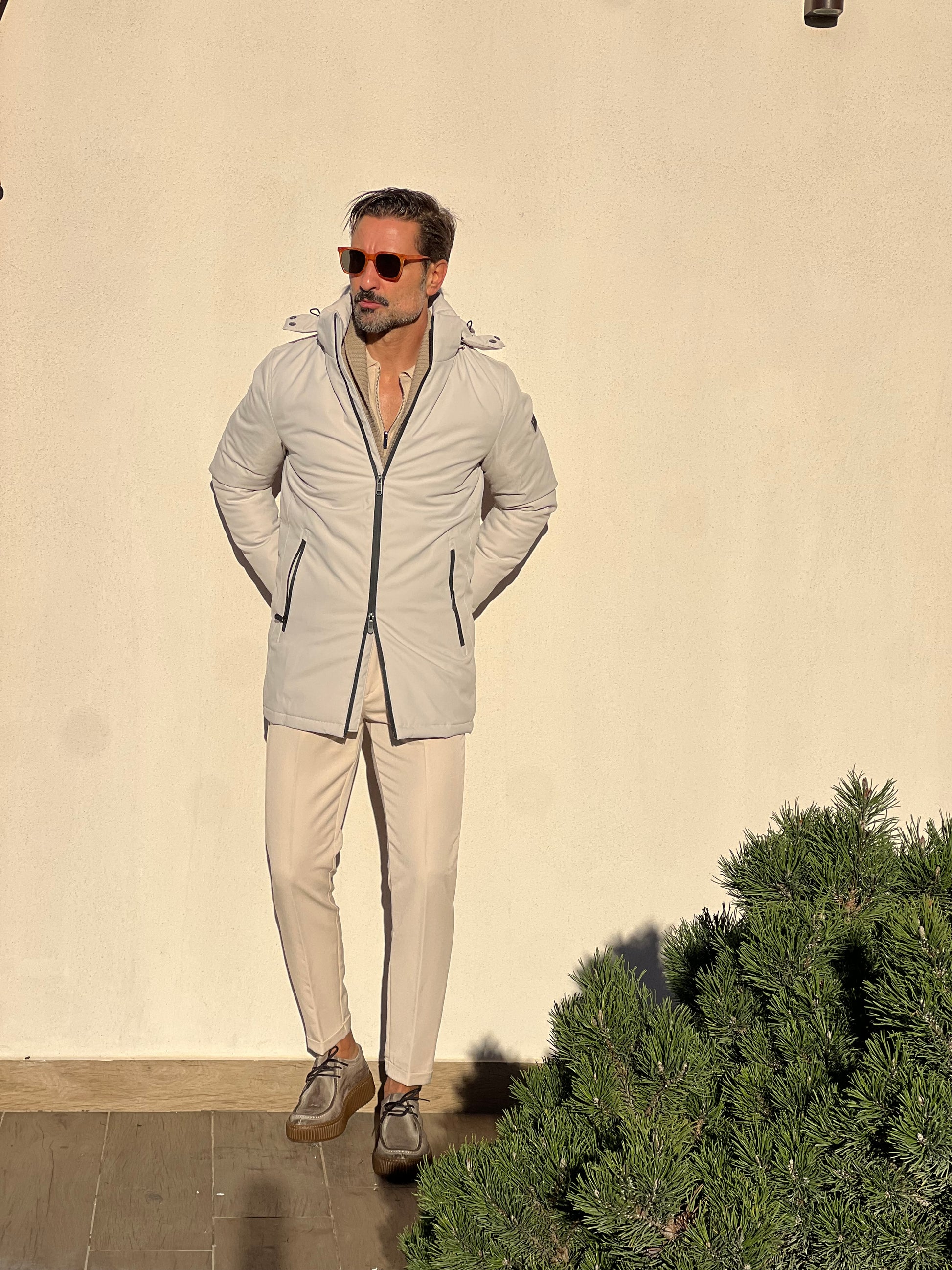 PARKA HAPPER ECRU' TESSUTO TECNICO ZIP TERMOSALDATE