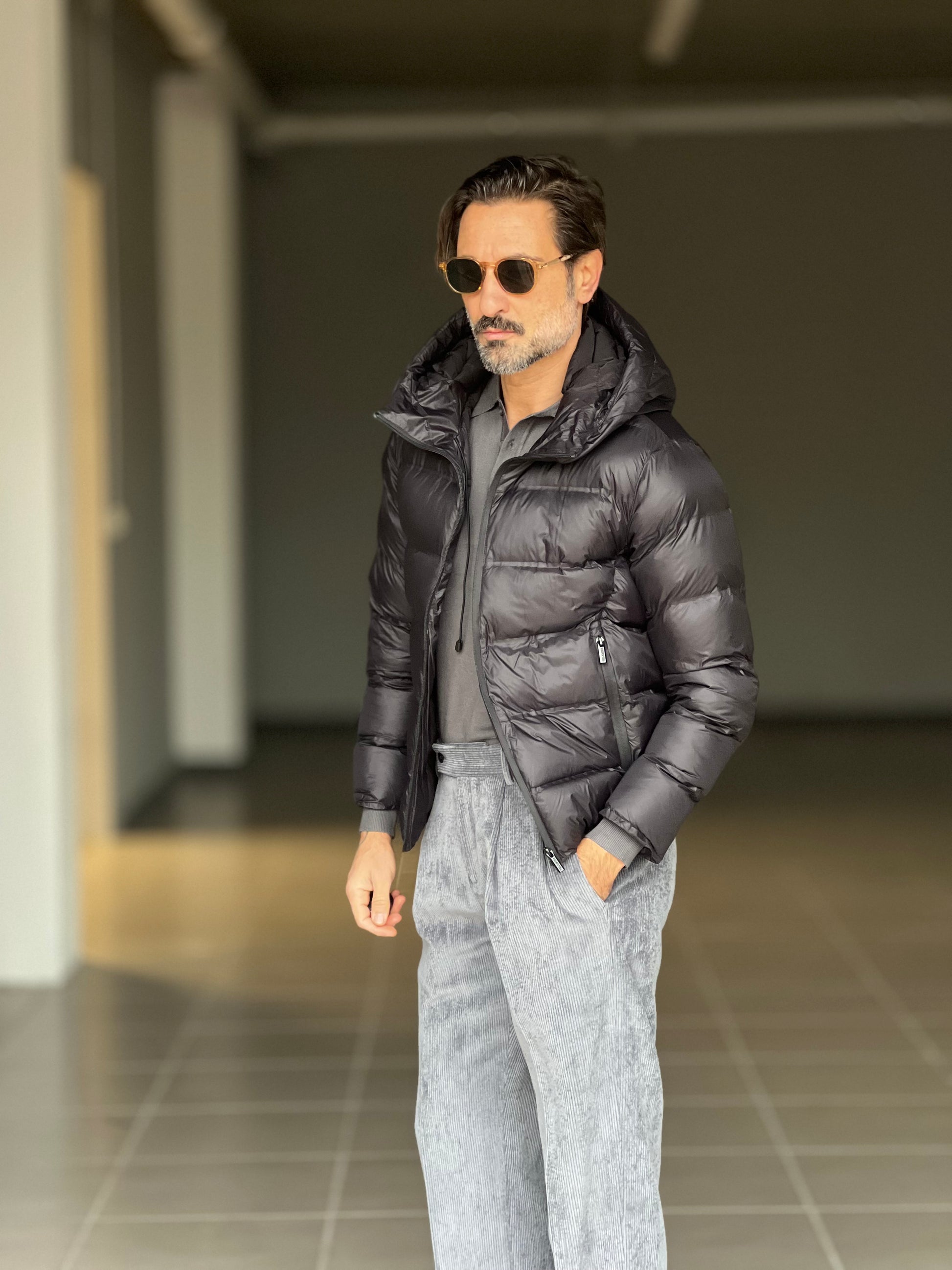# PIUMINO TECNiCO COLLO SCIARPA Piumino in tessuto tecnico con collo sciarpa che combina funzionalità e stile contemporaneo. La struttura leggera offre isolamento termico senza ingombro, ideale per le transizioni stagionali. Il collo sciarpa regolabile garantisce protezione dal freddo e versatilità nel styling. Realizzato con materiali performanti, resiste all'umidità mantenendo la traspirabilità. Perfetto per chi ricerca un capo che unisce praticità e eleganza minimalista.
