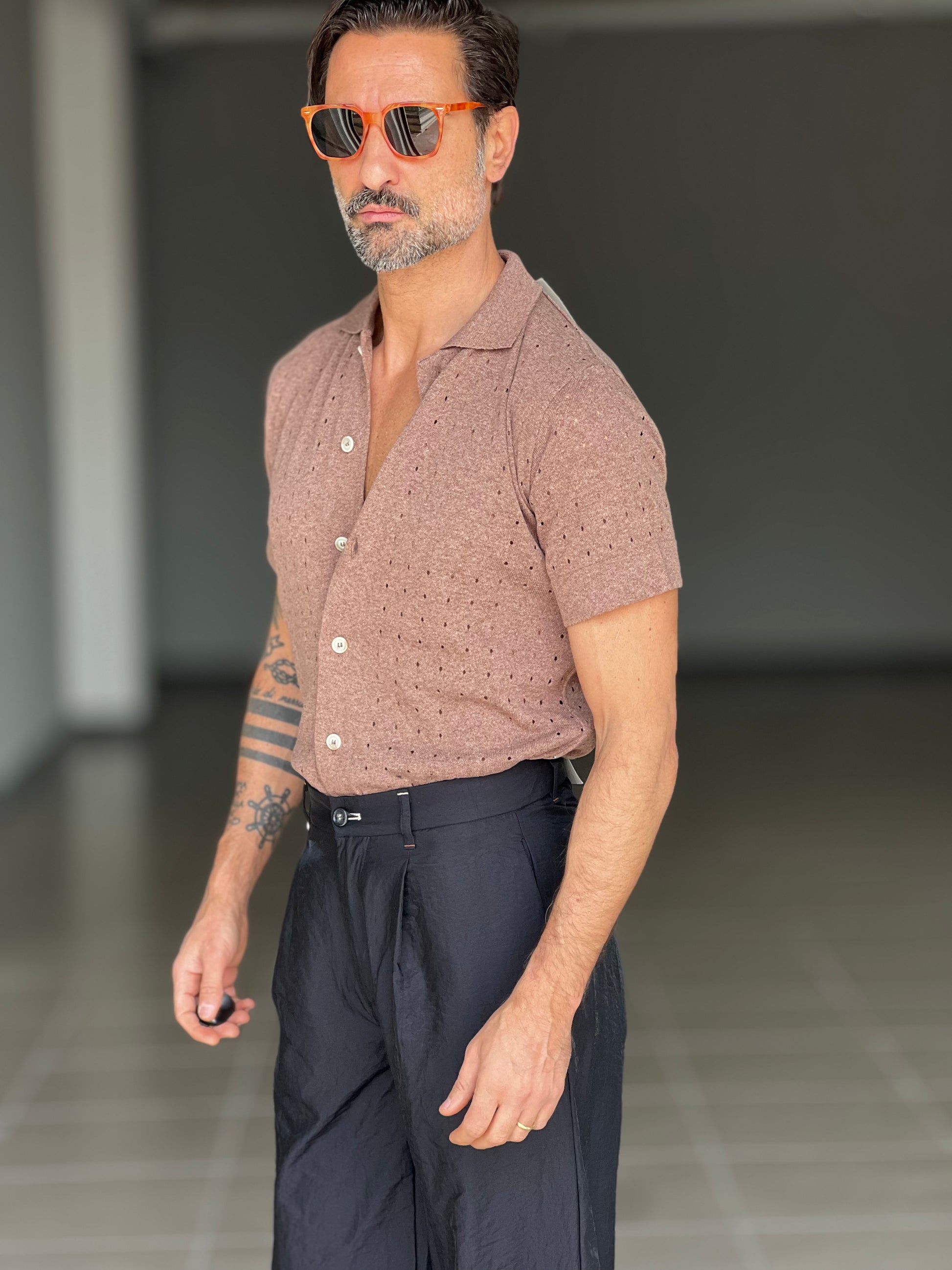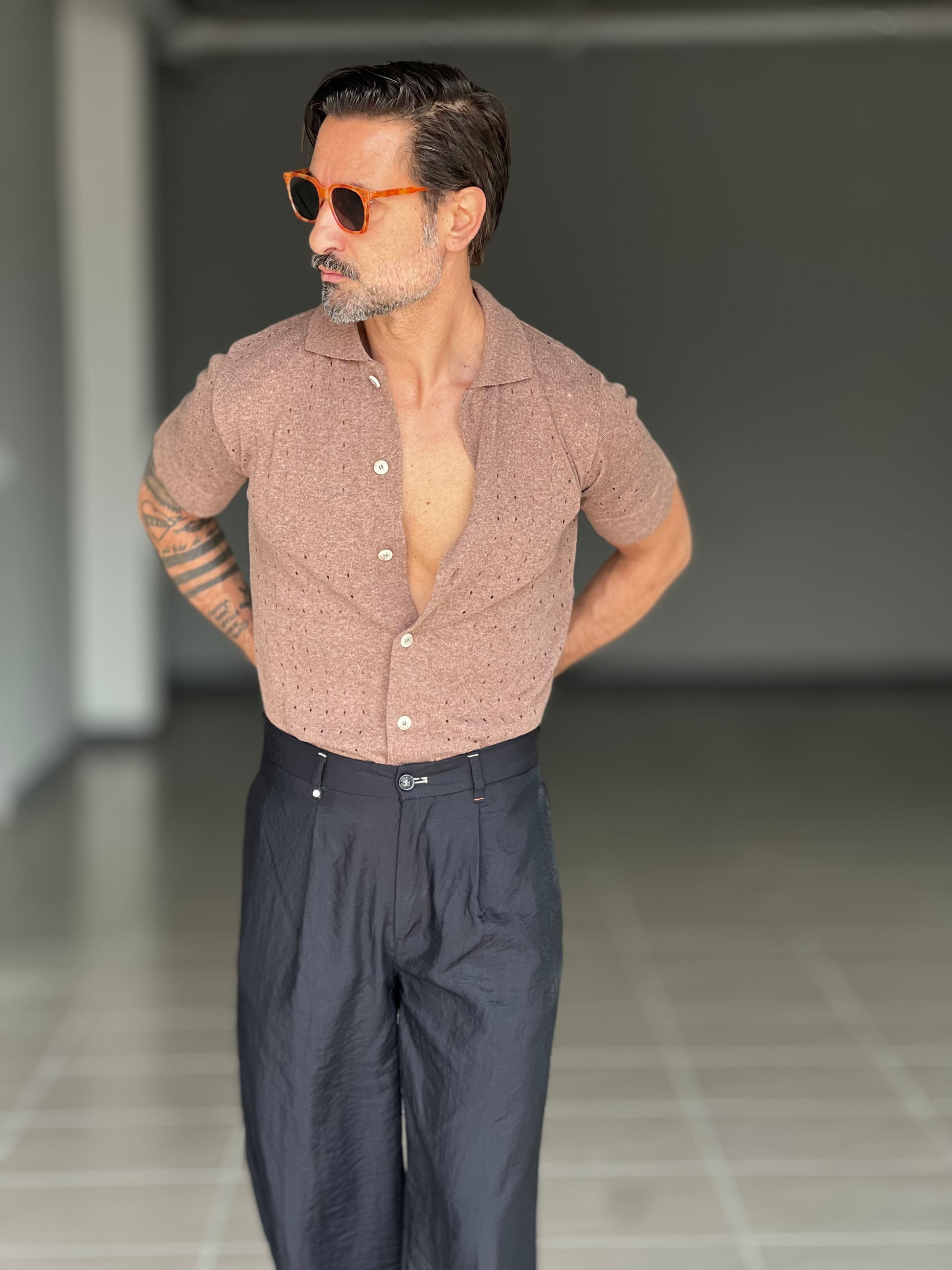 POLO CAMICIA TABACCO TRAMATURA FORATA BL11
