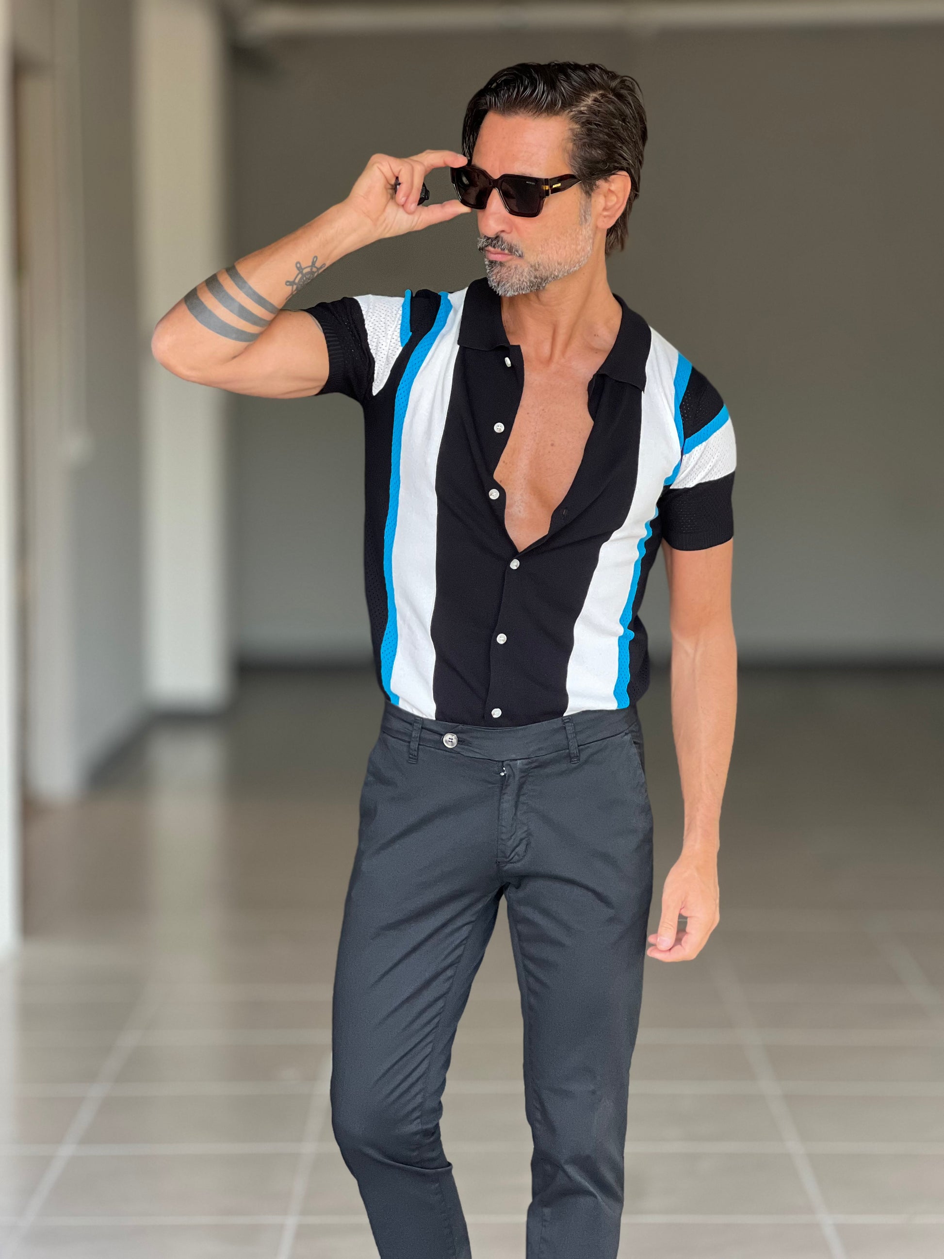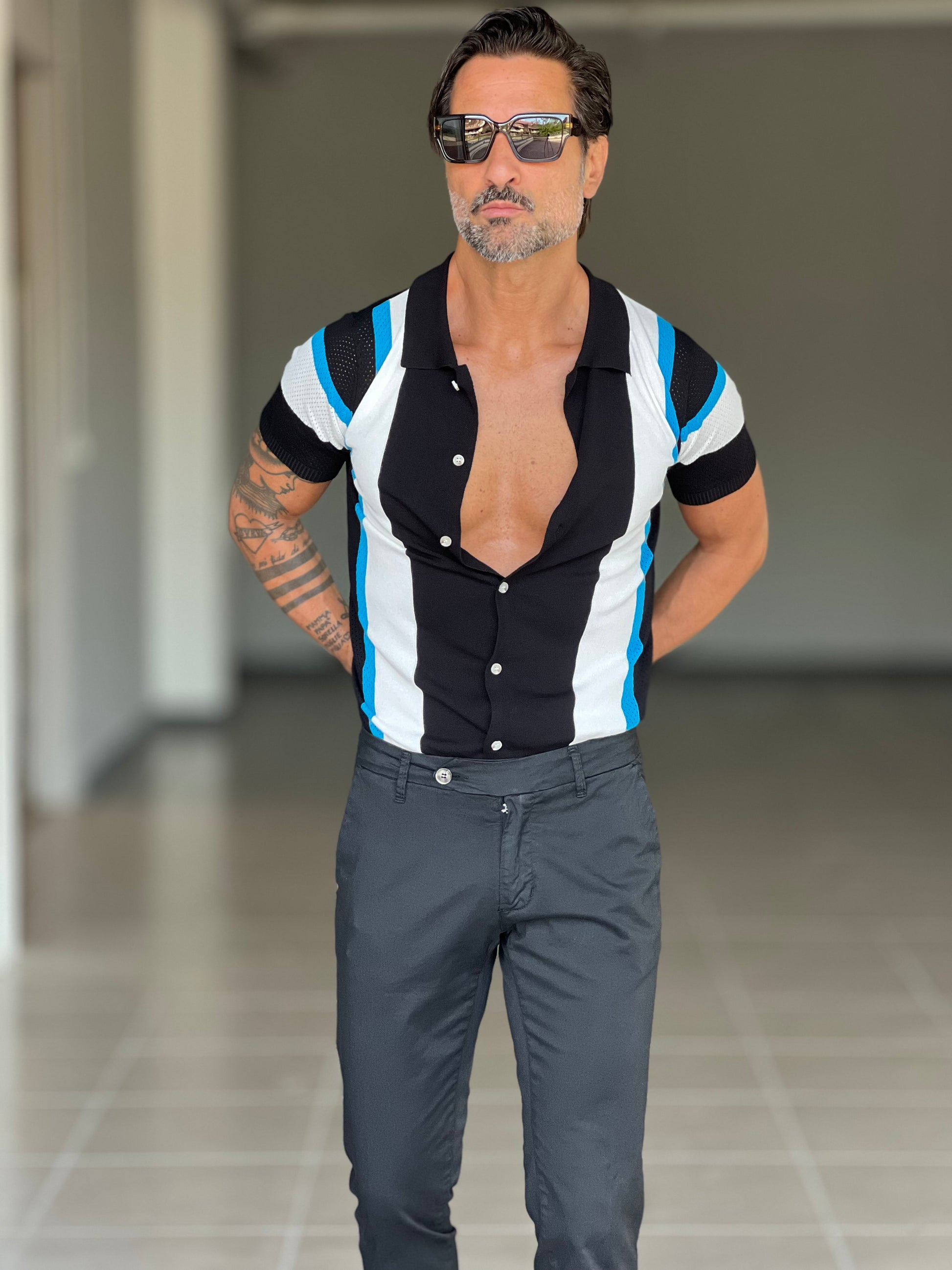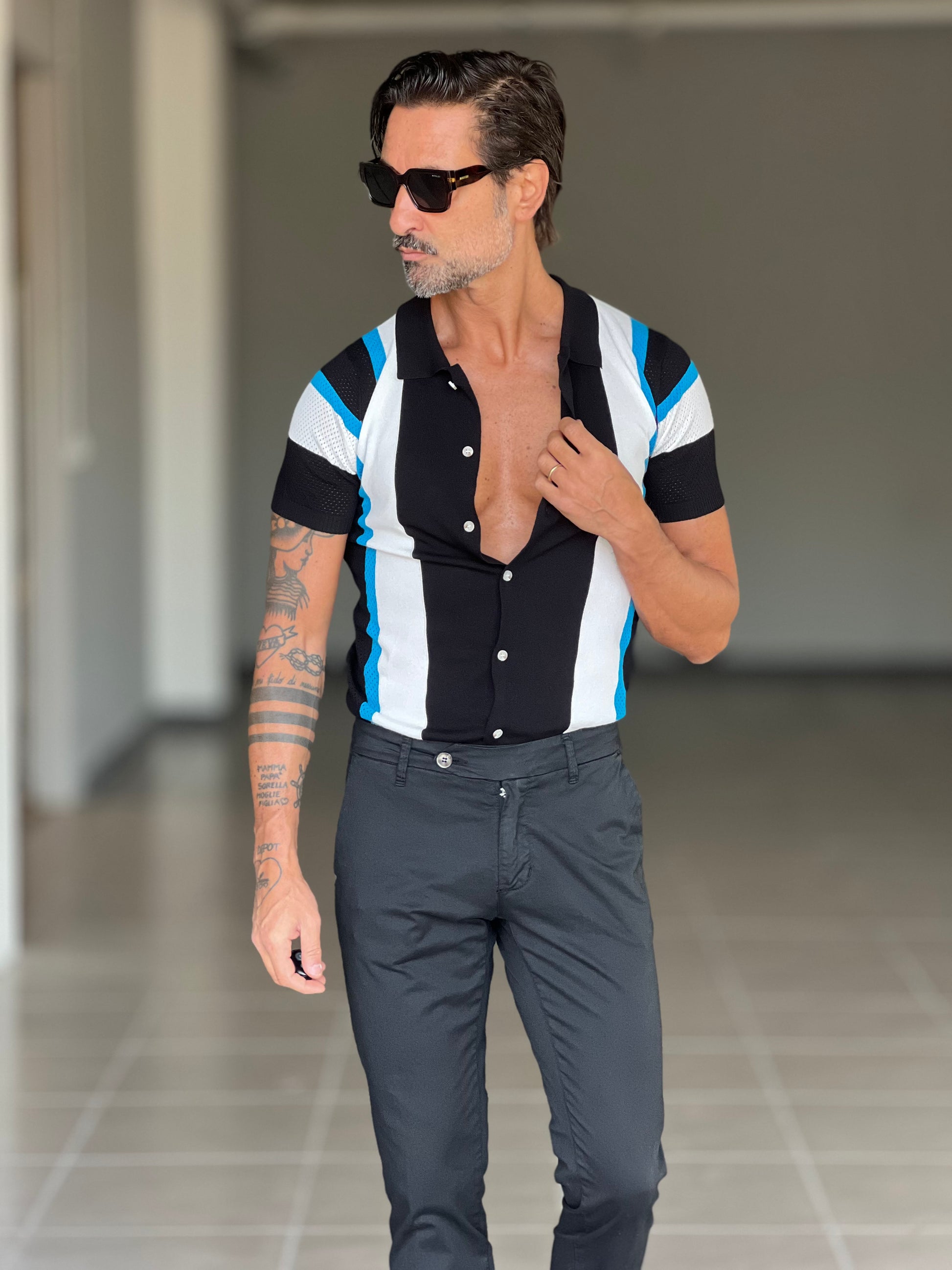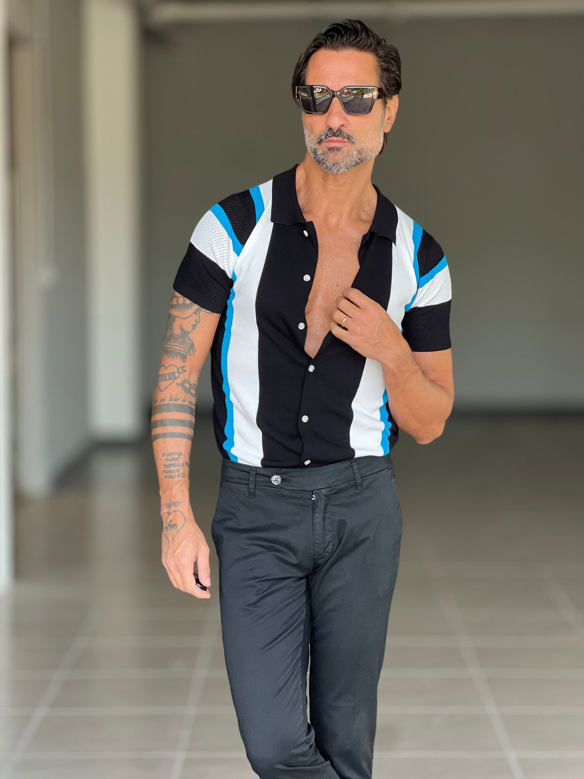 POLO CARDIGAN MULTIRIGA NERA COLLO AMERICANO 00125