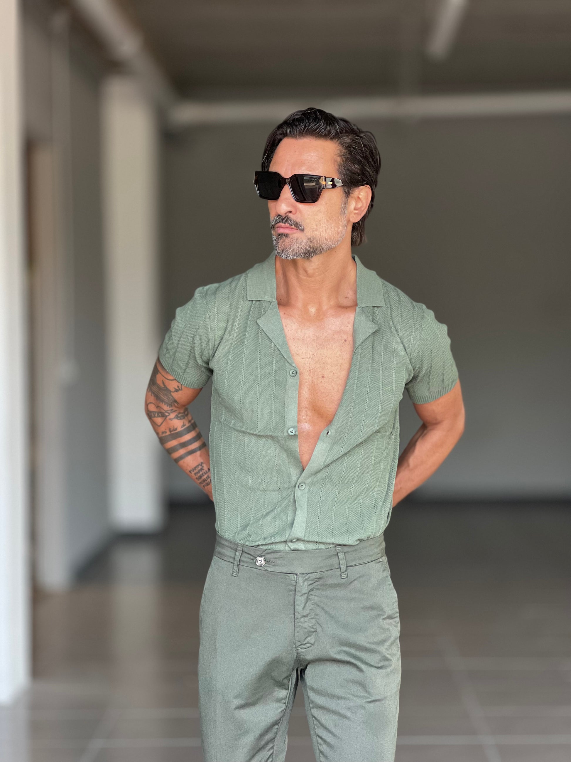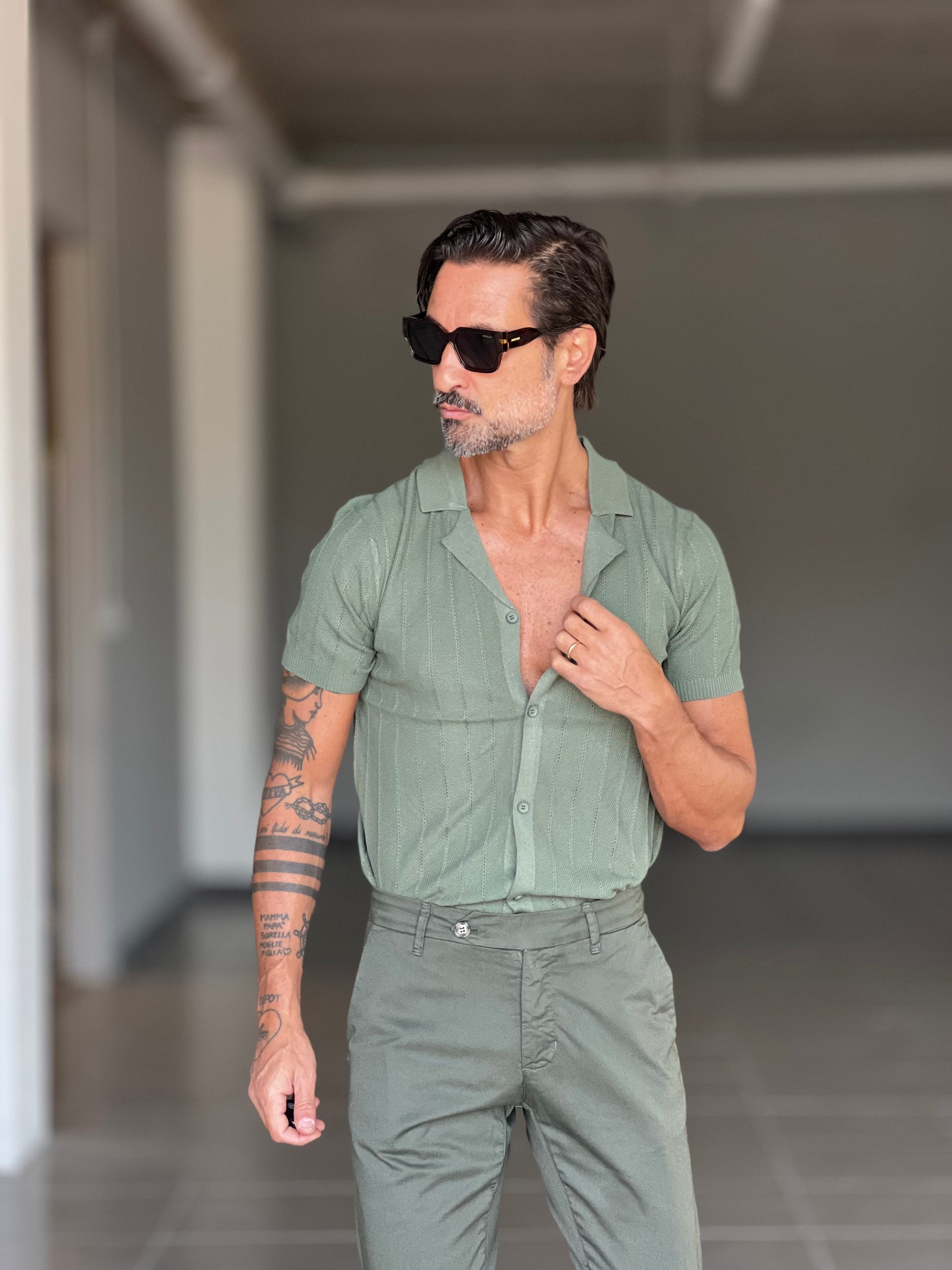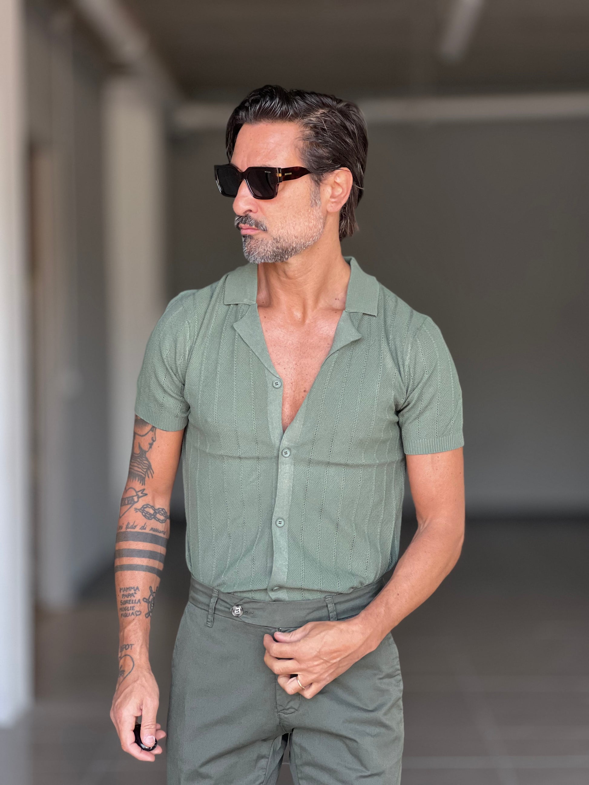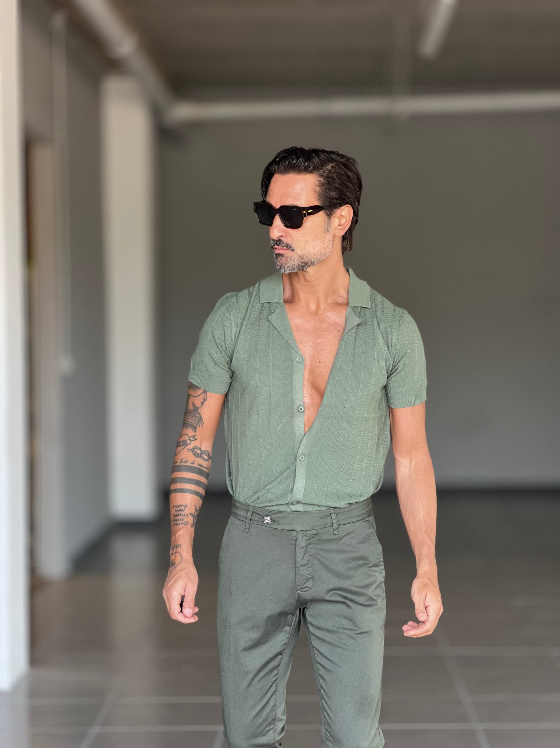 POLO CARDIGAN VERDE COLLO AMERICANO 00125
