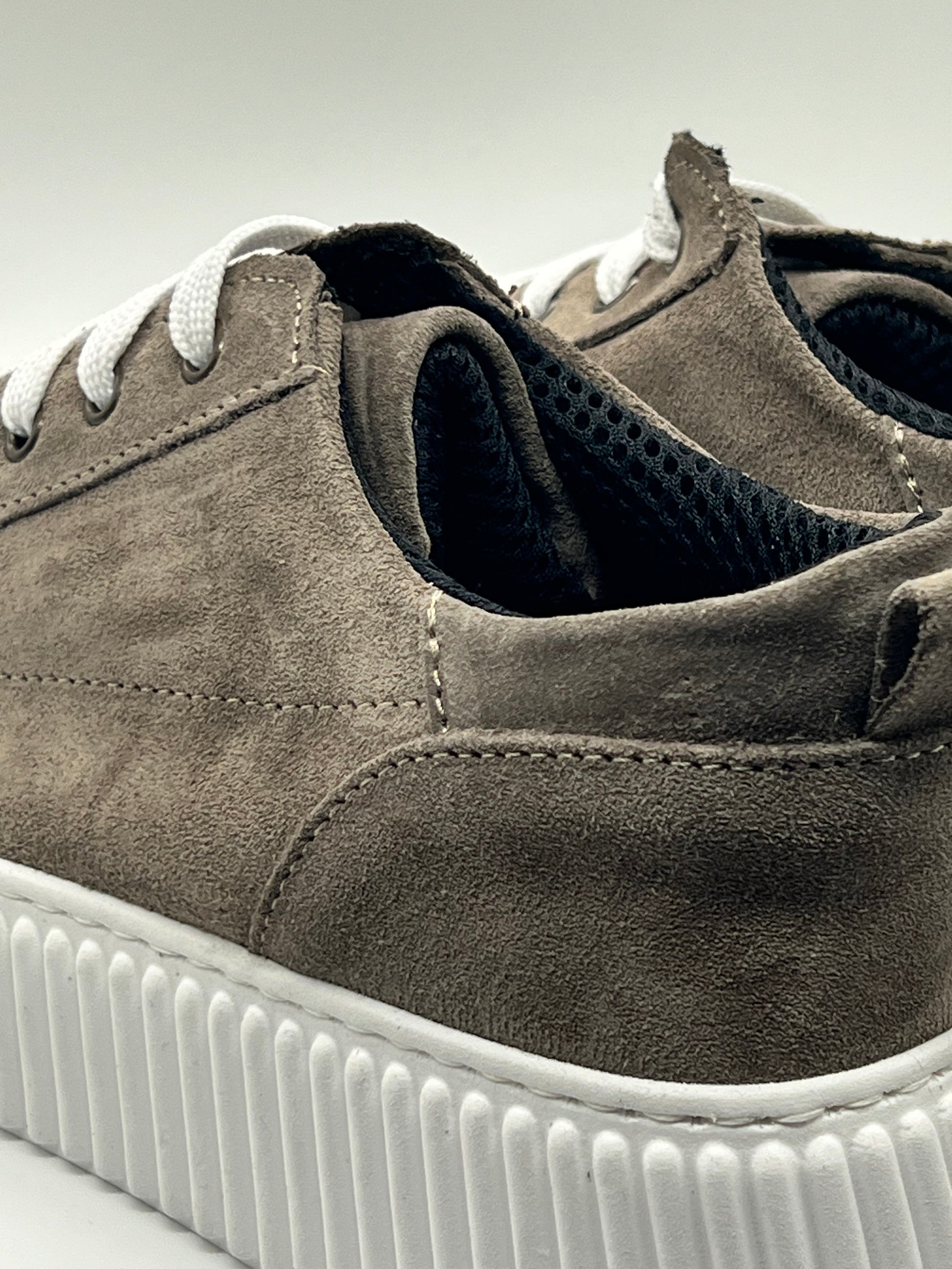 SNEAKER FANGO PUNTA PELLE BOTTOLATA FONDO BIANCO