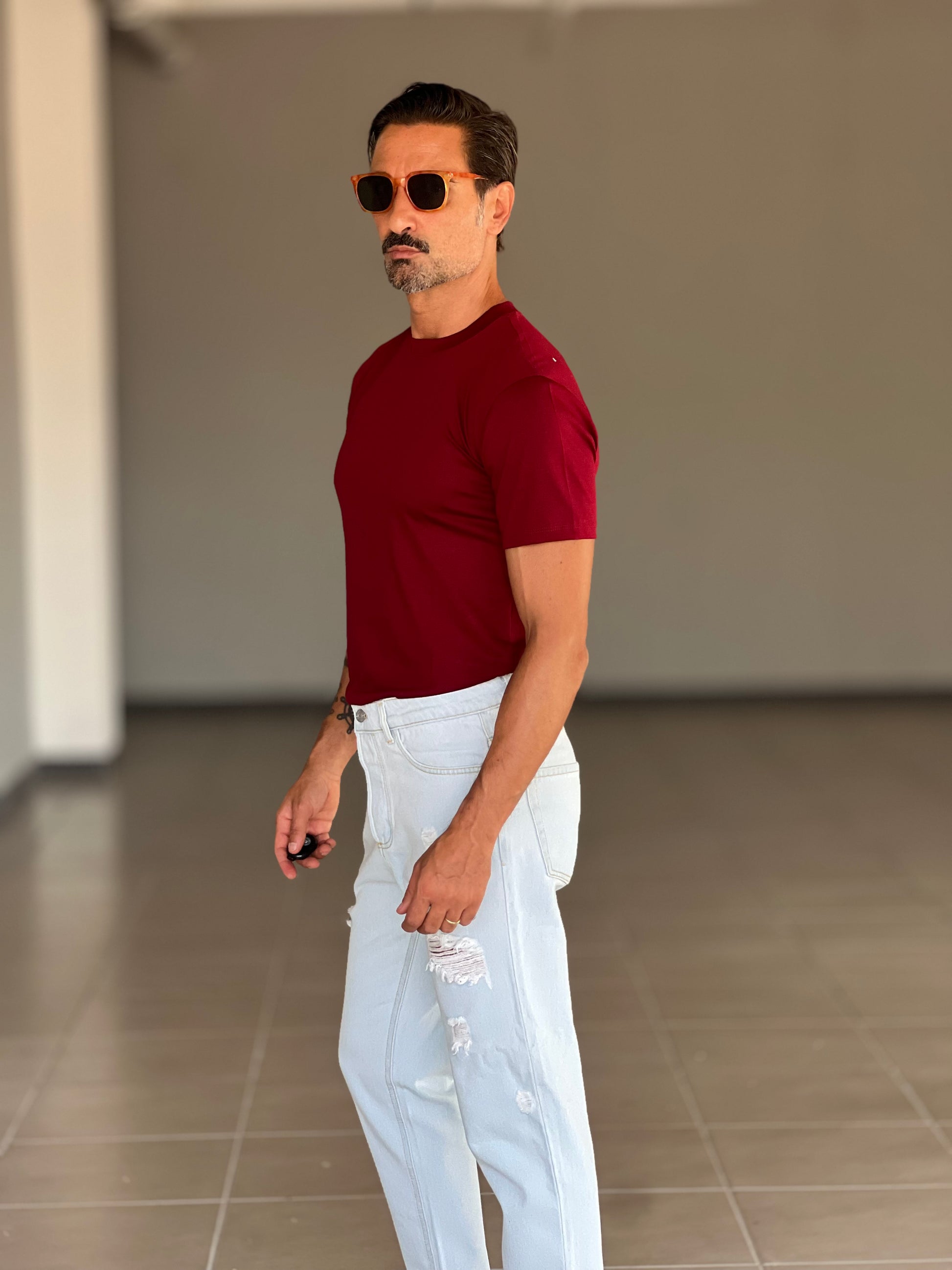 T SHIRT PRUGNA COTONE FILO DI SCOZIA