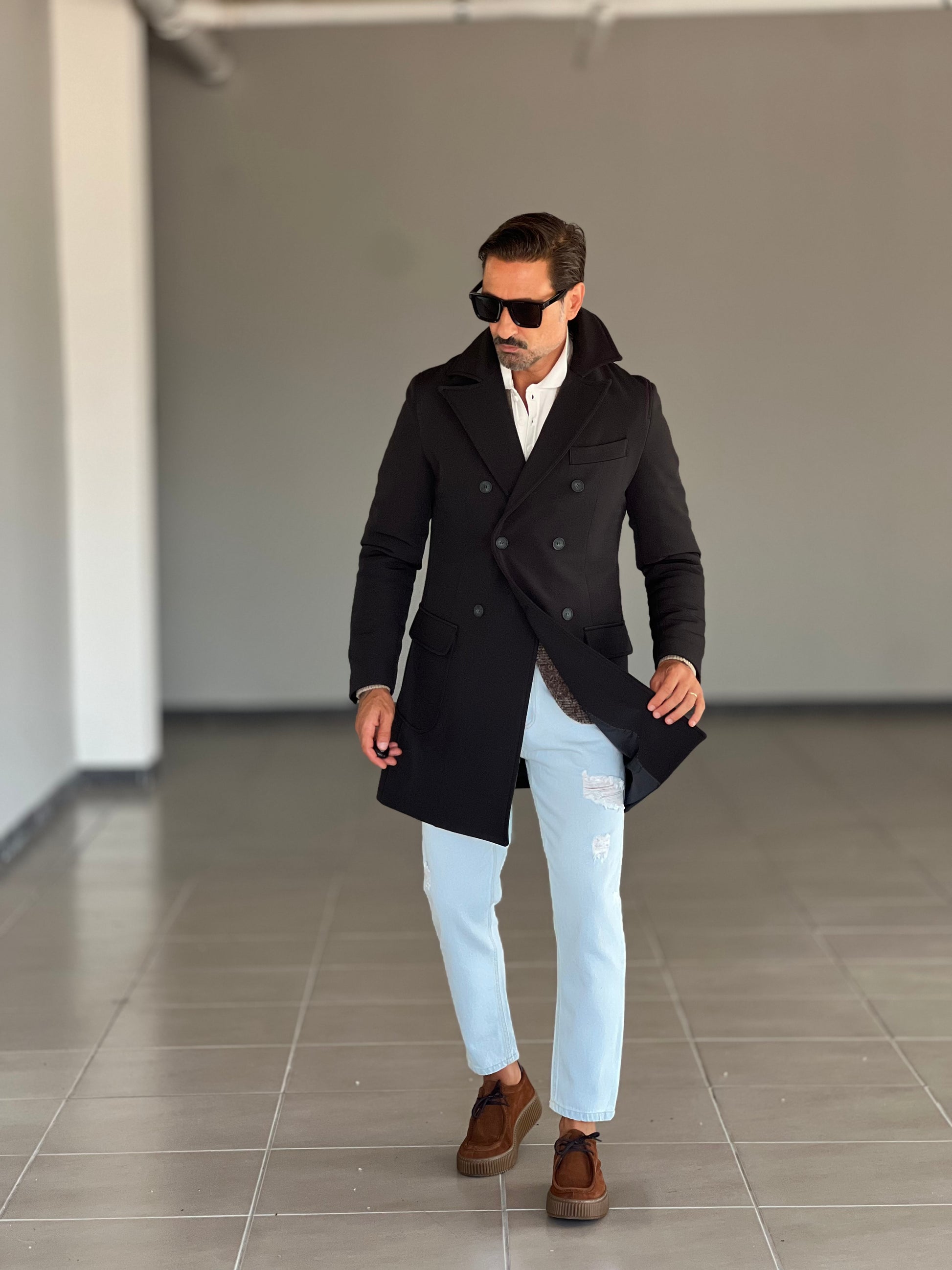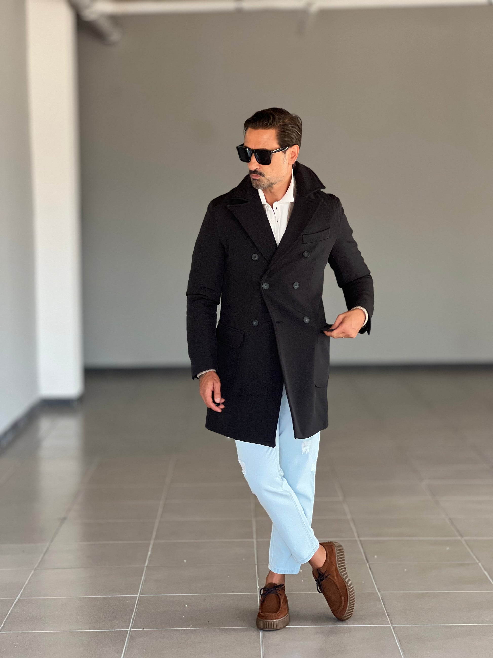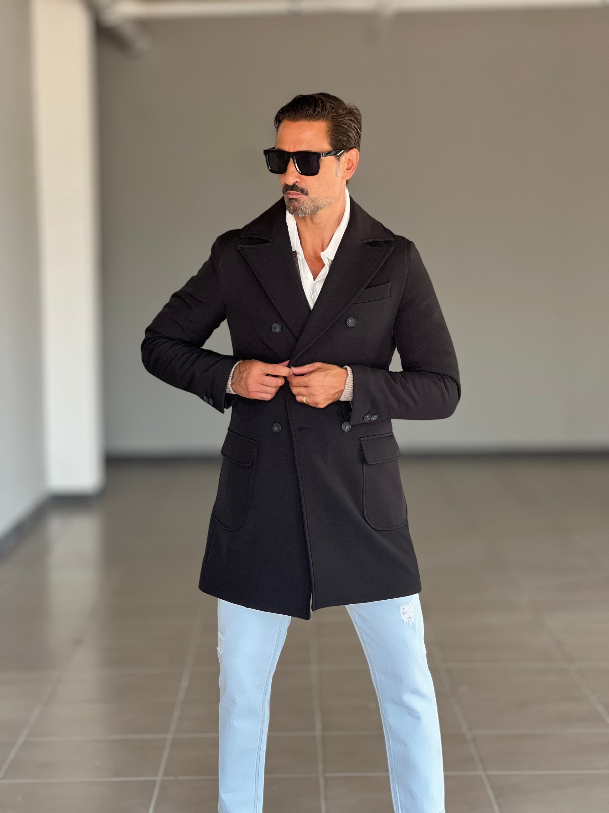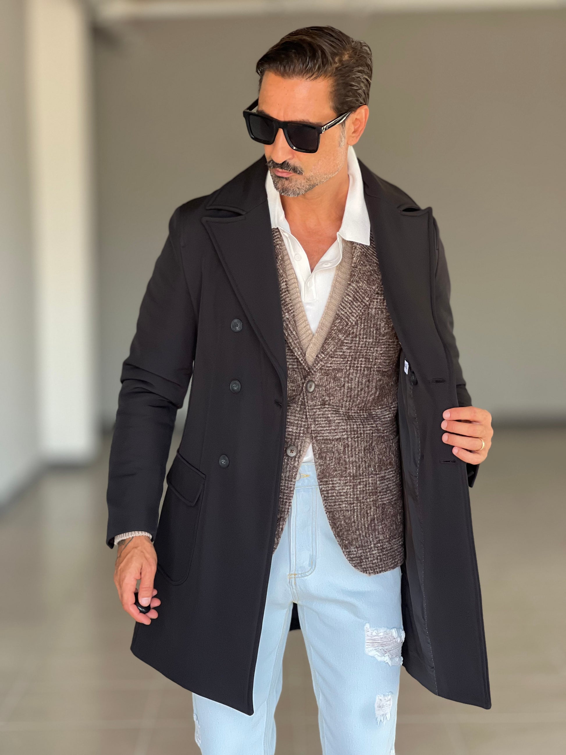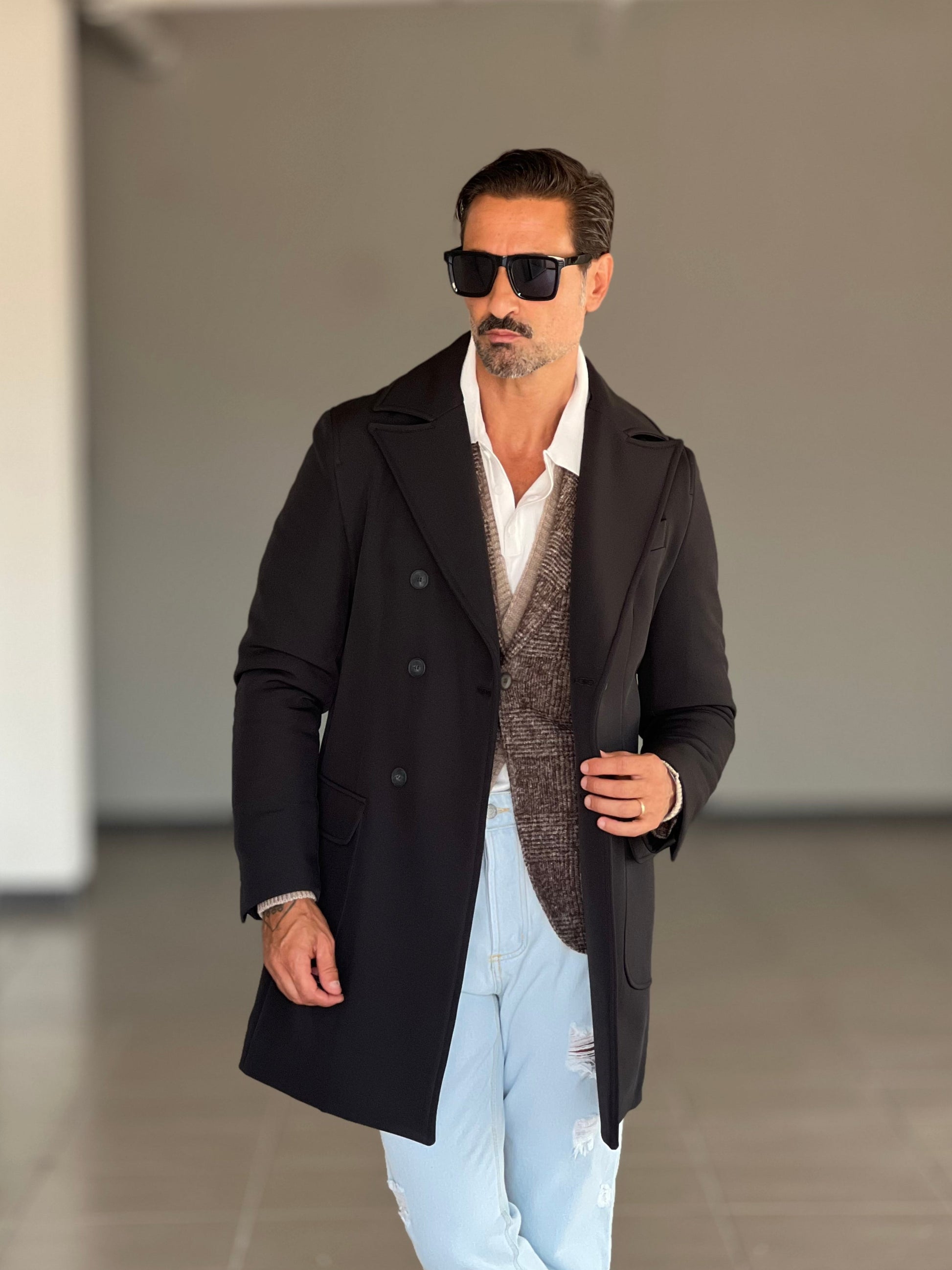 TRENCH NERO IMBOTTITO TECNICO DOPPIOPETTO